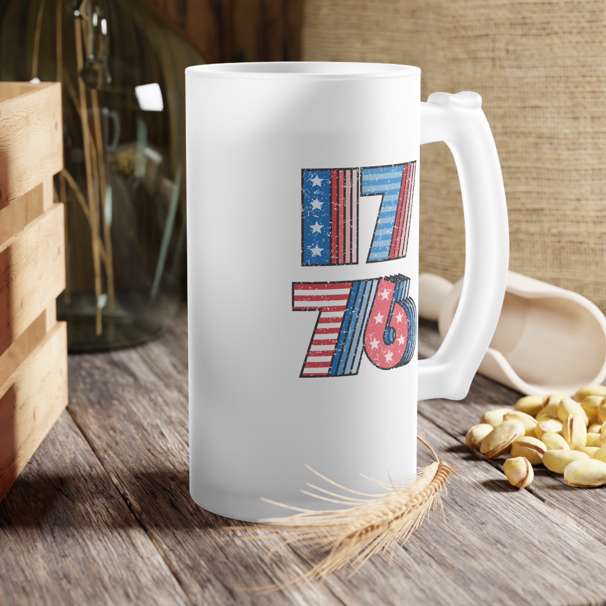 1776 United States / USA/ 4th of July Frosted Glass Beer Mug