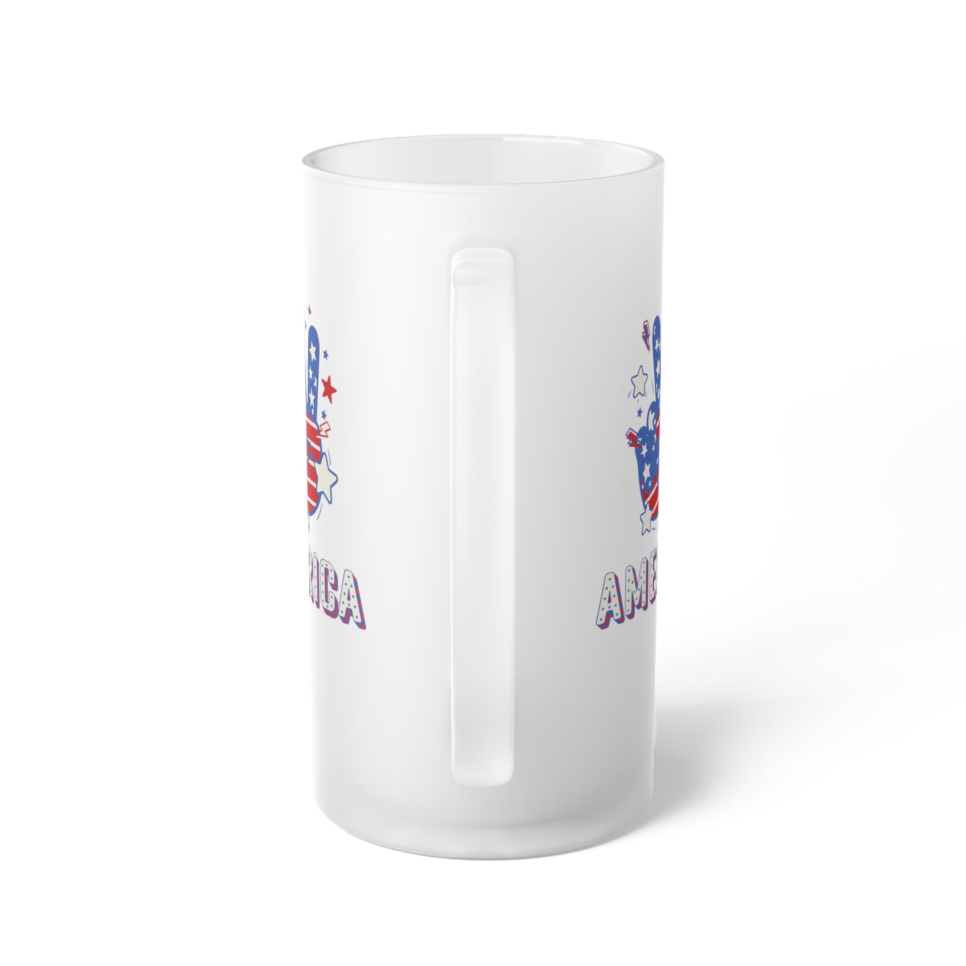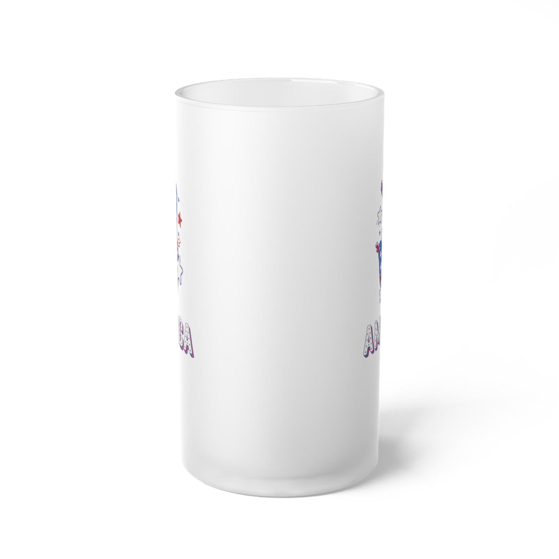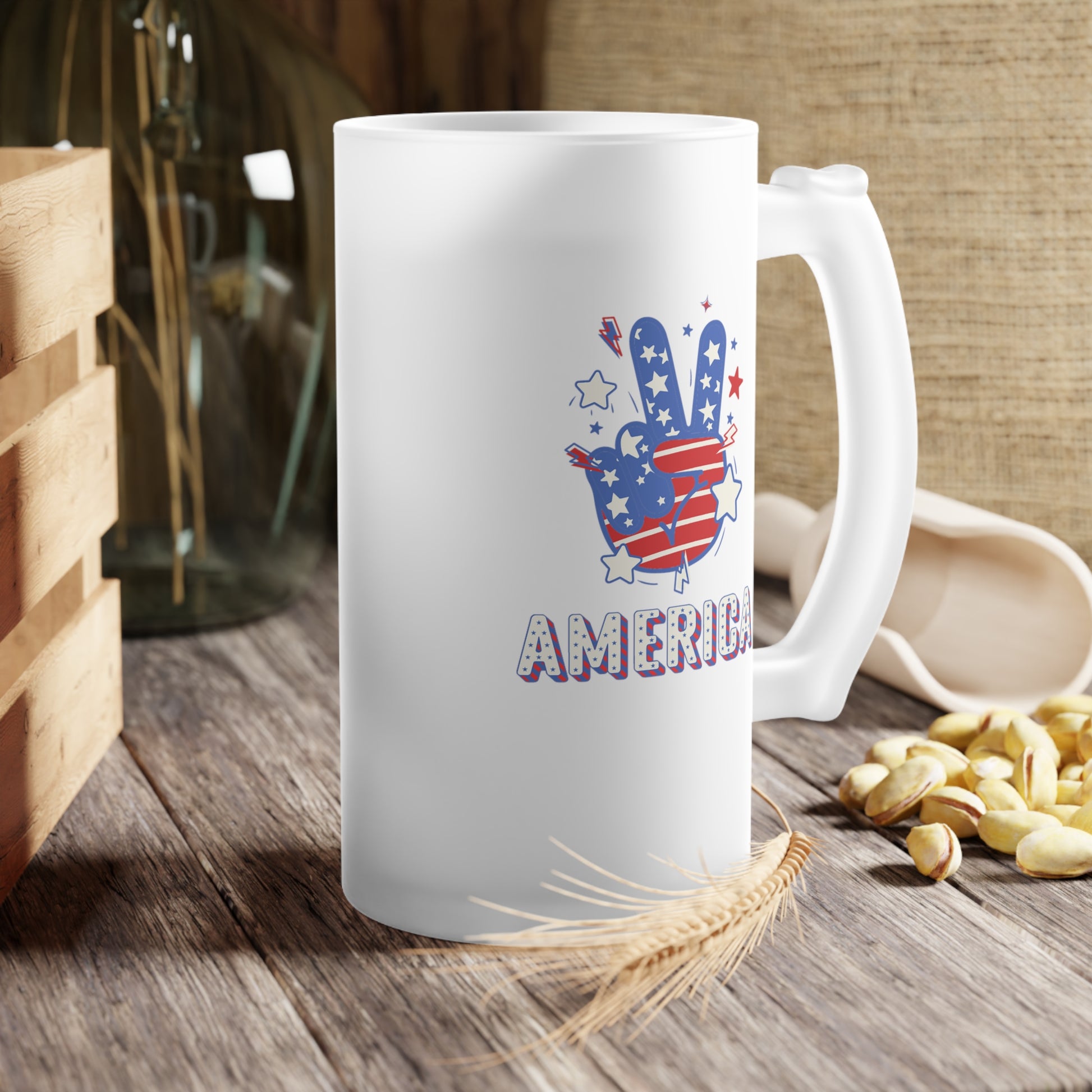 America with a Peach Hand United States / USA/ 4th of July Frosted Glass Beer Mug