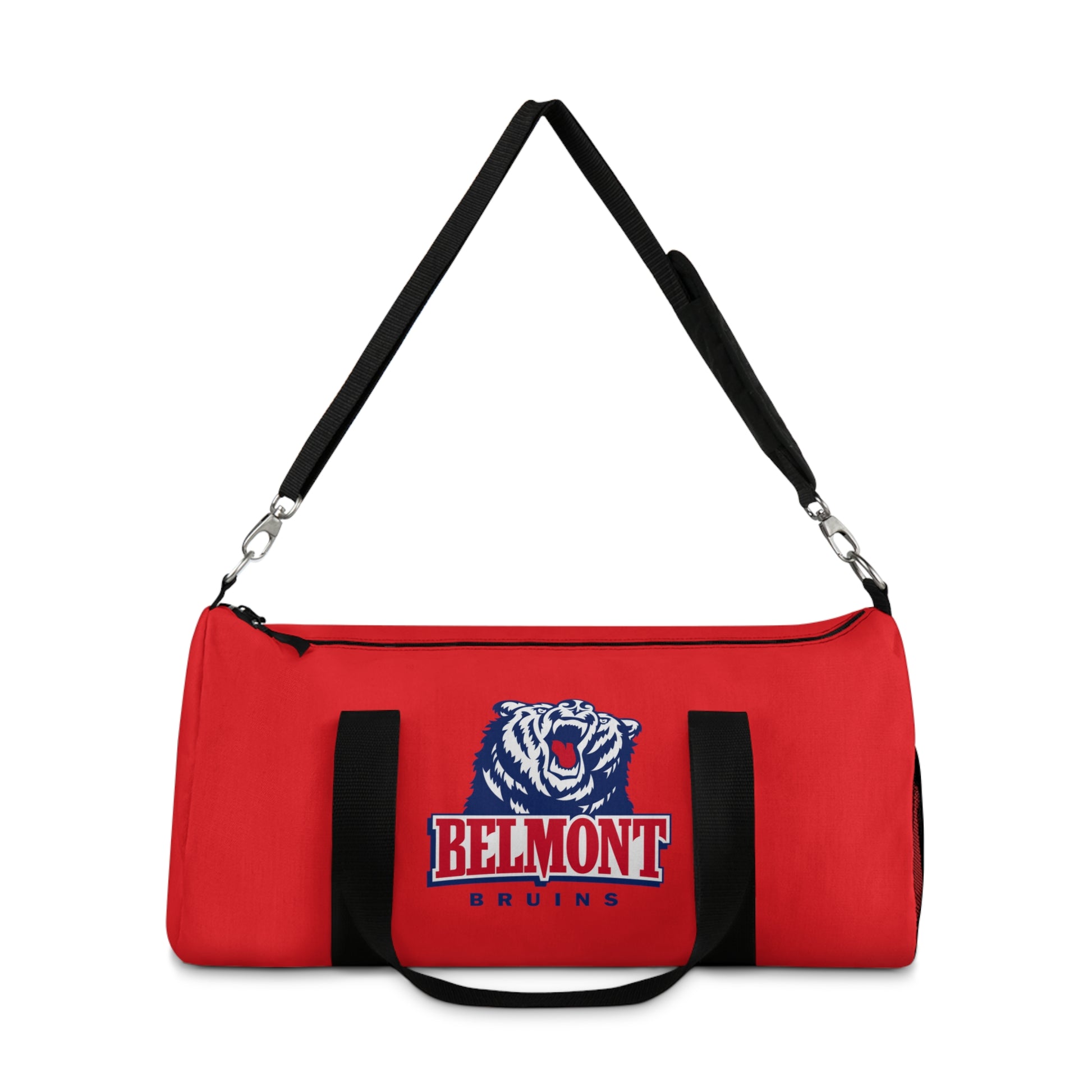 Belmont Bruins Duffle bag for sports, traveling, or any special occasion. It would make an awesome Christmas gift, birthday gift, graduation gift, etc... Lightweight and durable, our custom-printed duffel bags are a great way to express yourself! Perfect for the gym, a day-trip, or for any other mobile storage need! Easy to carry with you in your hands or around your shoulders, these duffel bags are ready to go anywhere! .: Material: 100% polyester Oxford canvas .: Small and large size available .: Black, adjustable, durable strap with shoulder pad .: Name tag sewn inside .: NB! Size tolerance 0.5" (1.3 cm)) .: Assembled in the USA from globally sourced parts