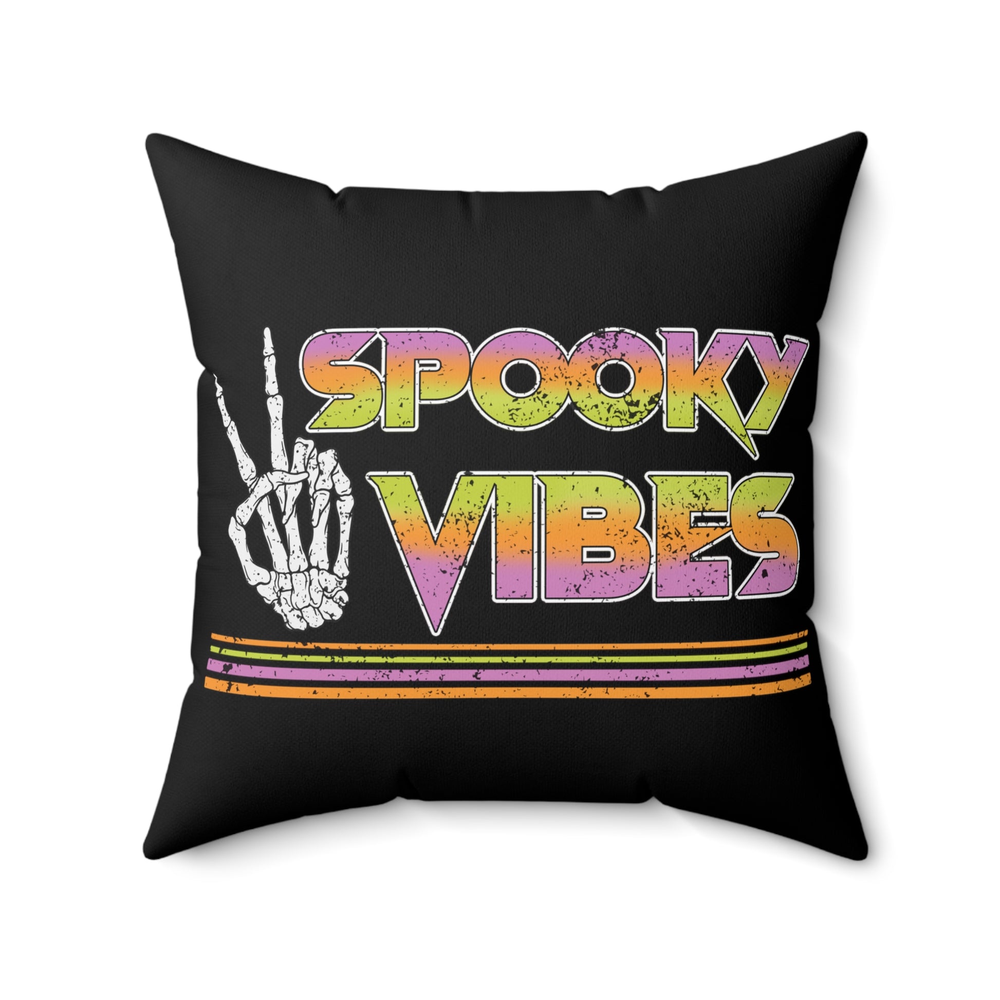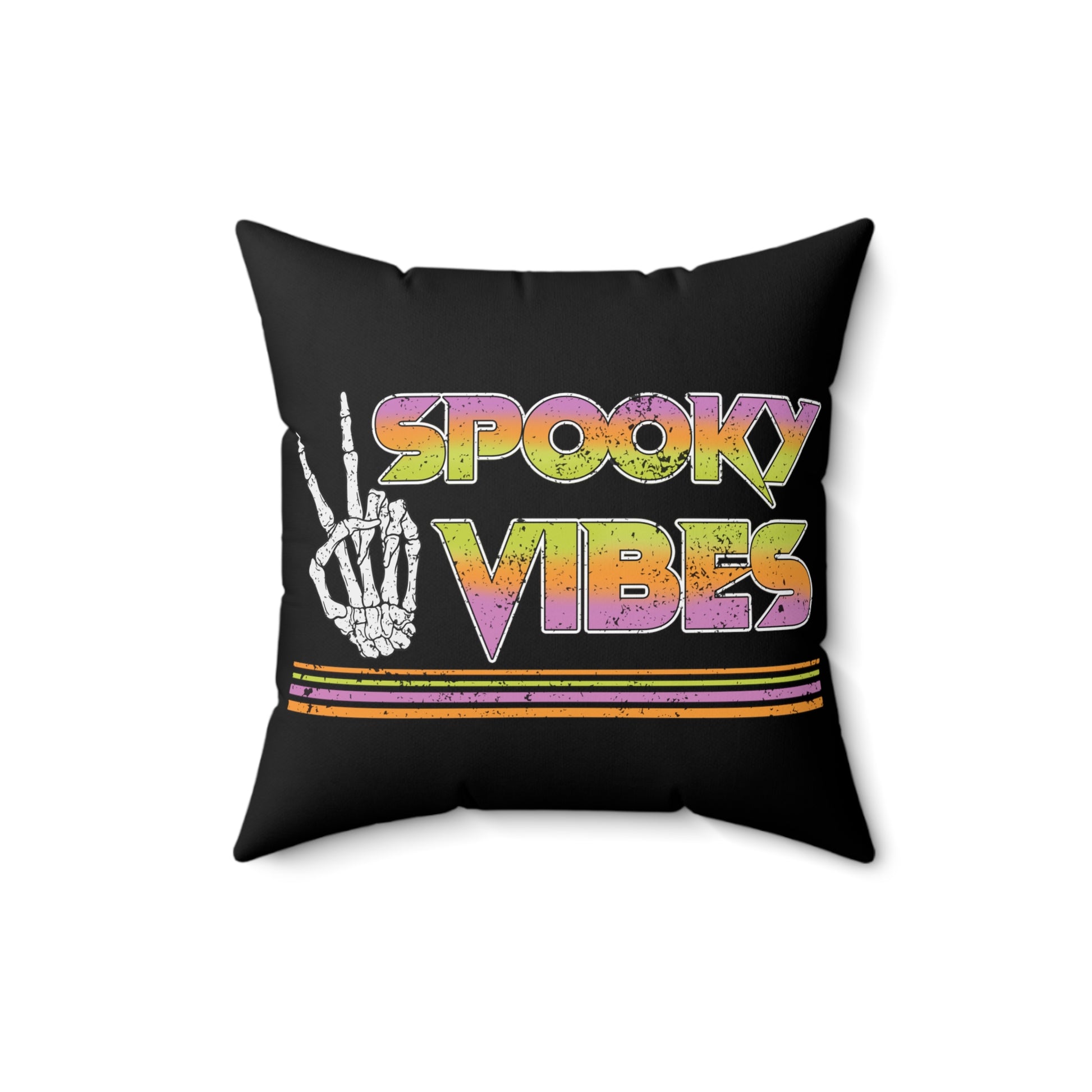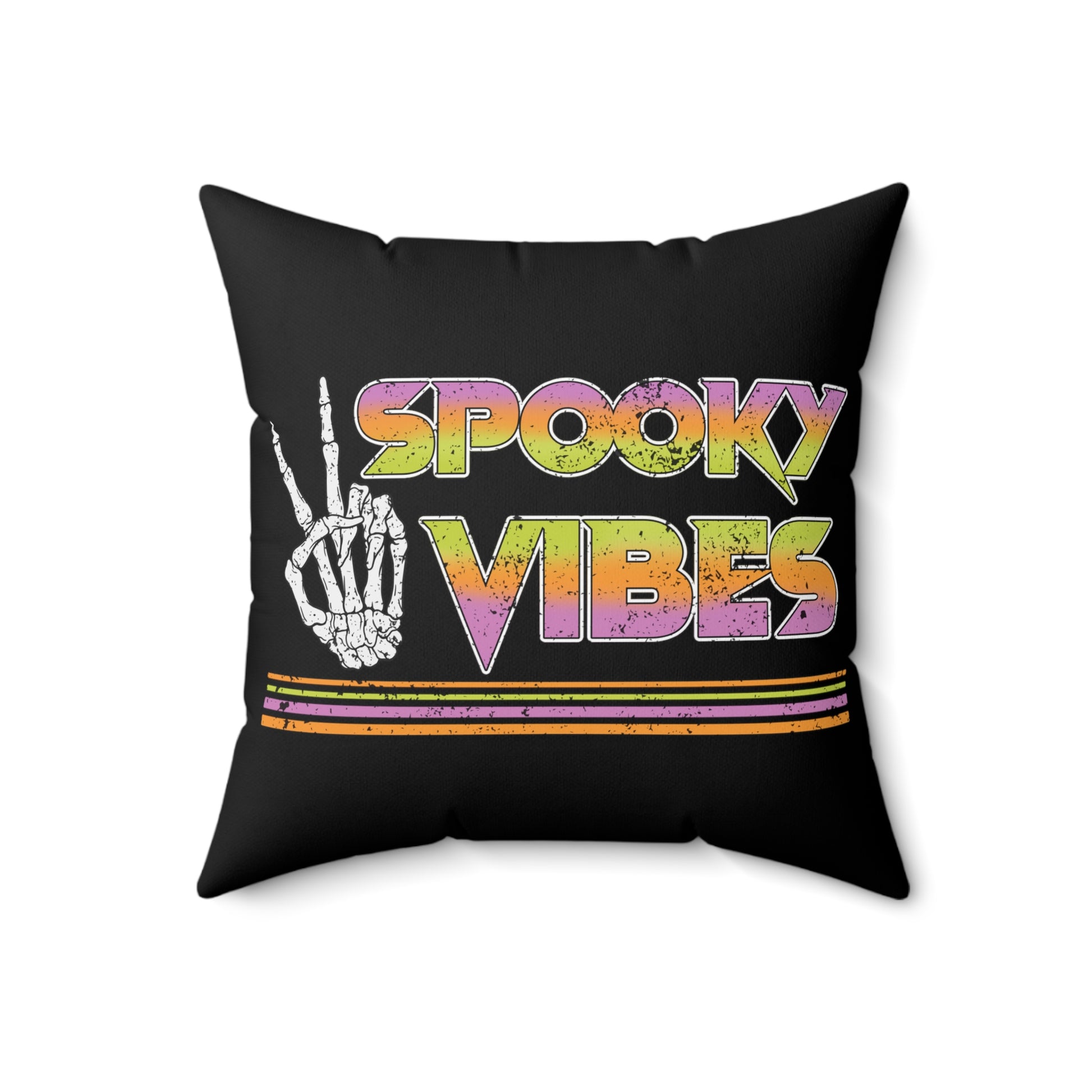 Black 80's Spooky Vibes Fall Halloween Spun Polyester Square Pillow