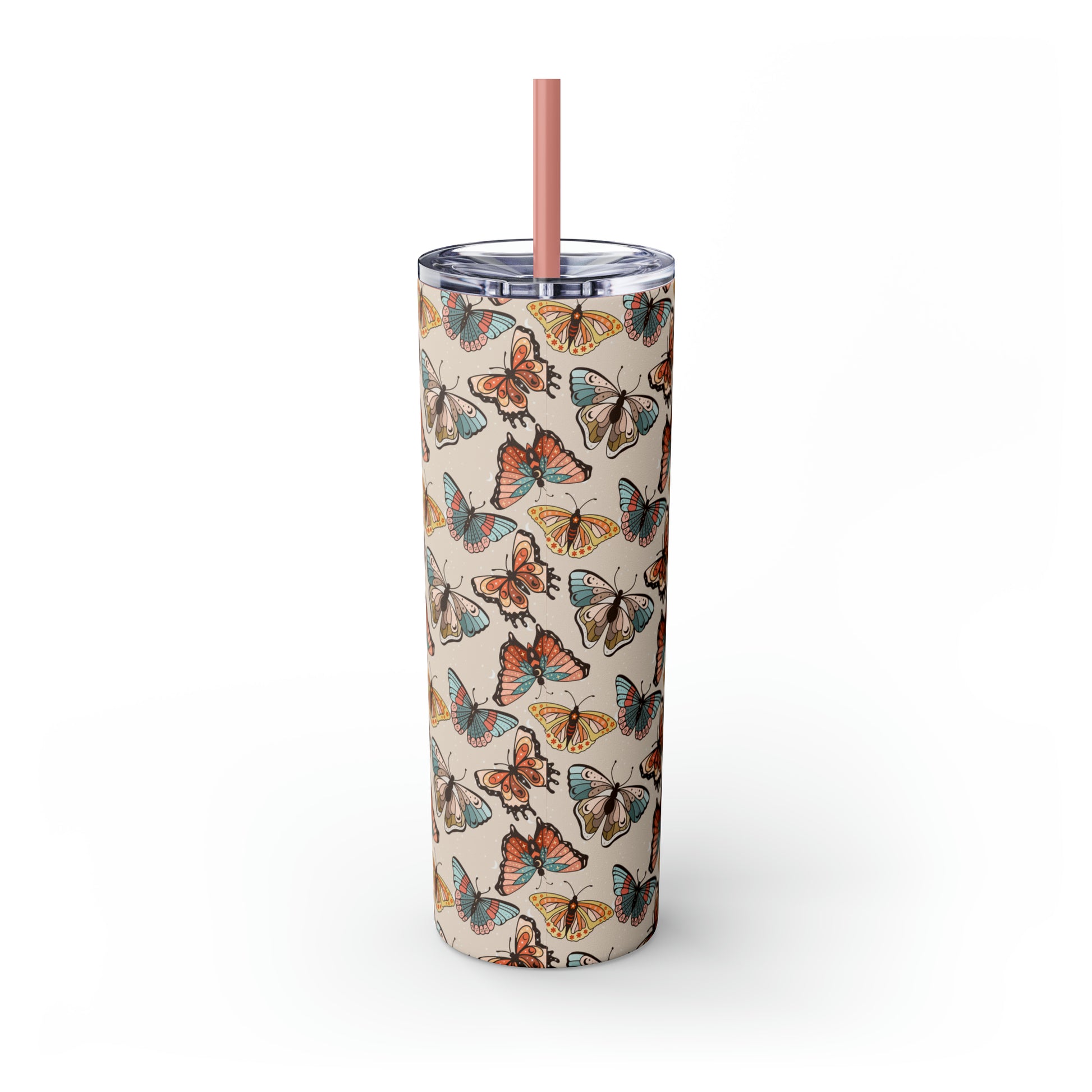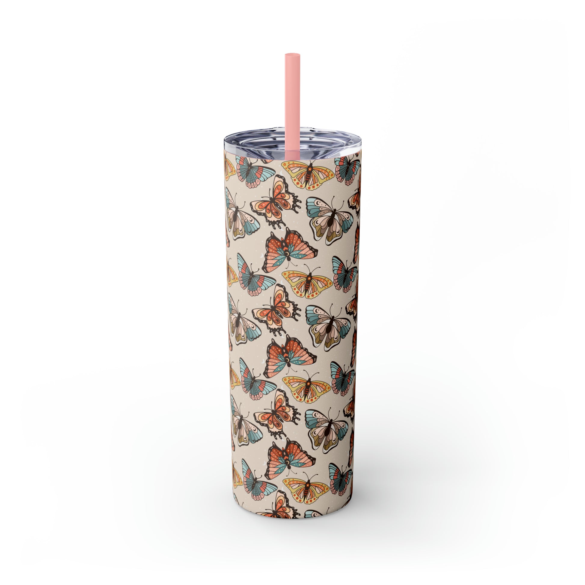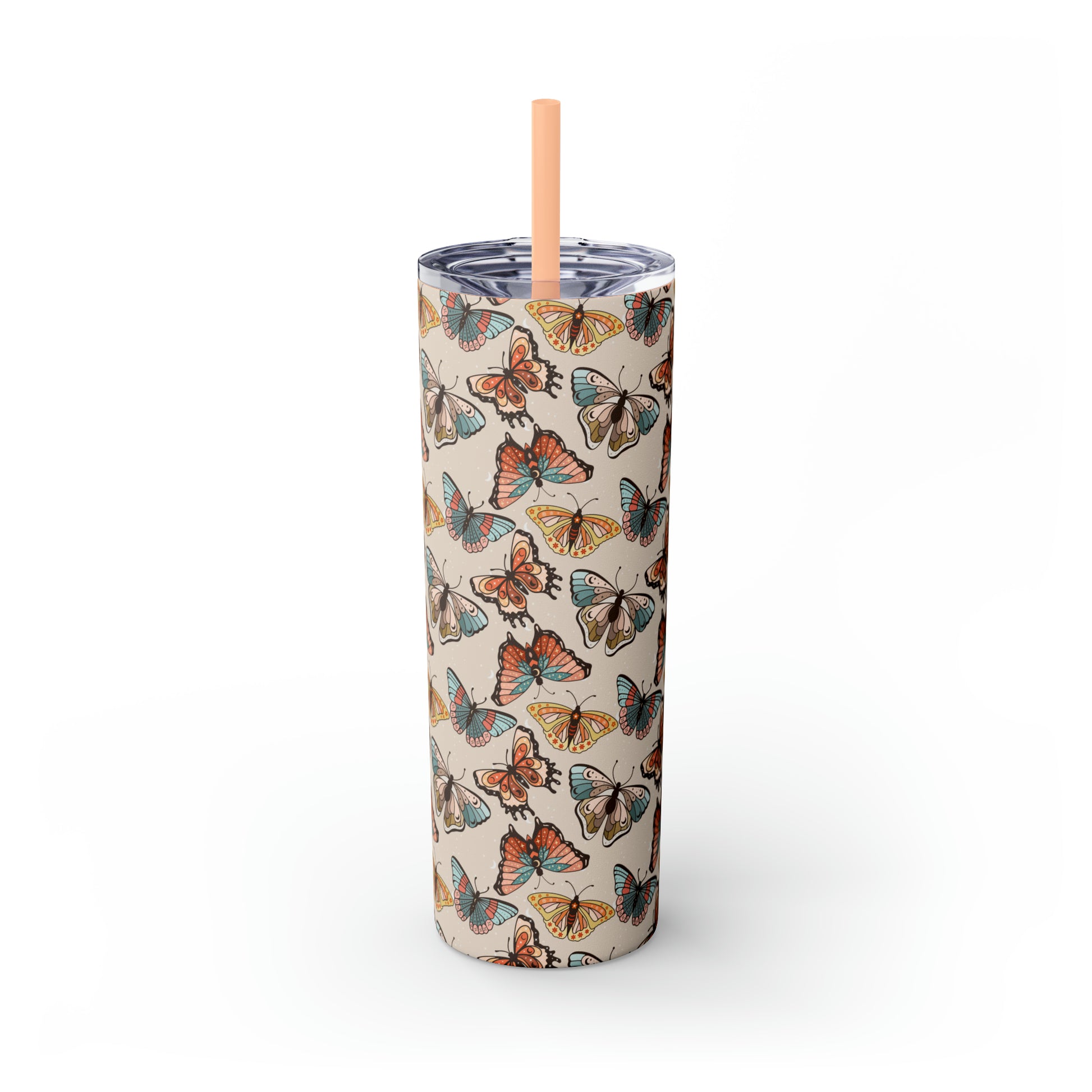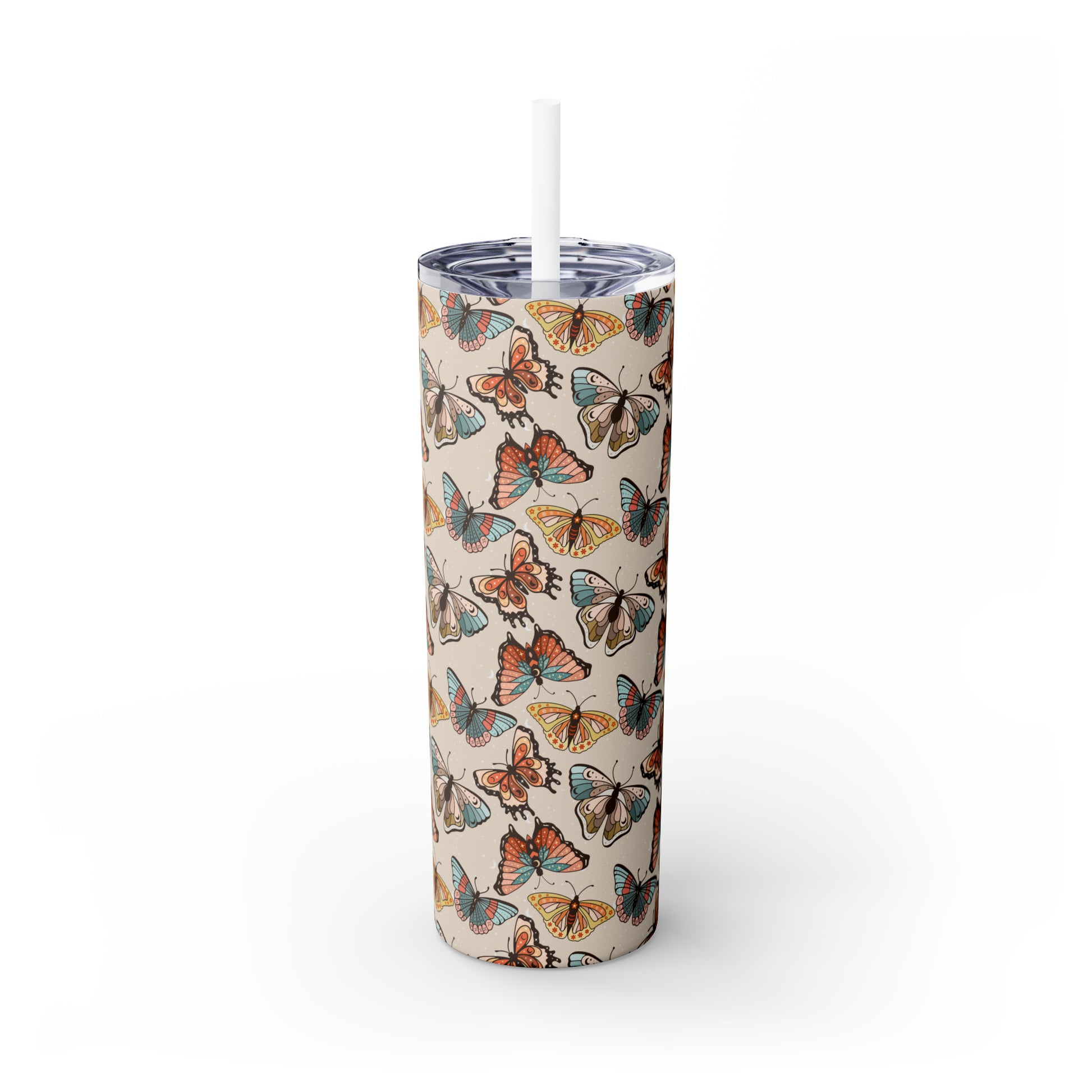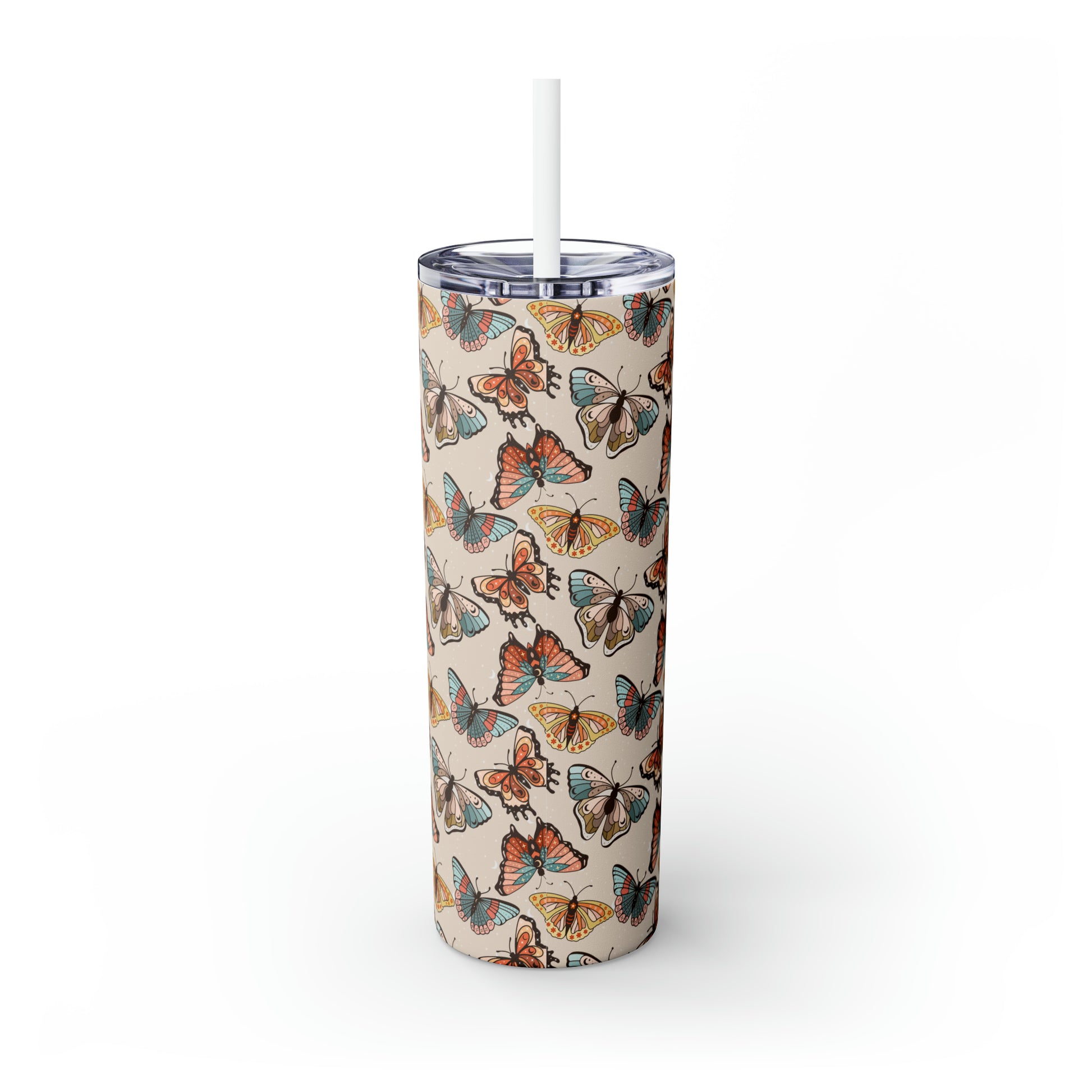 Boho Butterfly Brown Skinny Tumbler with Straw, 20oz