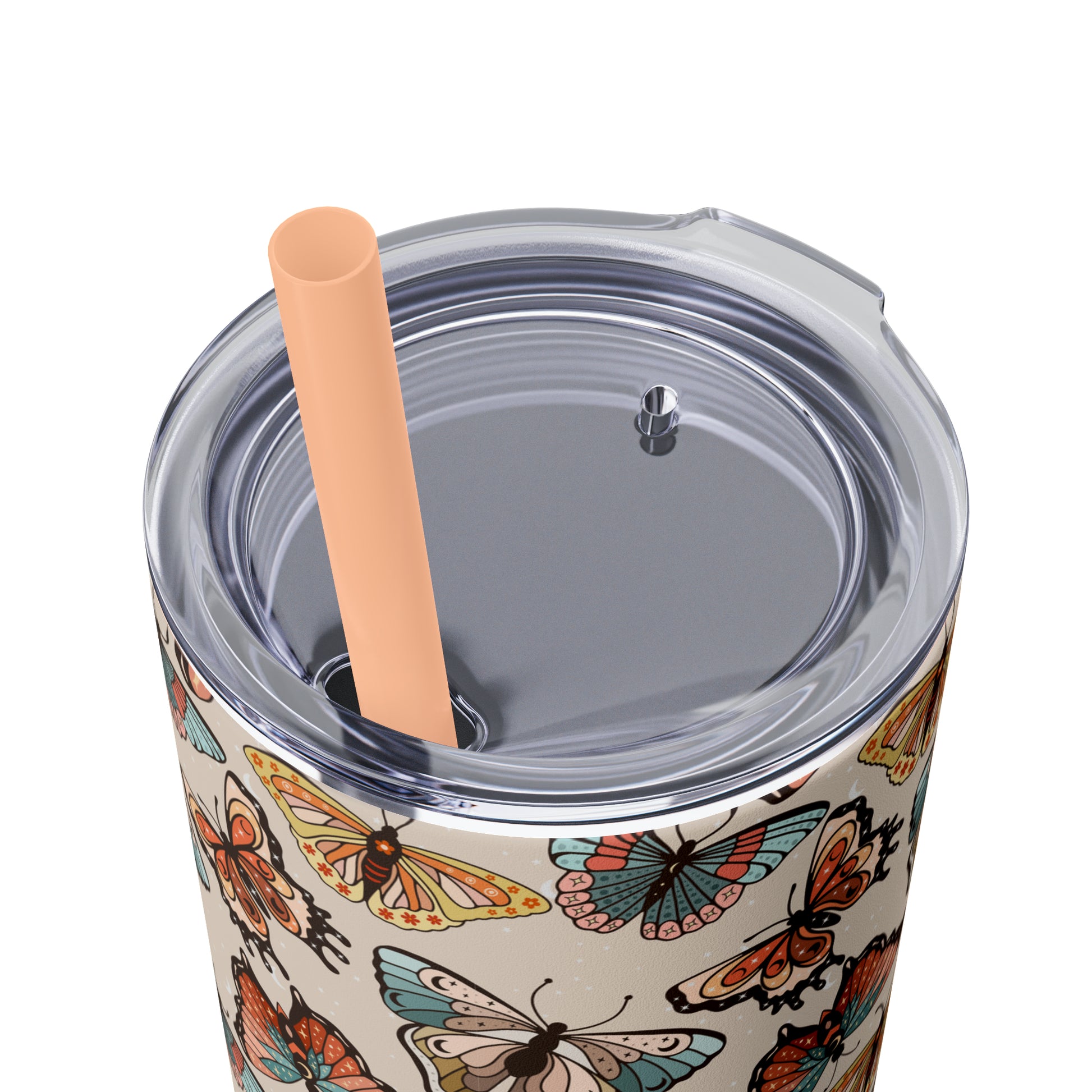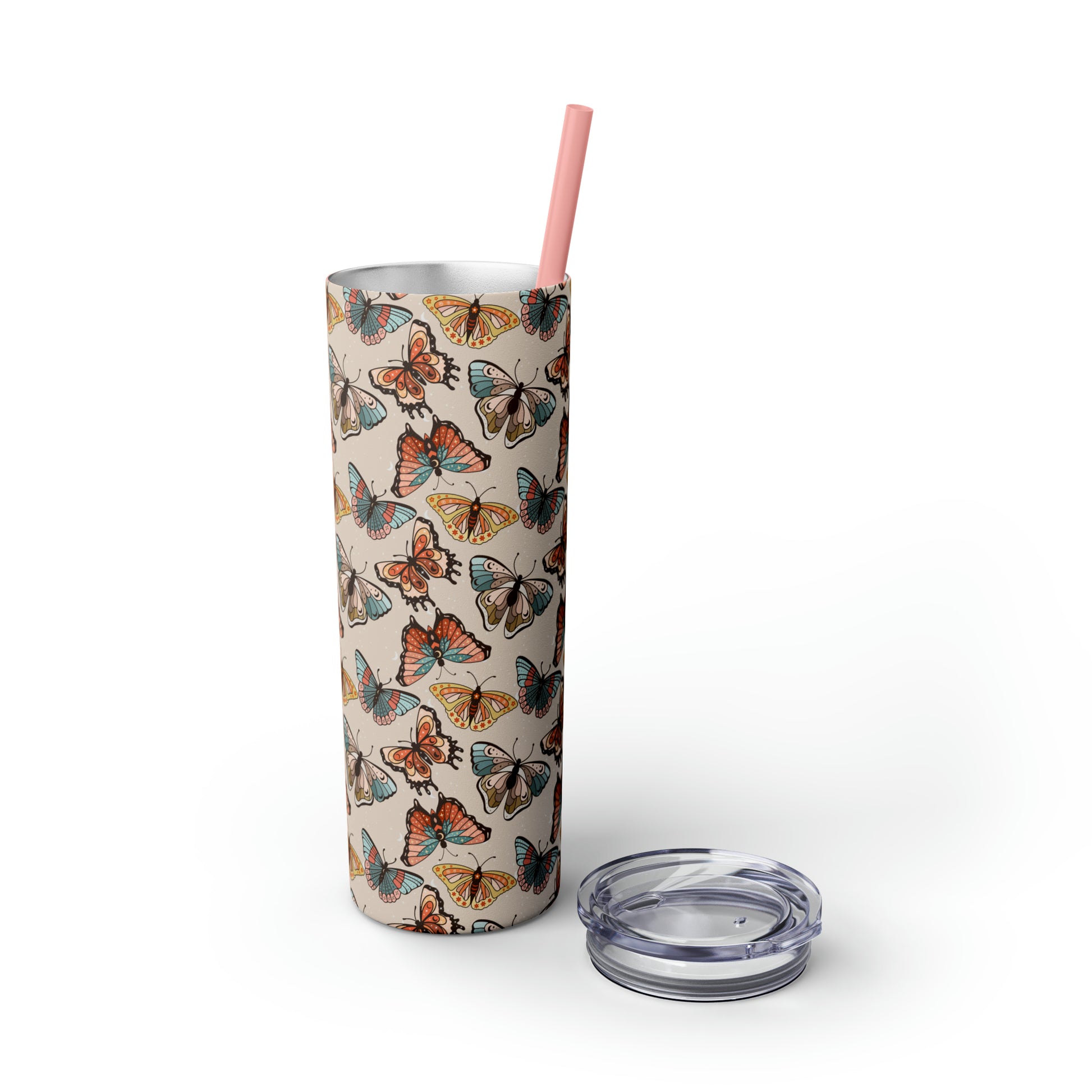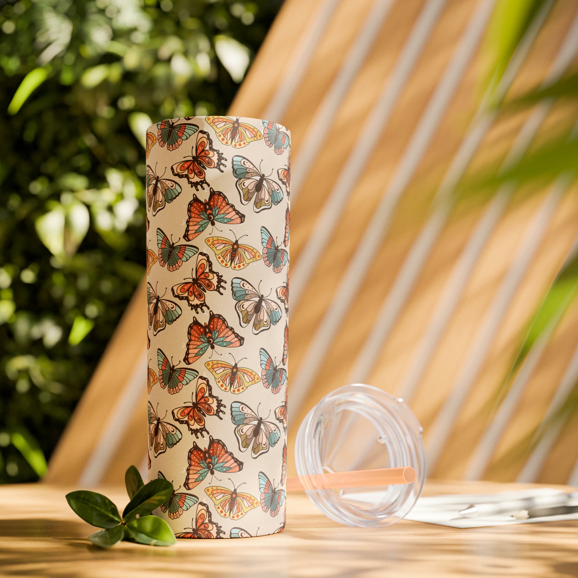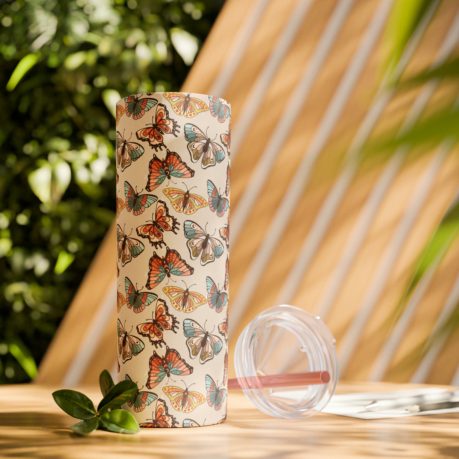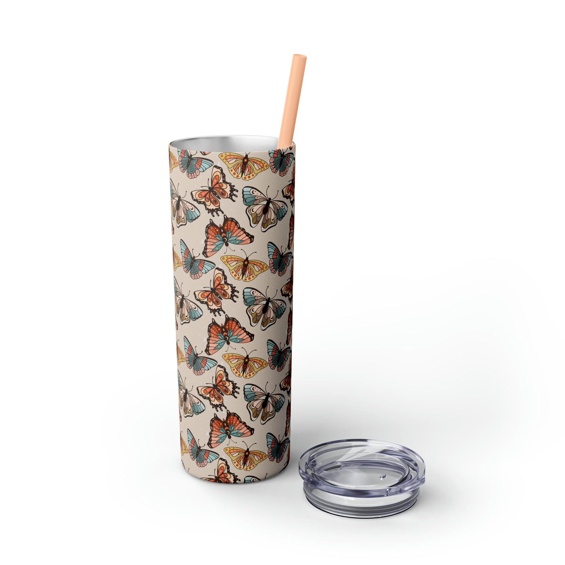Boho Butterfly Brown Skinny Tumbler with Straw, 20oz