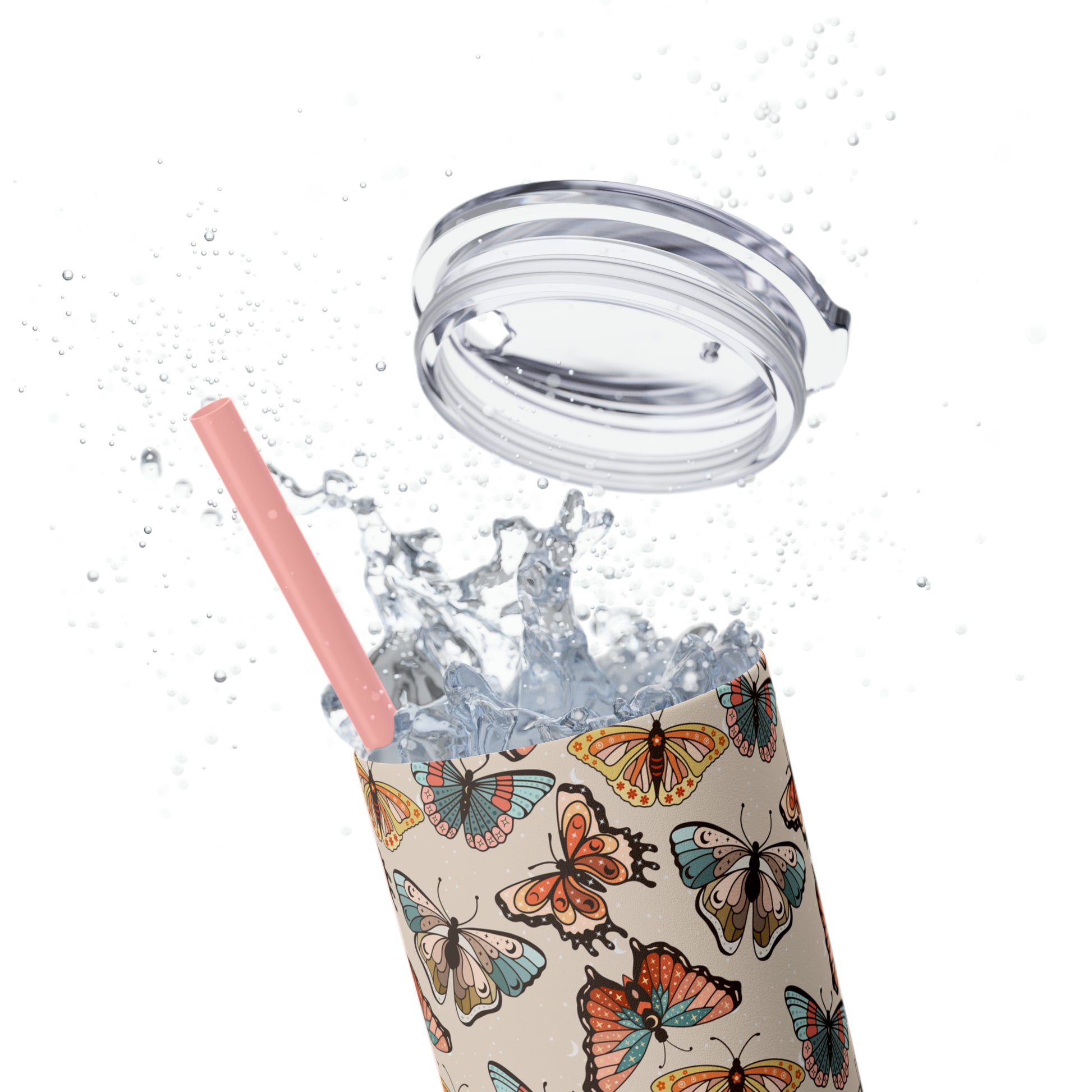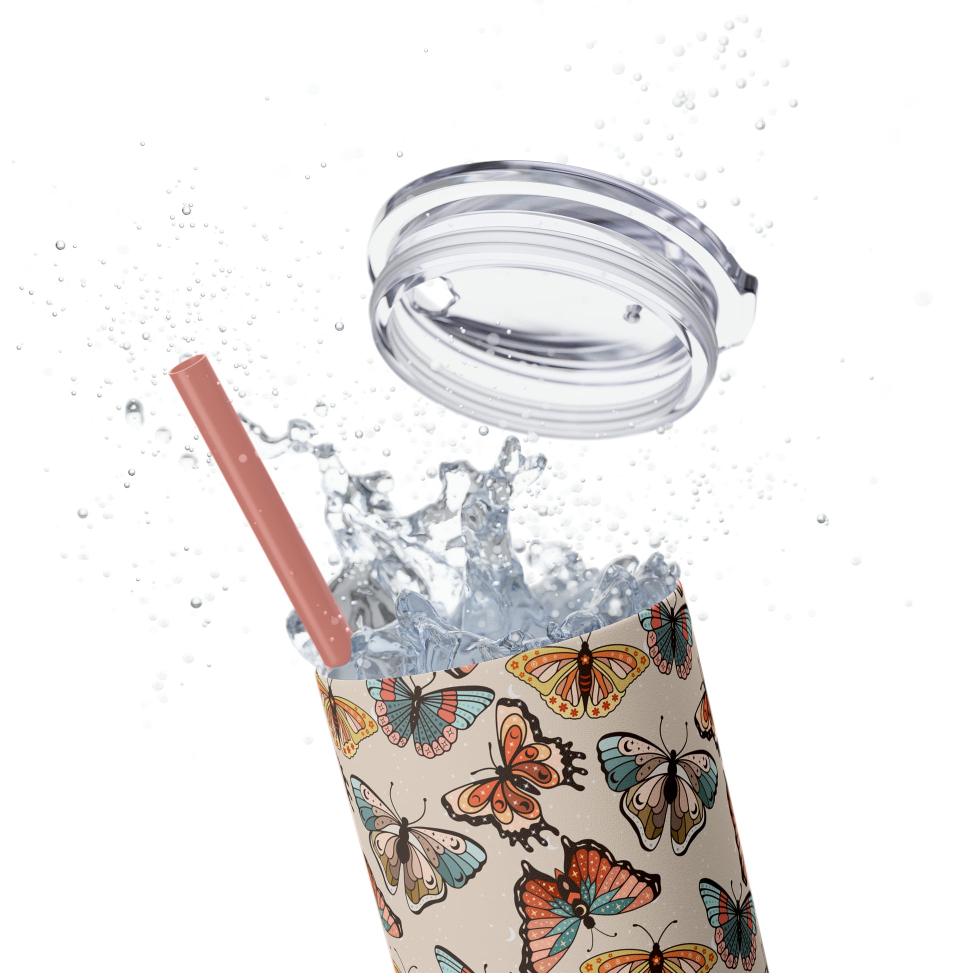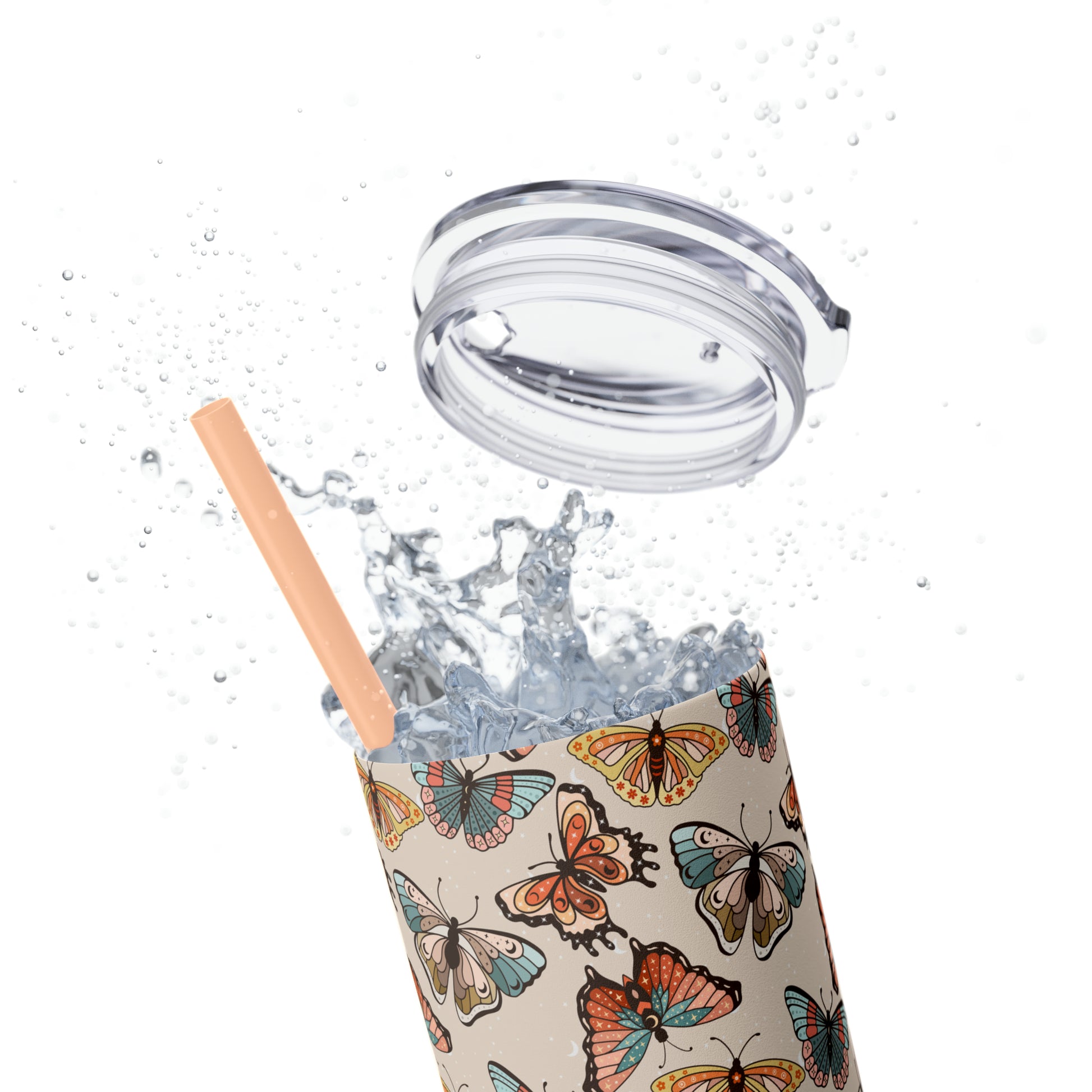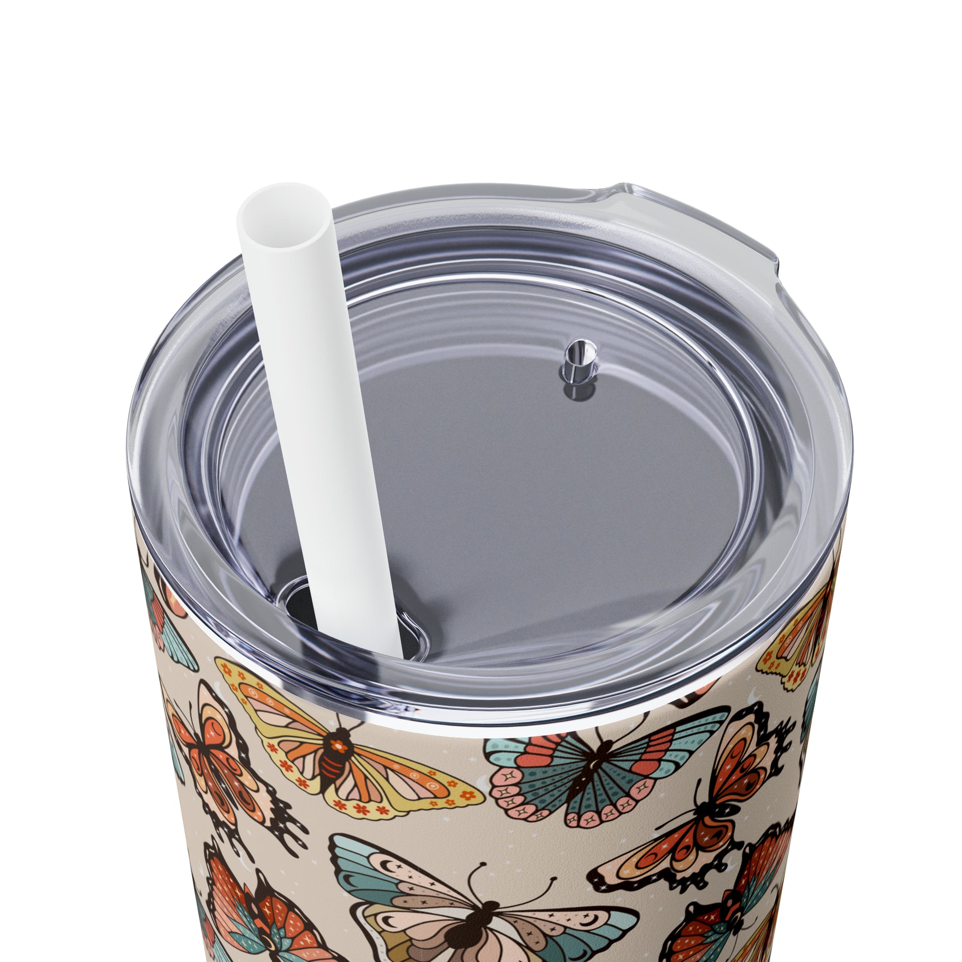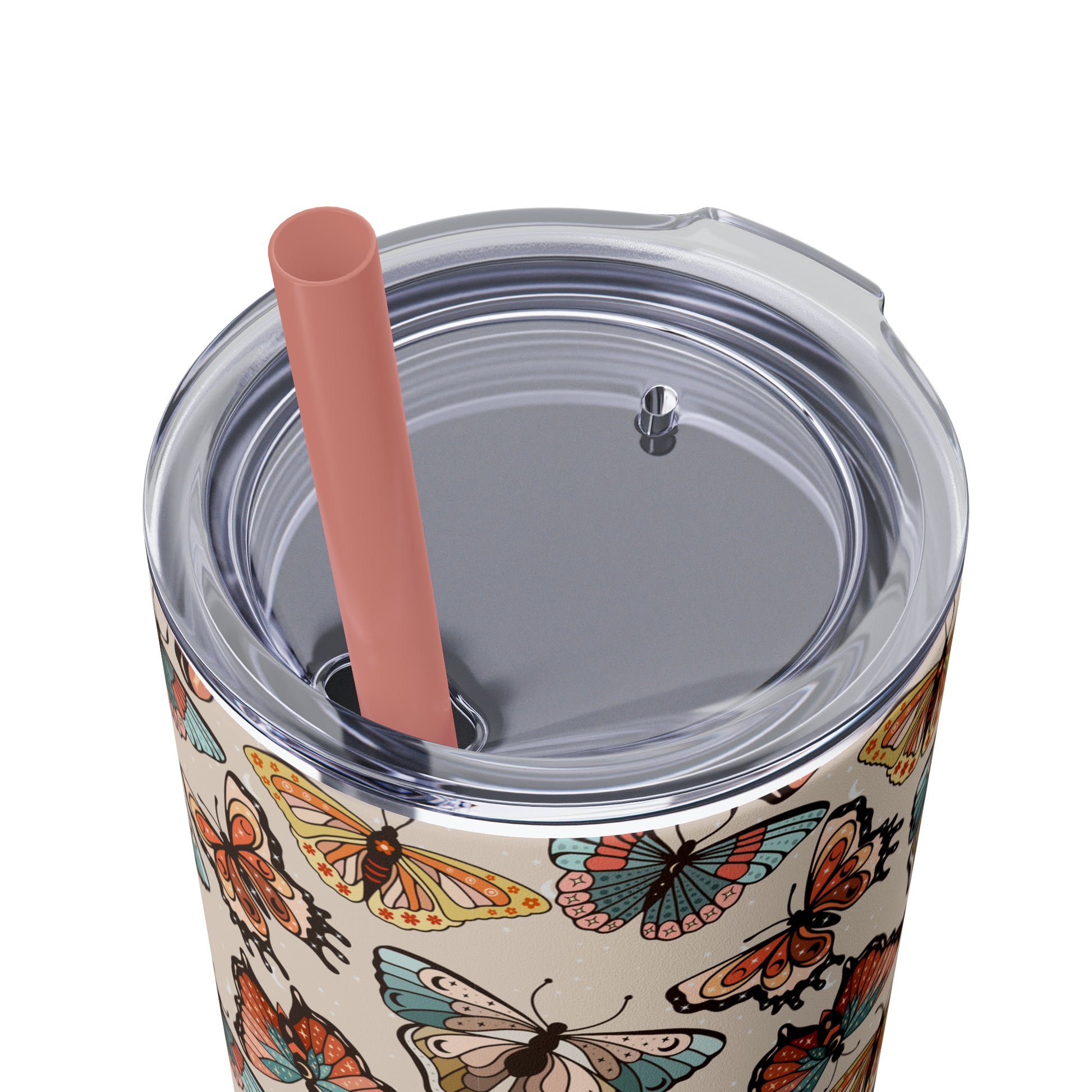 Boho Butterfly Brown Skinny Tumbler with Straw, 20oz