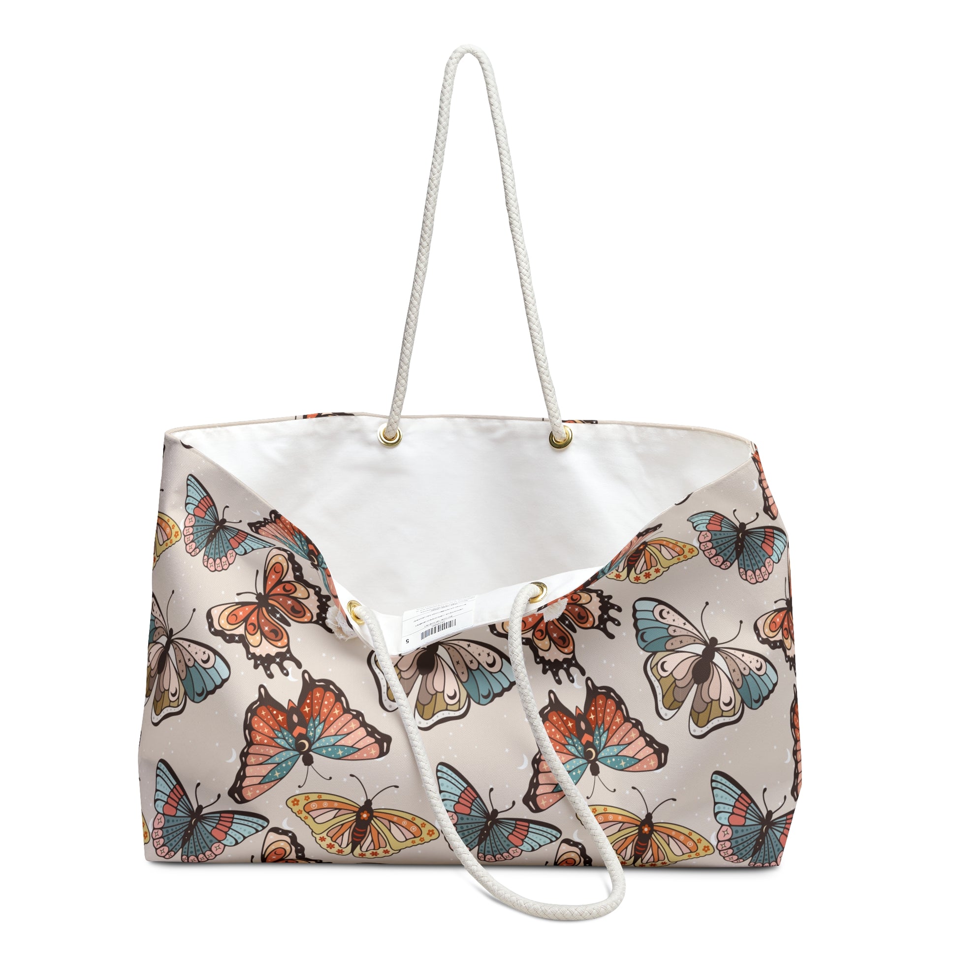 Our oversized Weekender Tote is perfect for your weekend at the beach or in town. The wide-mouthed, durable bag holds a generous amount of personal items and is easily held by its thick rope handles.