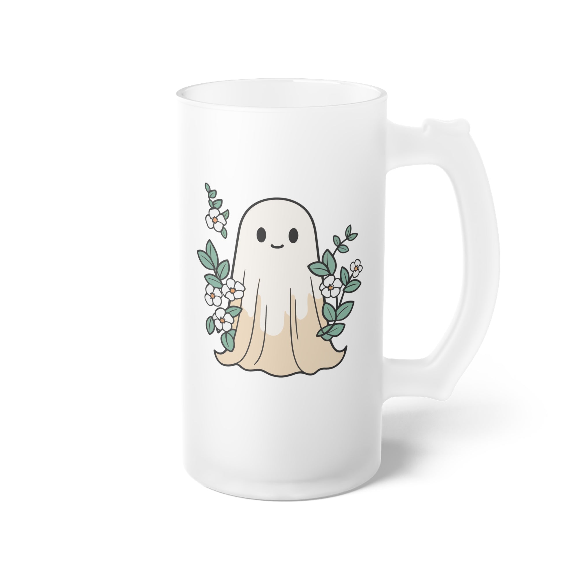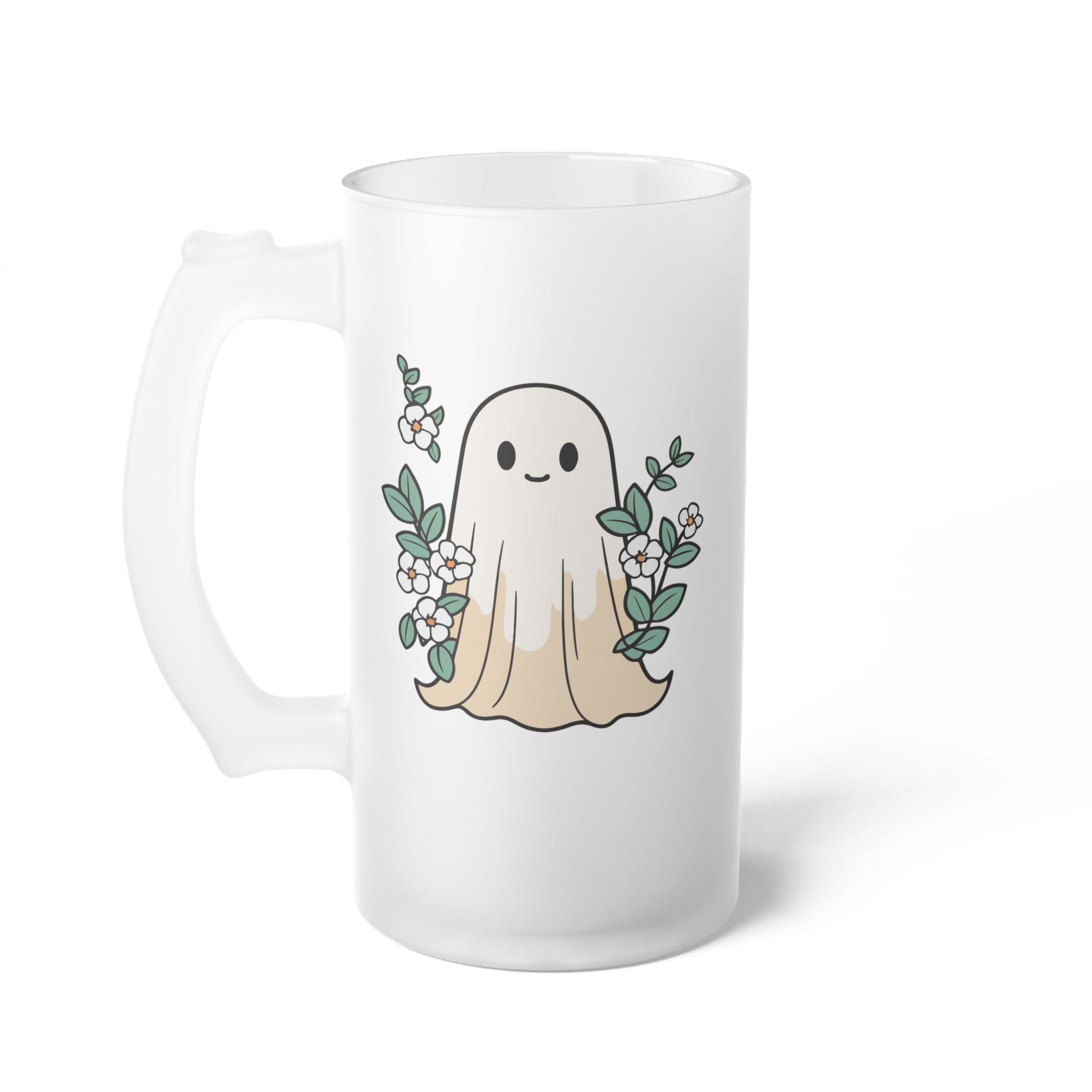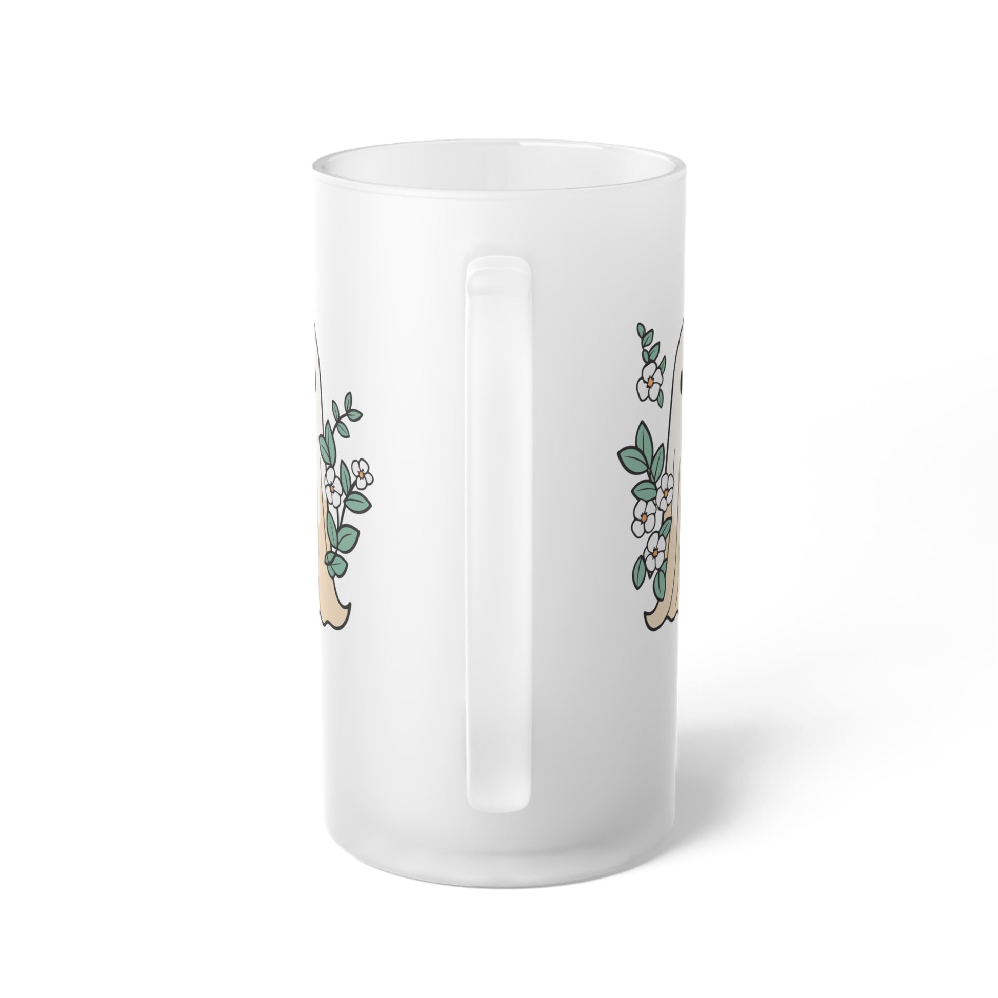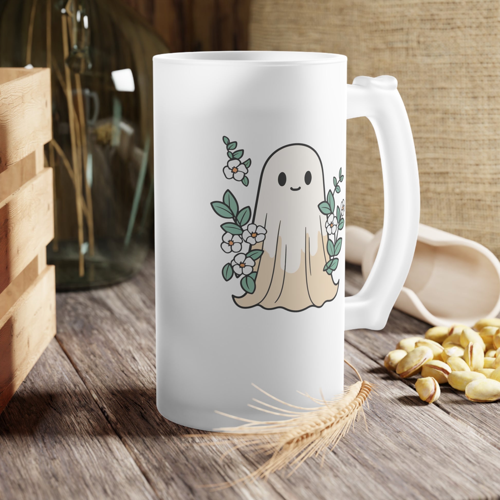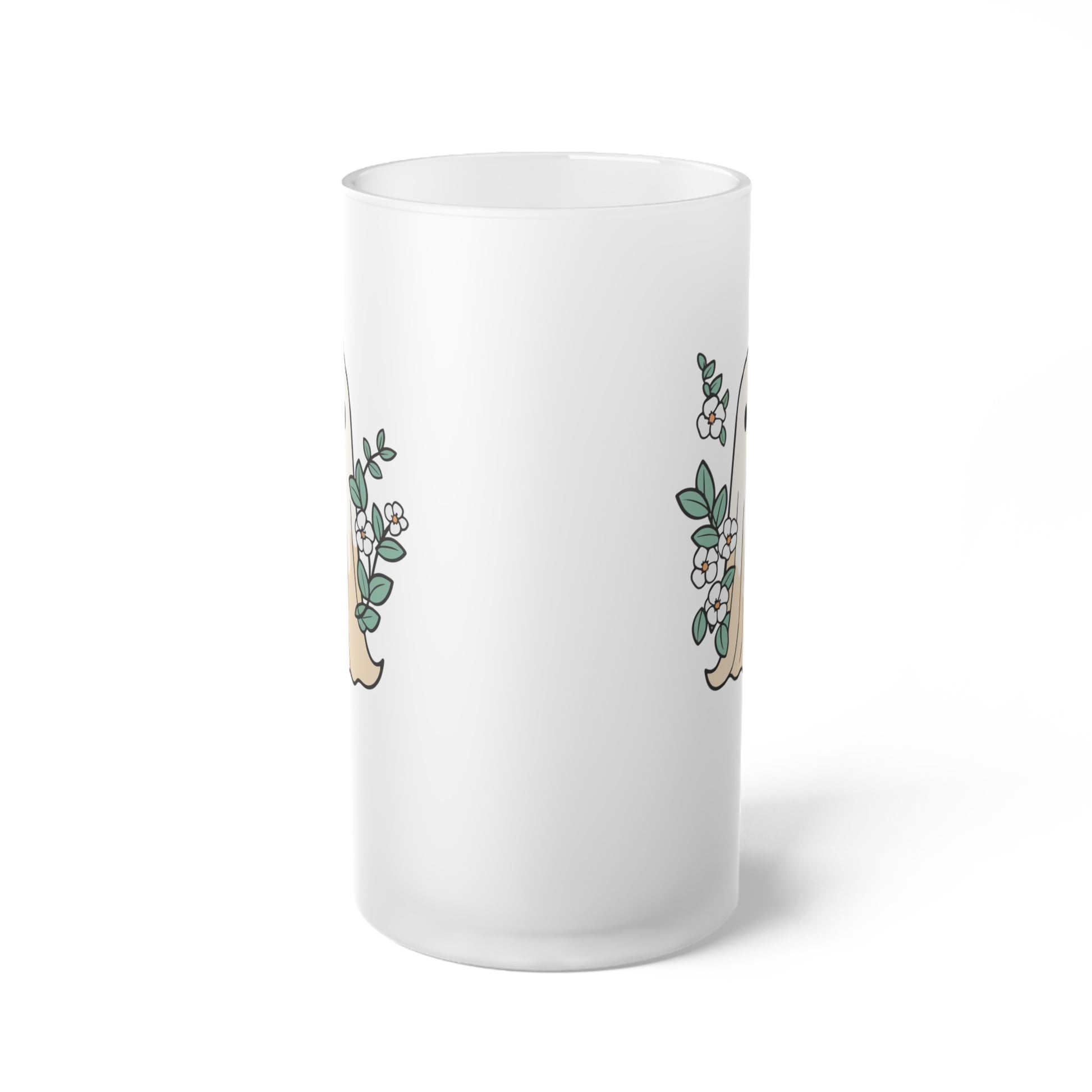 Boho Floral Ghost Fall Logo Frosted Glass Beer Mug