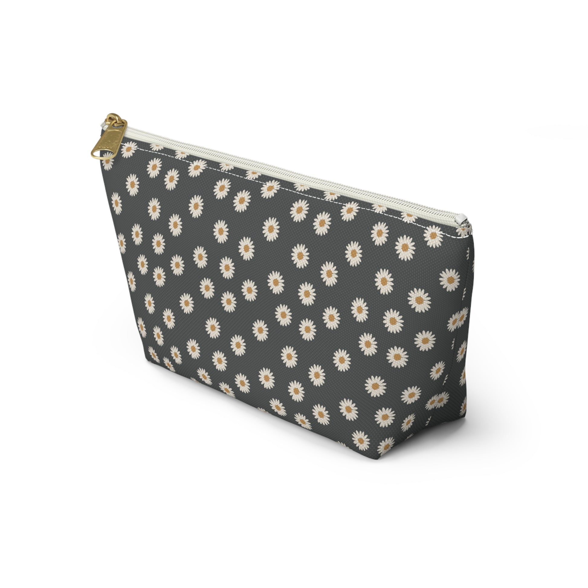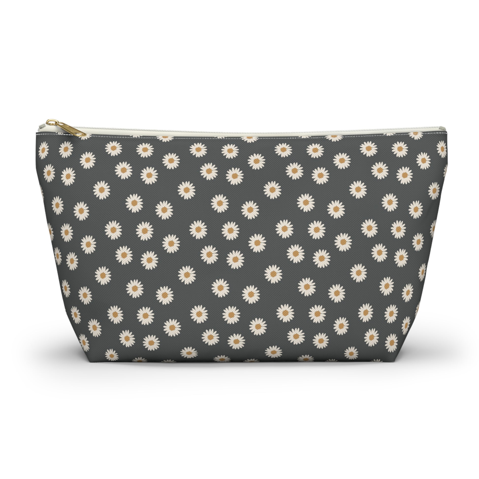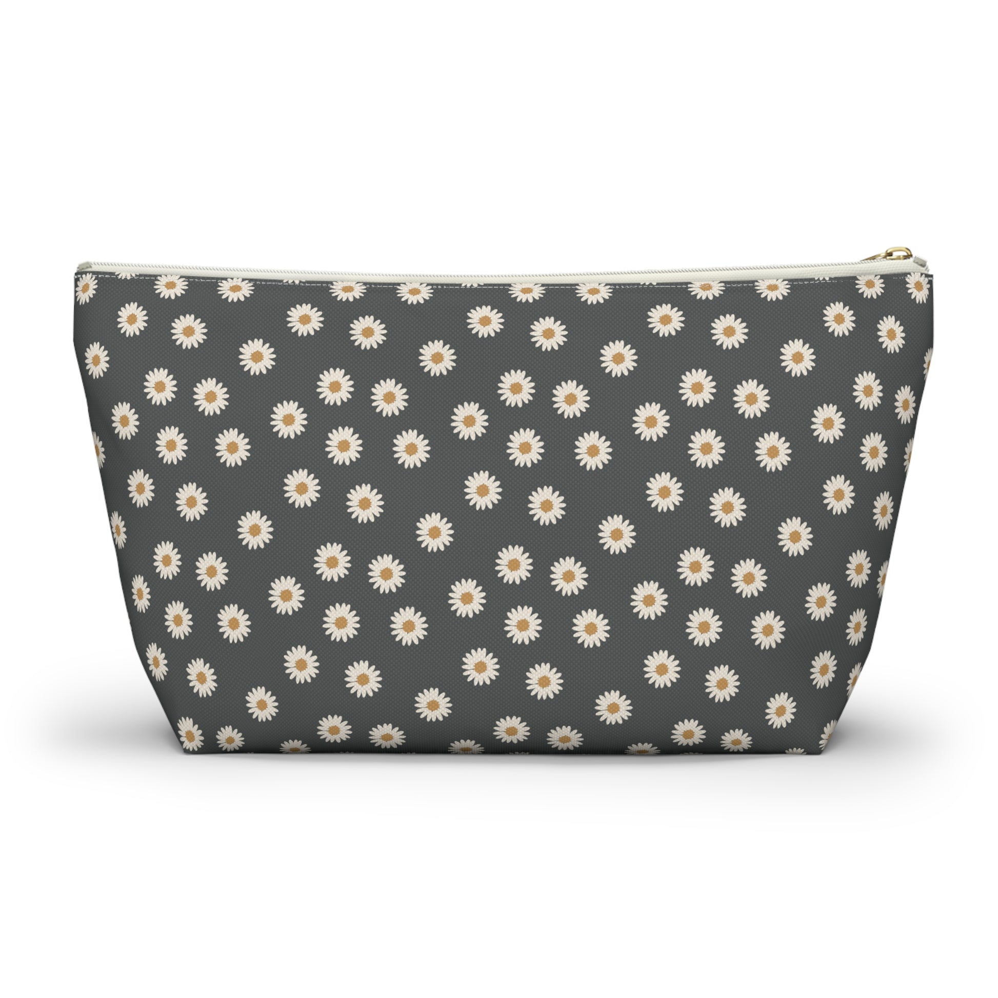 Boho White Daisy Design Accessory Pouch w T-bottom