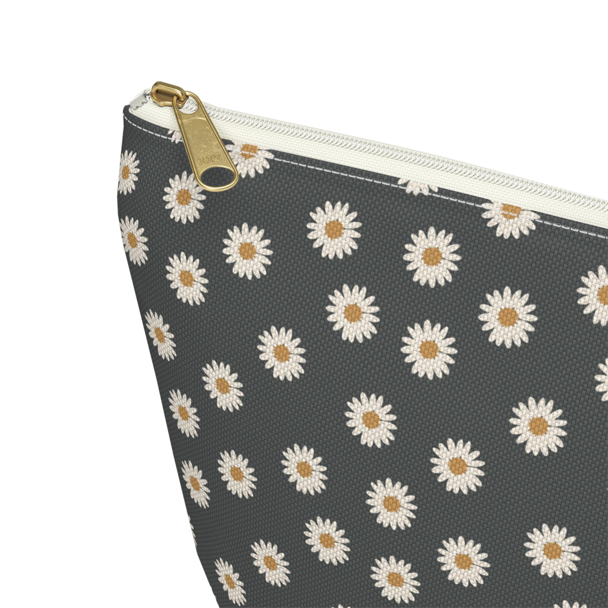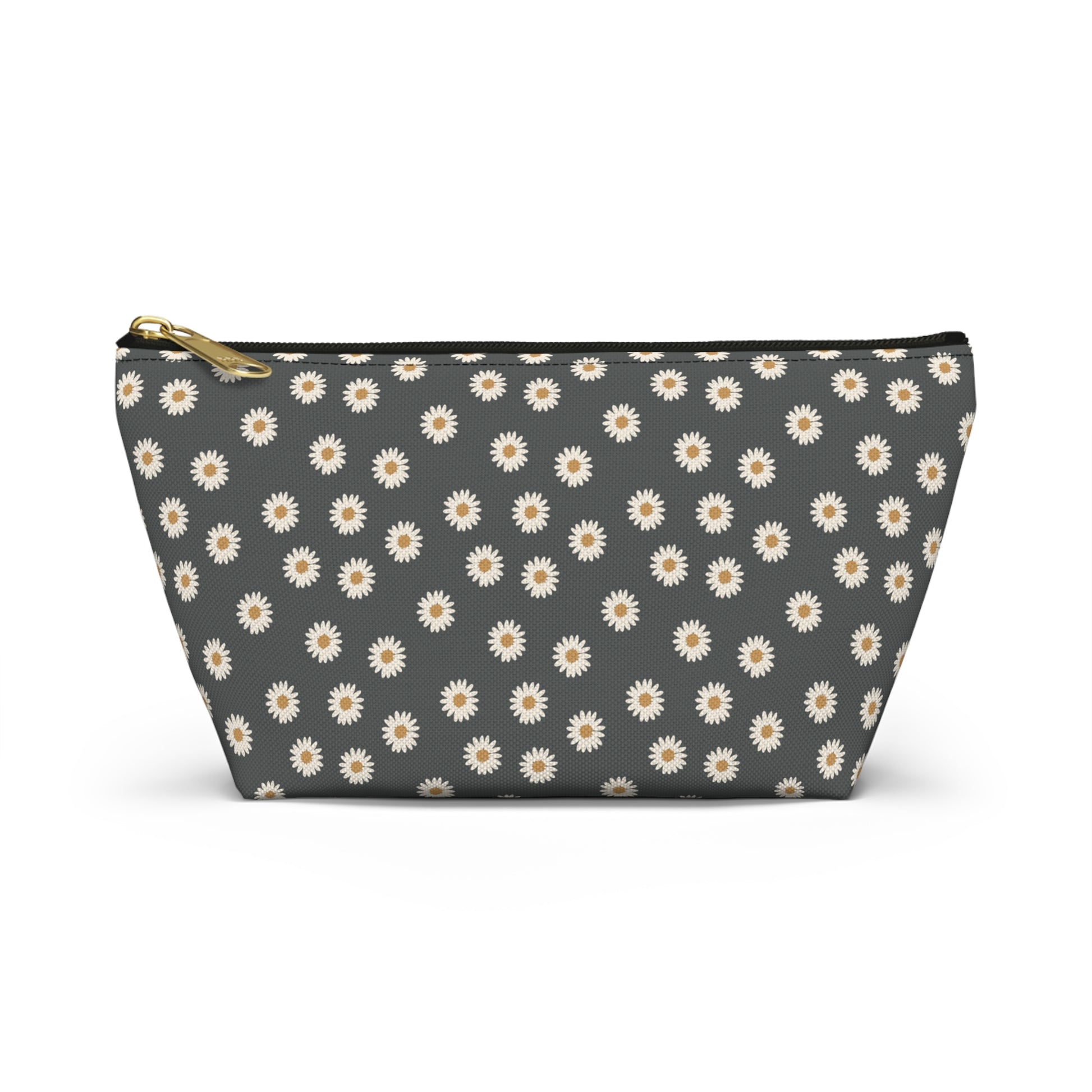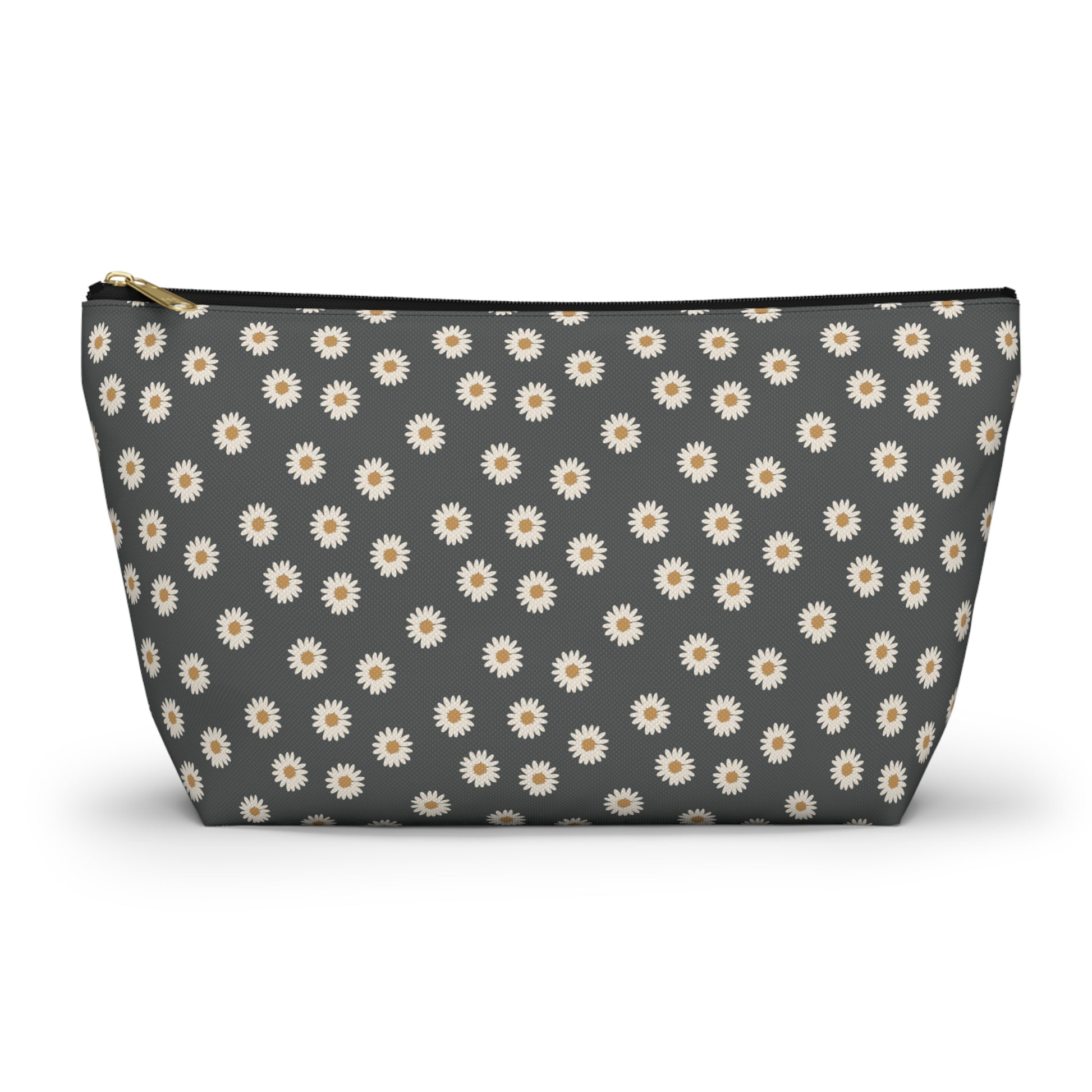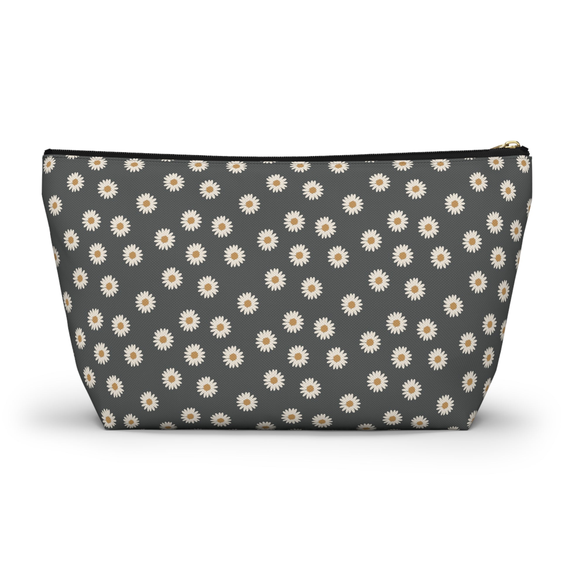 Boho White Daisy Design Accessory Pouch w T-bottom