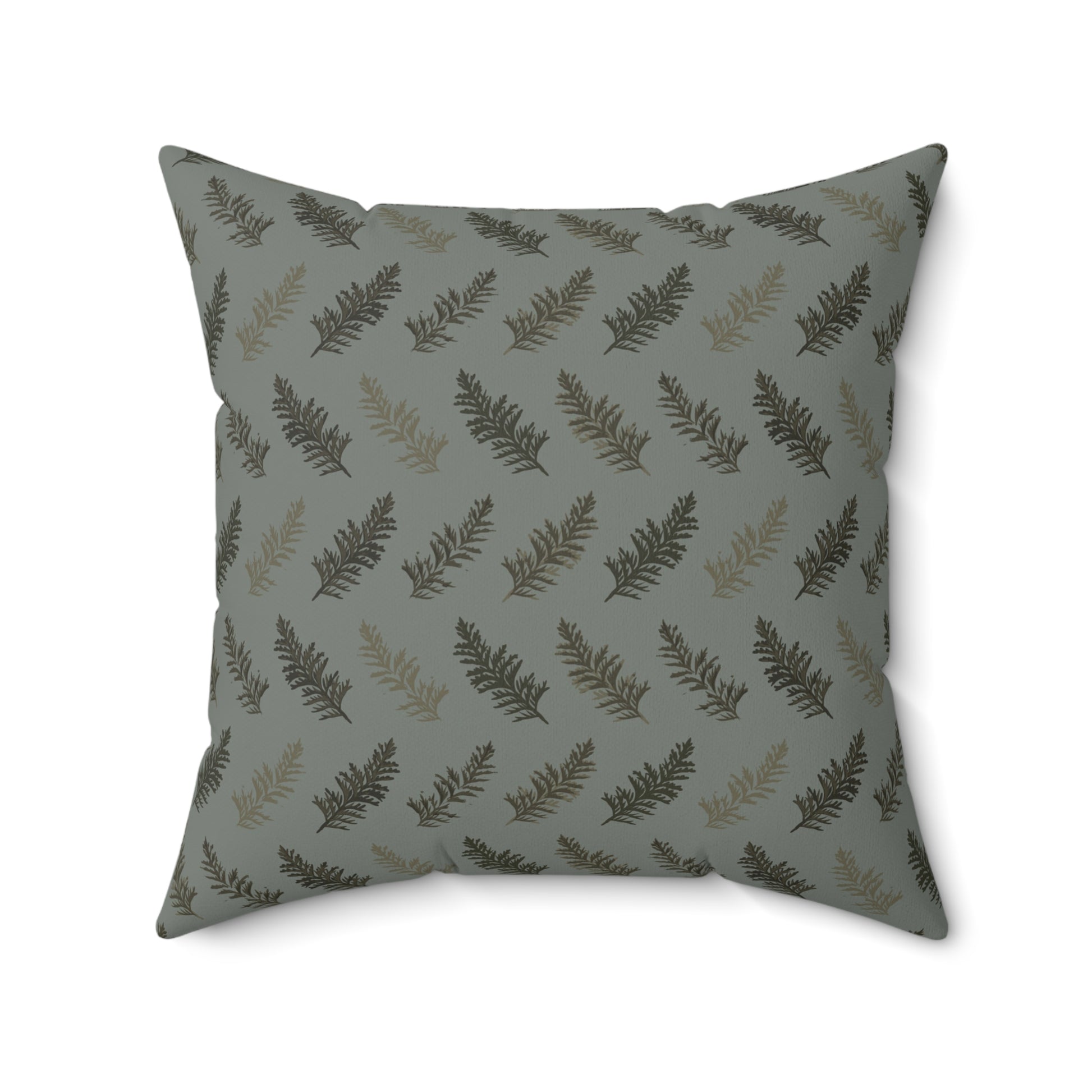 Cedar Leaves Green Fall/ Halloween Spun Polyester Square Pillow