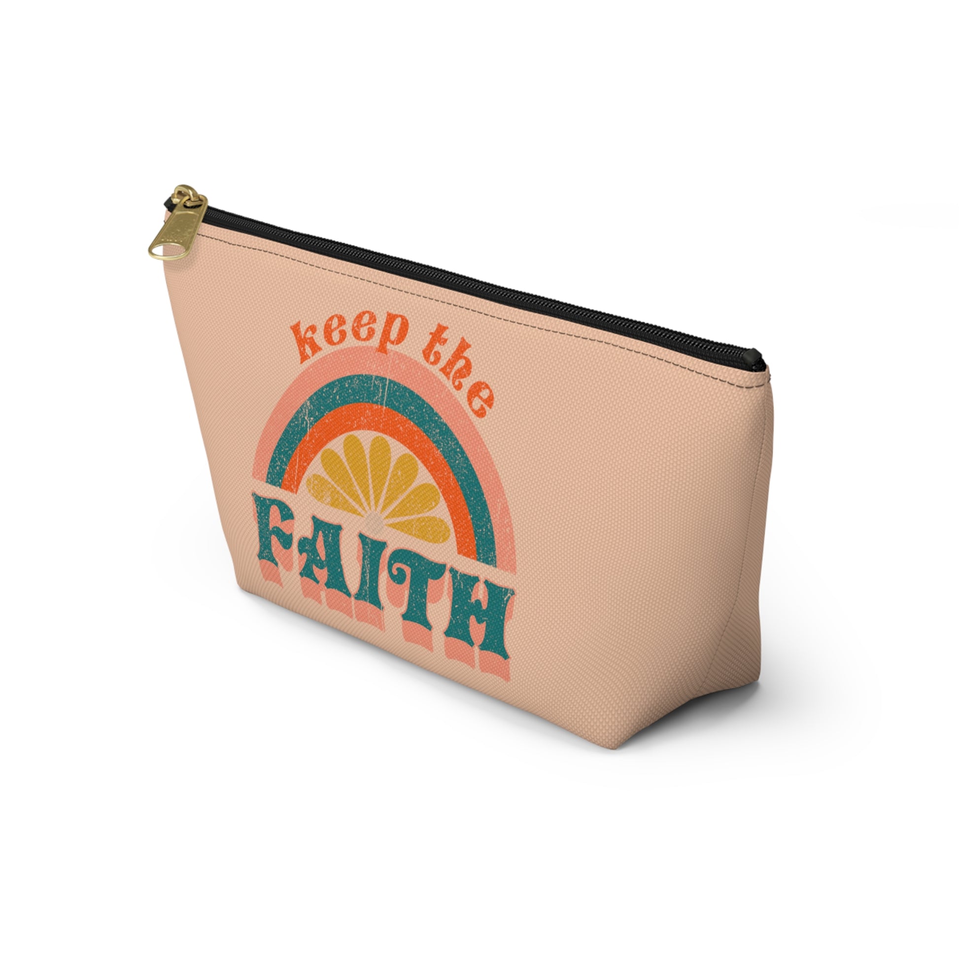 This Christian Keep the Faith Print Design pouch is great for to carry around or use for a first aid kit, make-up, medicine bag, pencil pouch, etc.... Our t-bottom pouches vary from small to large and can be used for pretty much anything. Christian Gear is amazing. They make excellent pencil cases and cosmetic travel bags. They are constructed from a durable material with a zipper closure.