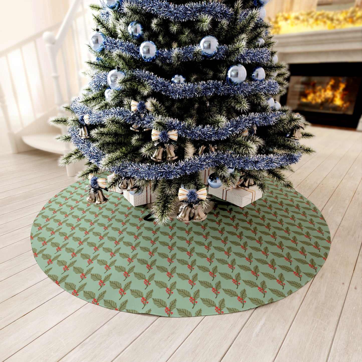 Christmas and Holiday Holly and Berry Leaf Round Tree Skirt