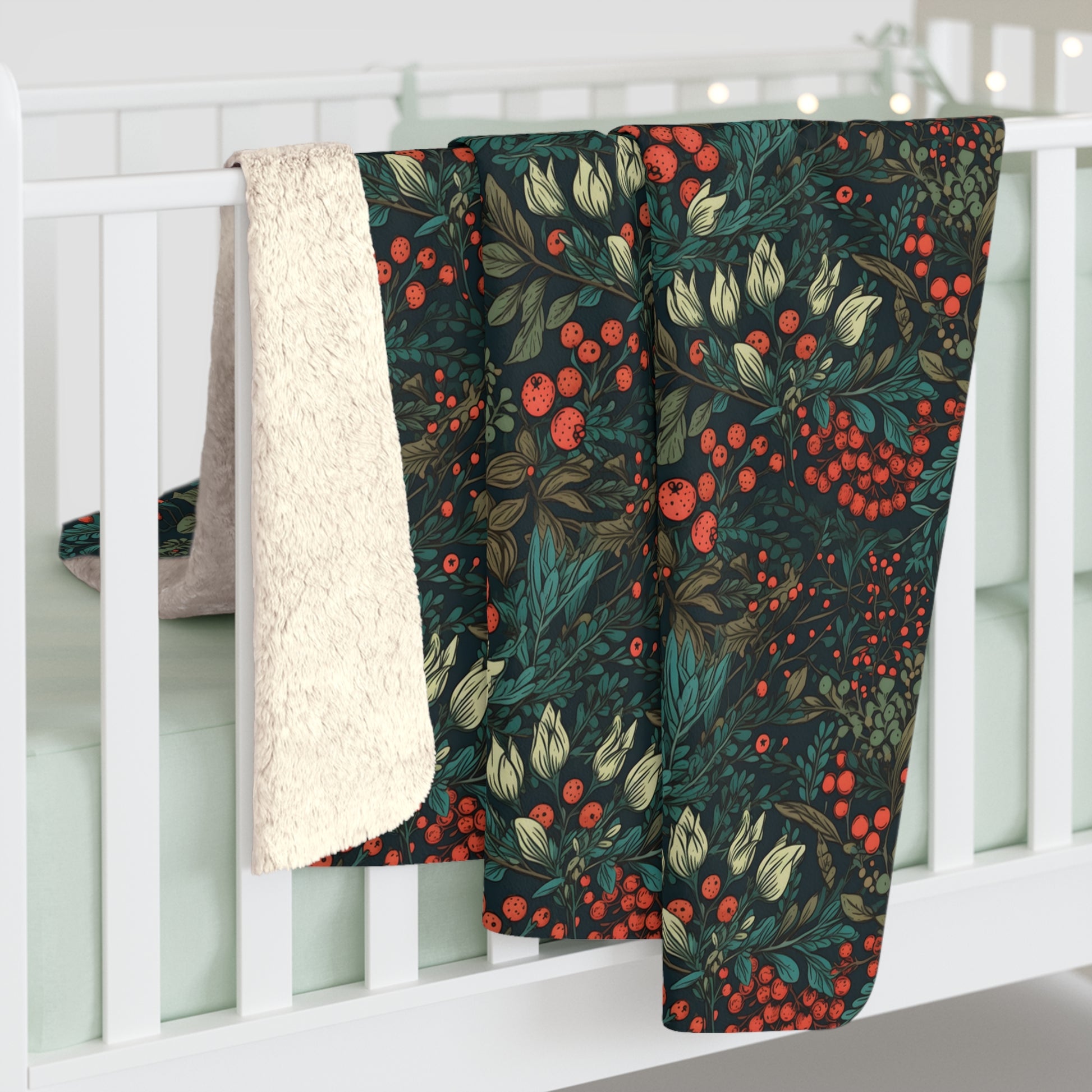 Christmas Berry Botanical Sherpa Fleece Blanket