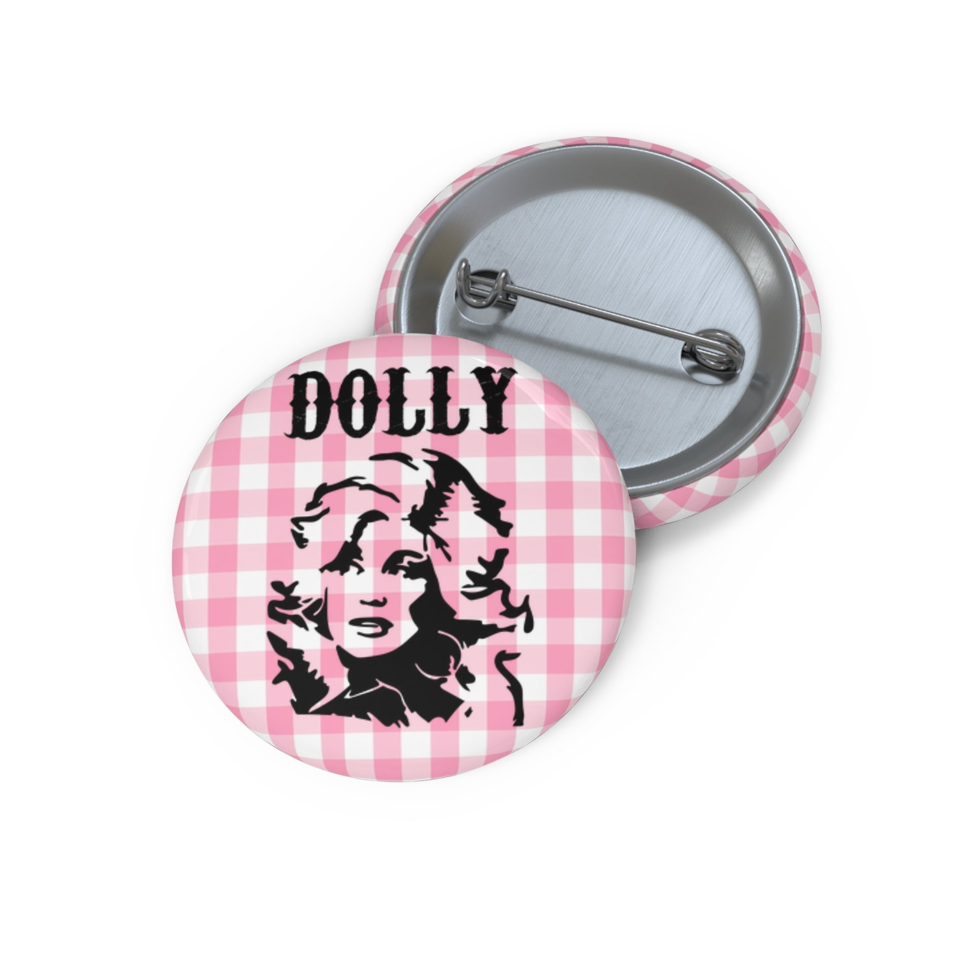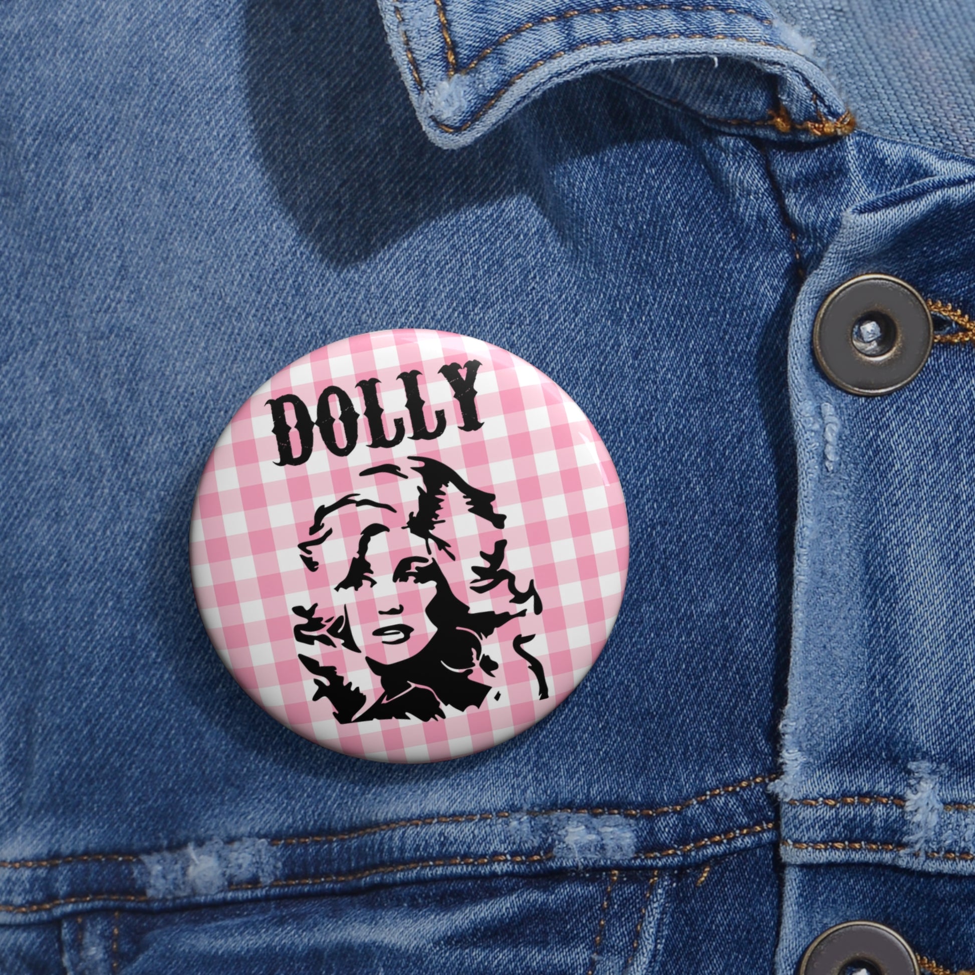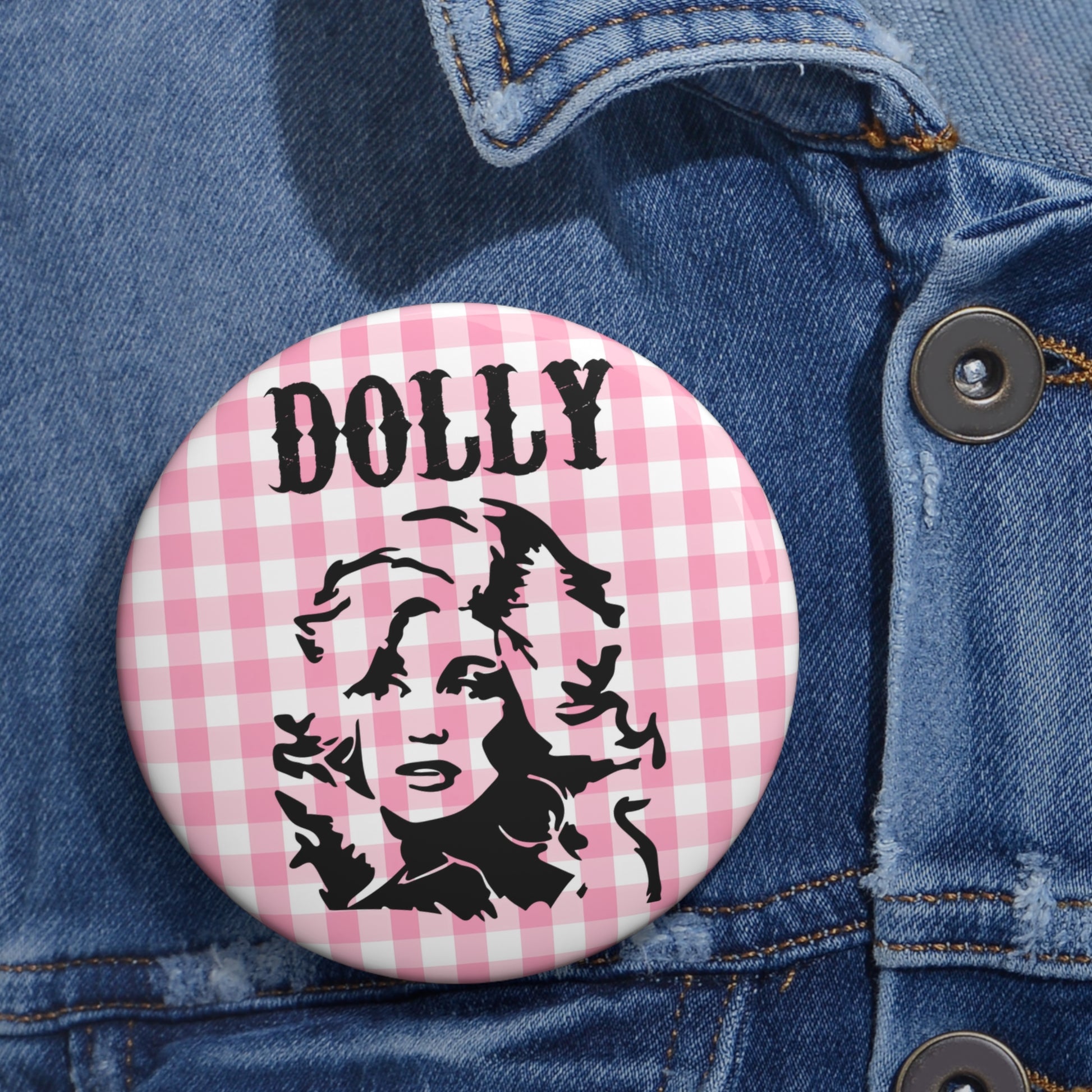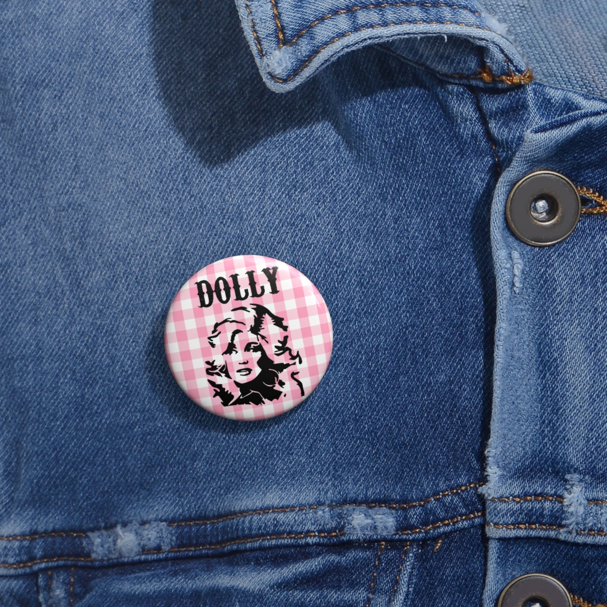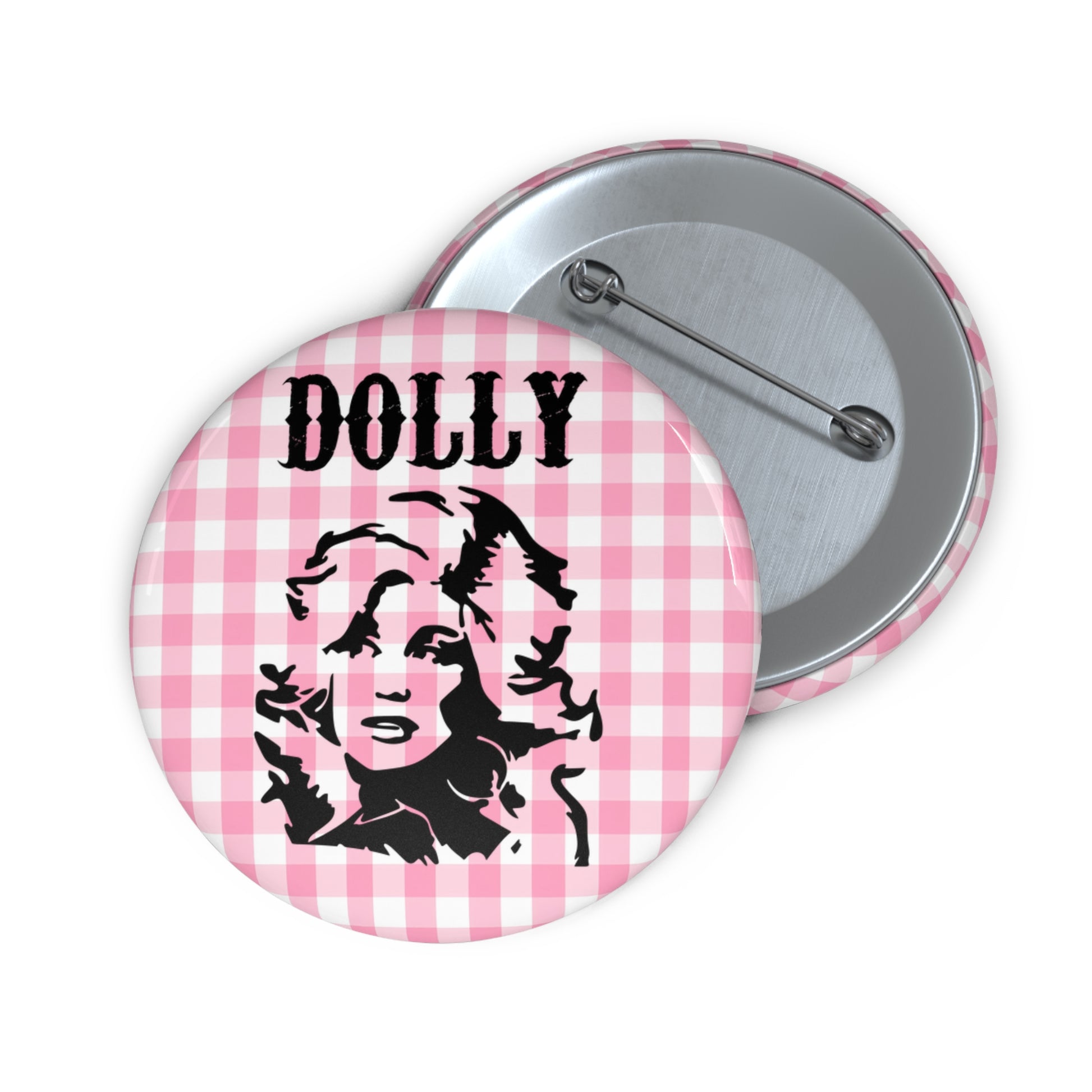 Dolly Portrait Pink Checkerboard Custom Pin Buttons