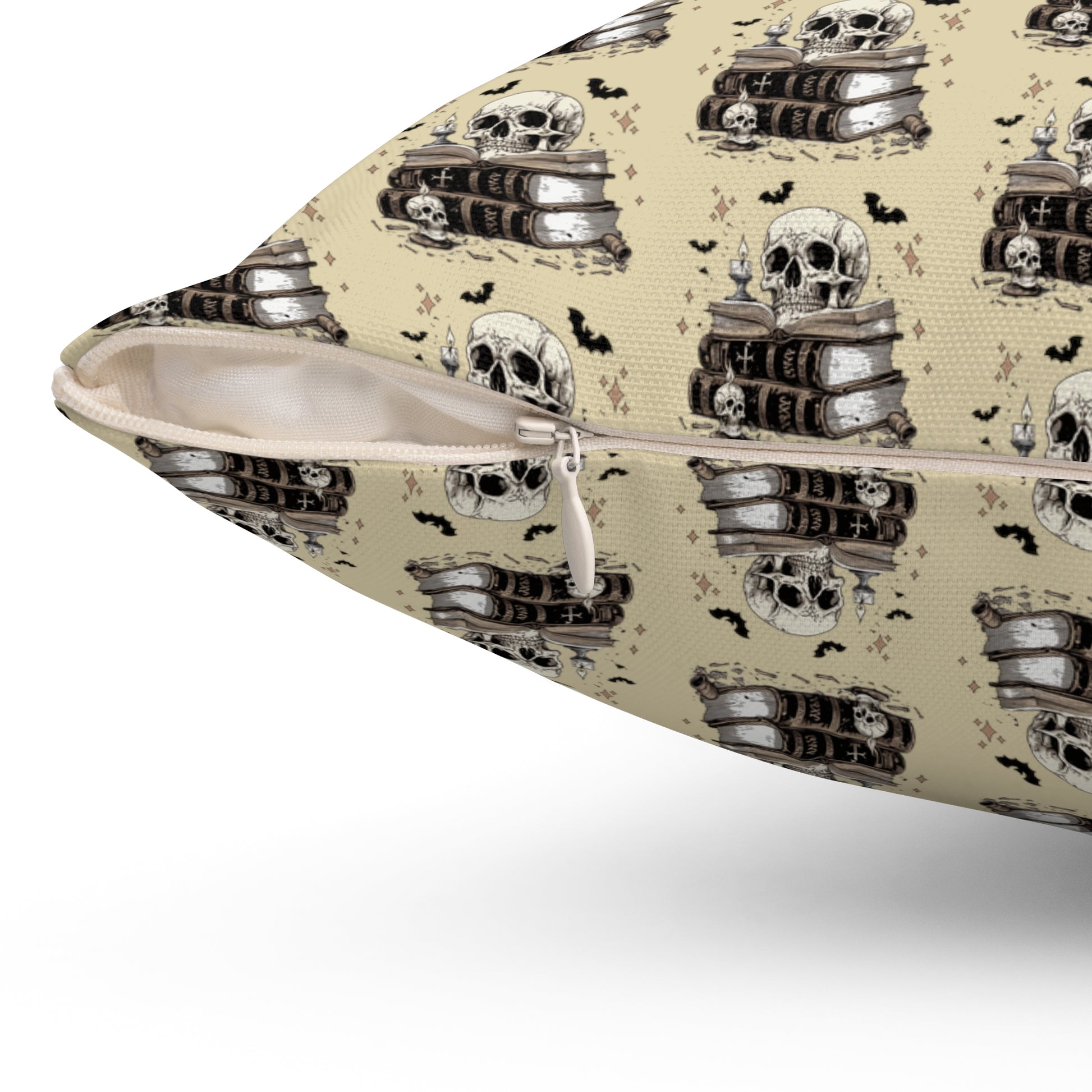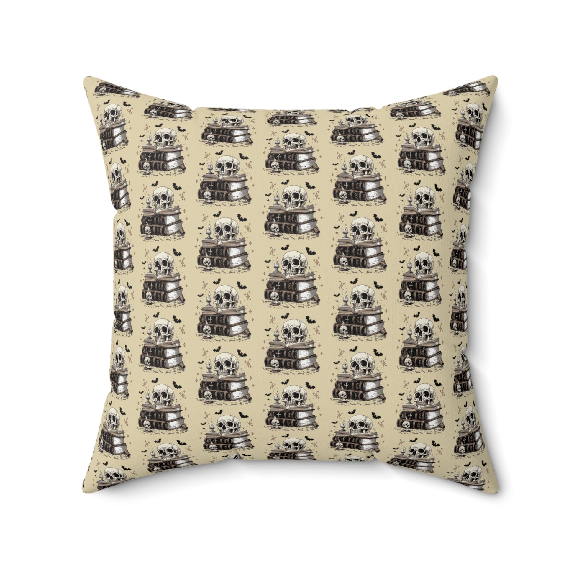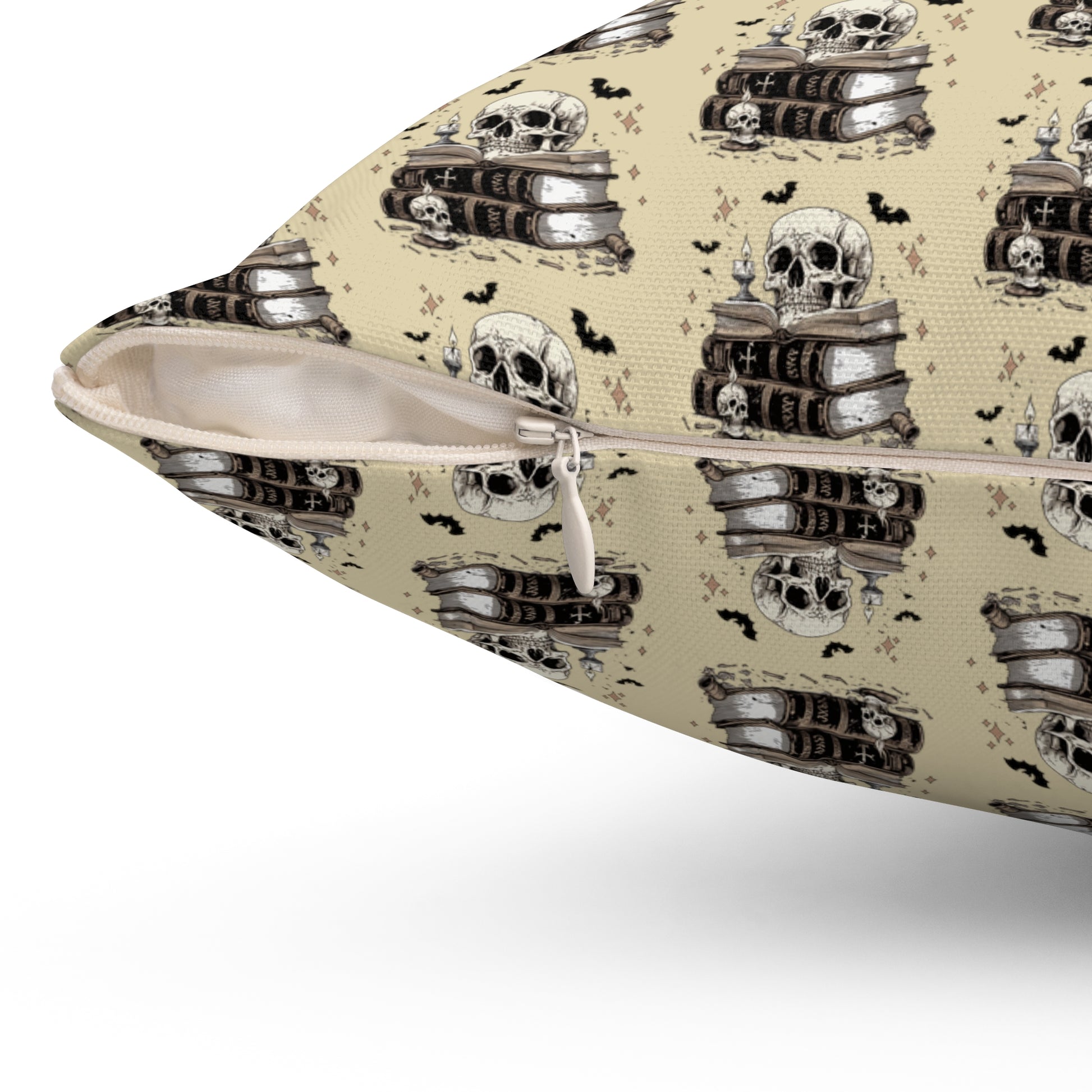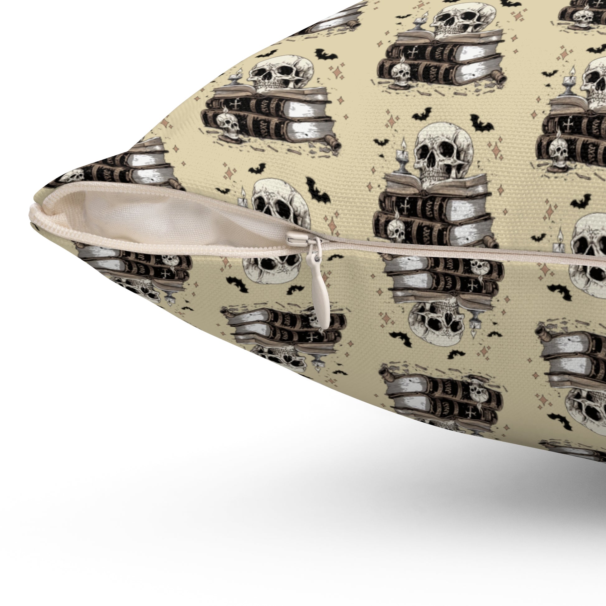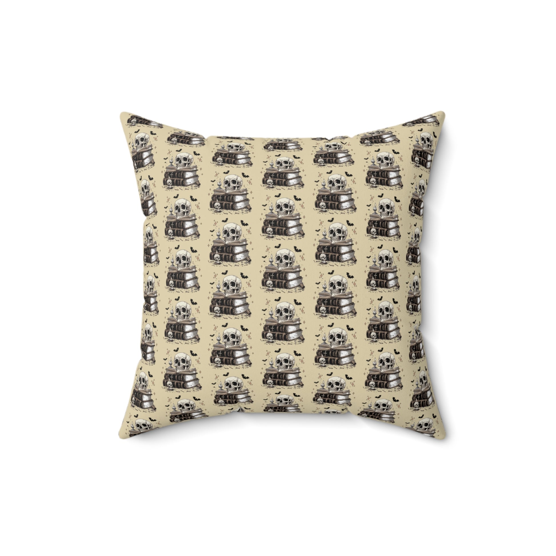 Creepy Skeleton Book Stack Pattern Fall/ Halloween Spun Polyester Square Pillow