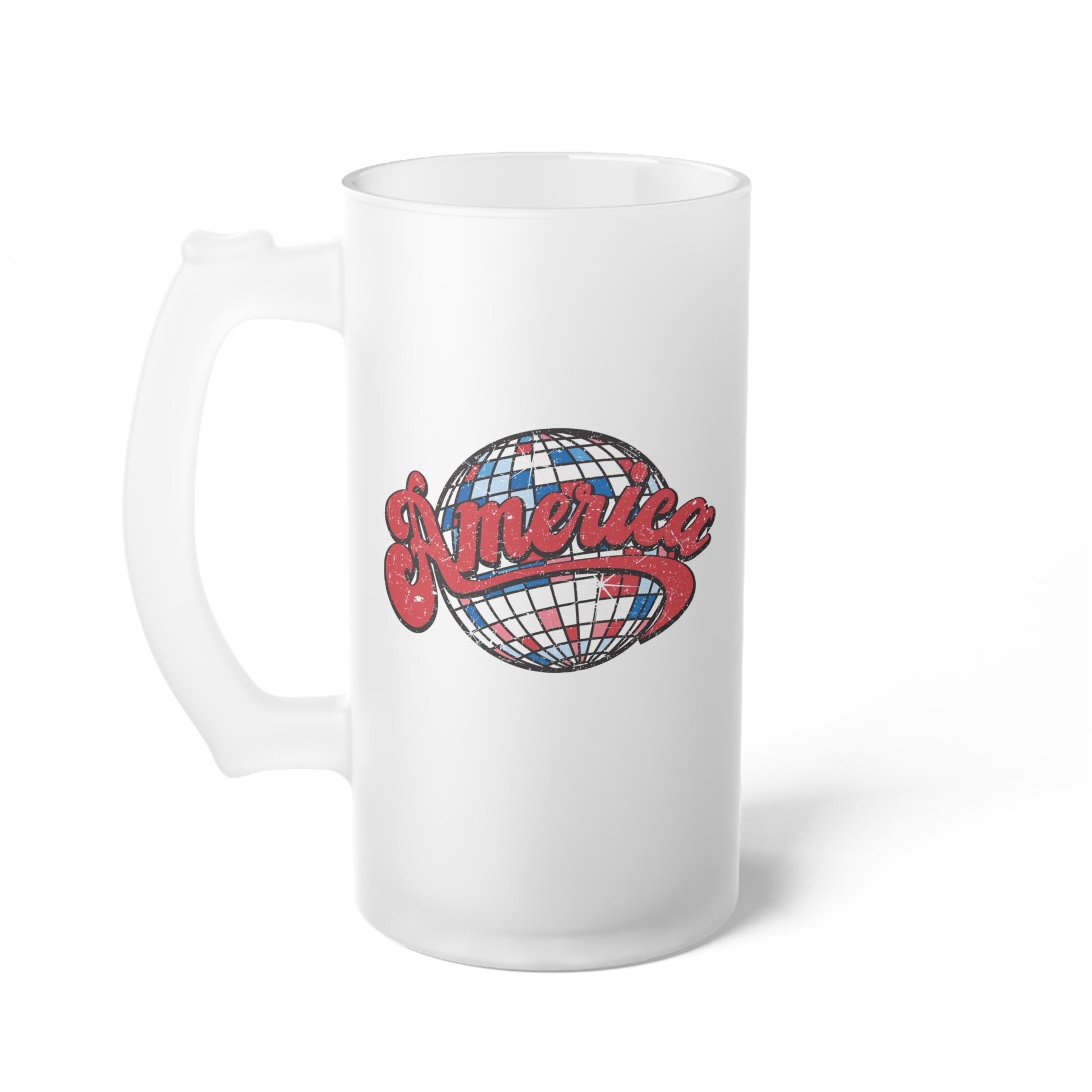 Disco Ball America /United States / USA/ 4th of July Frosted Glass Beer Mug