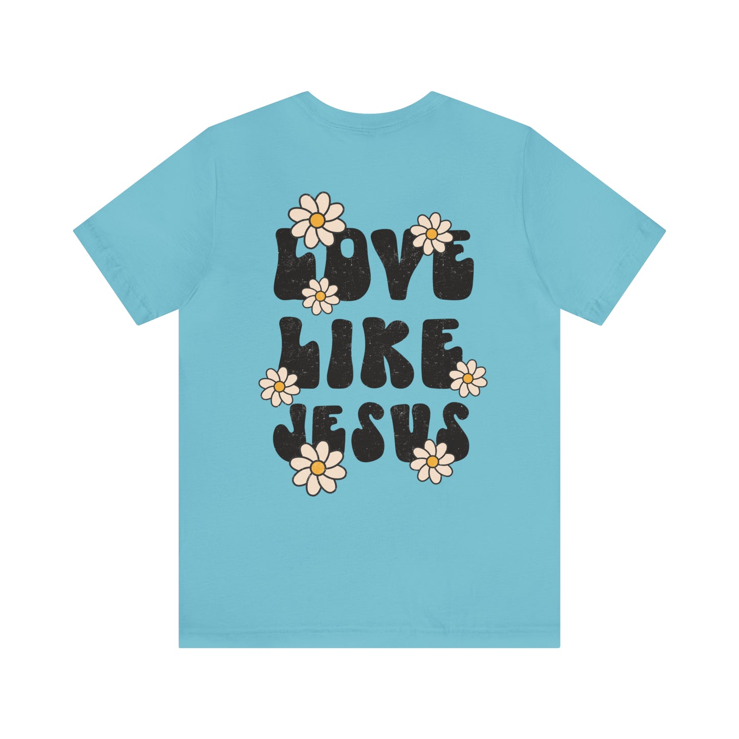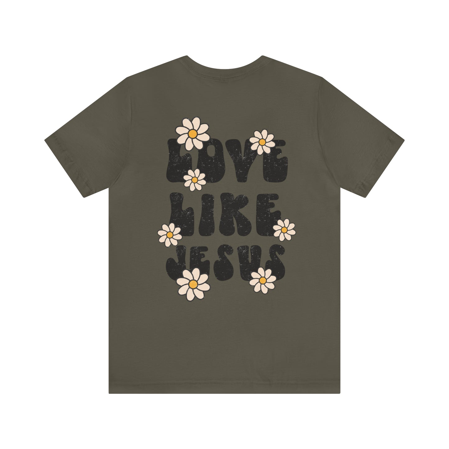 Distressed Daisy Love Like Jesus - Front and Back Design - T-Shirt