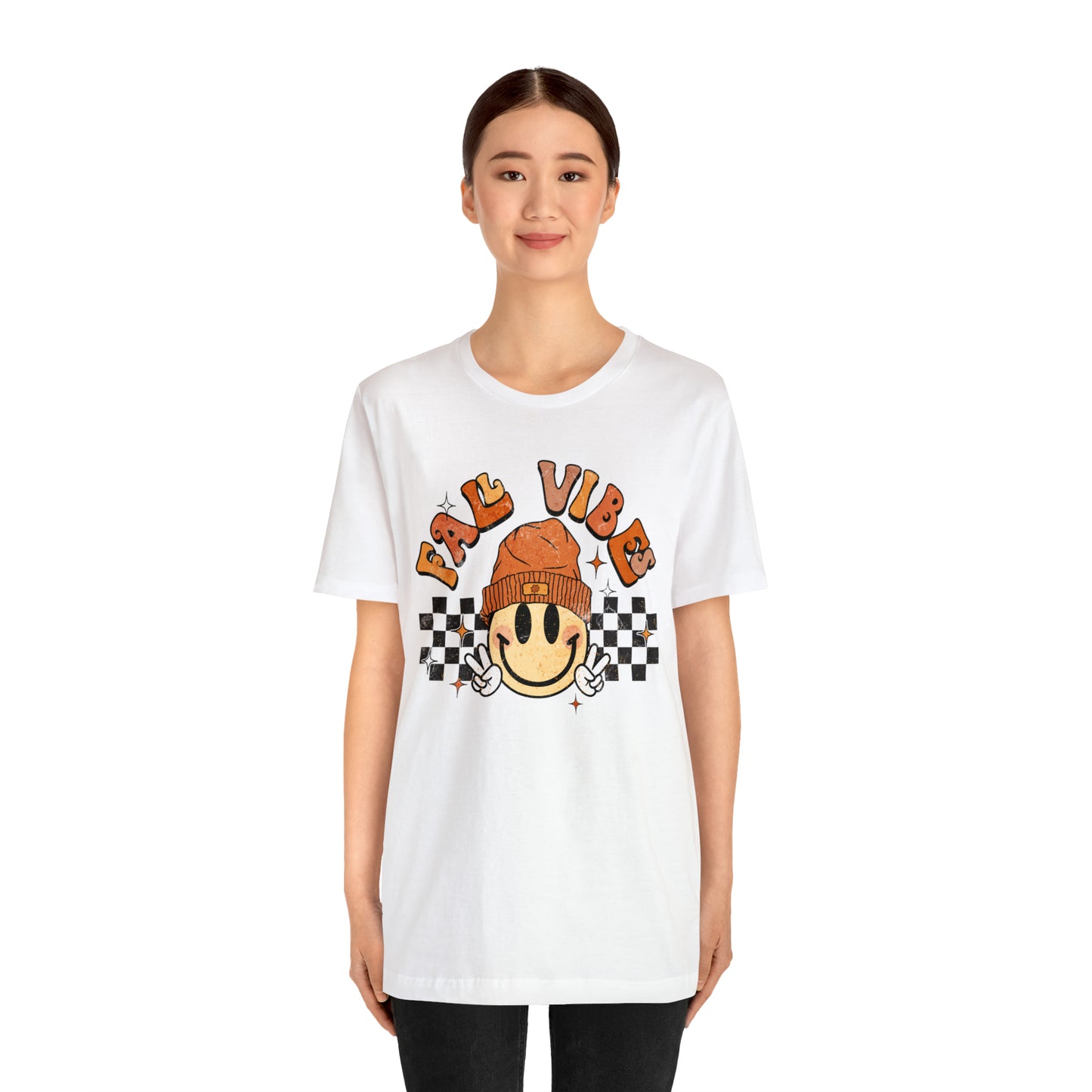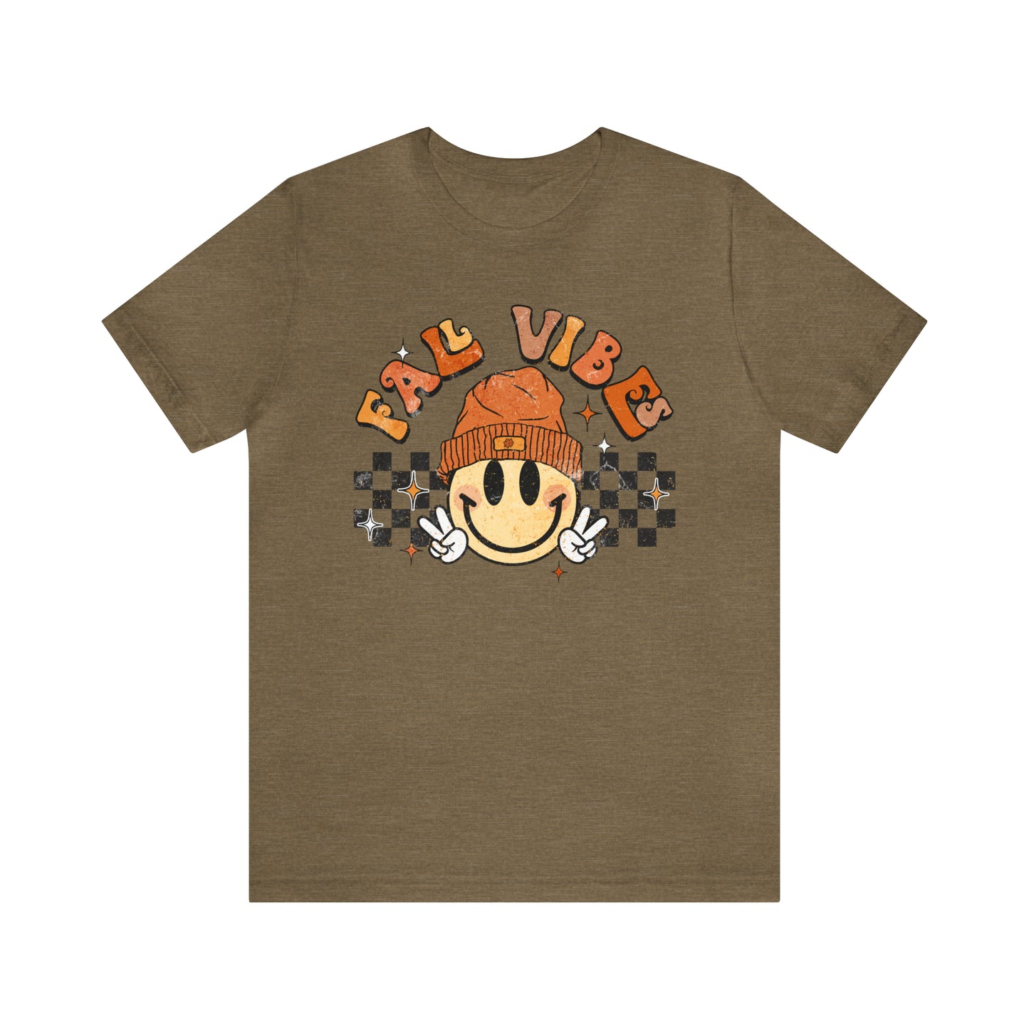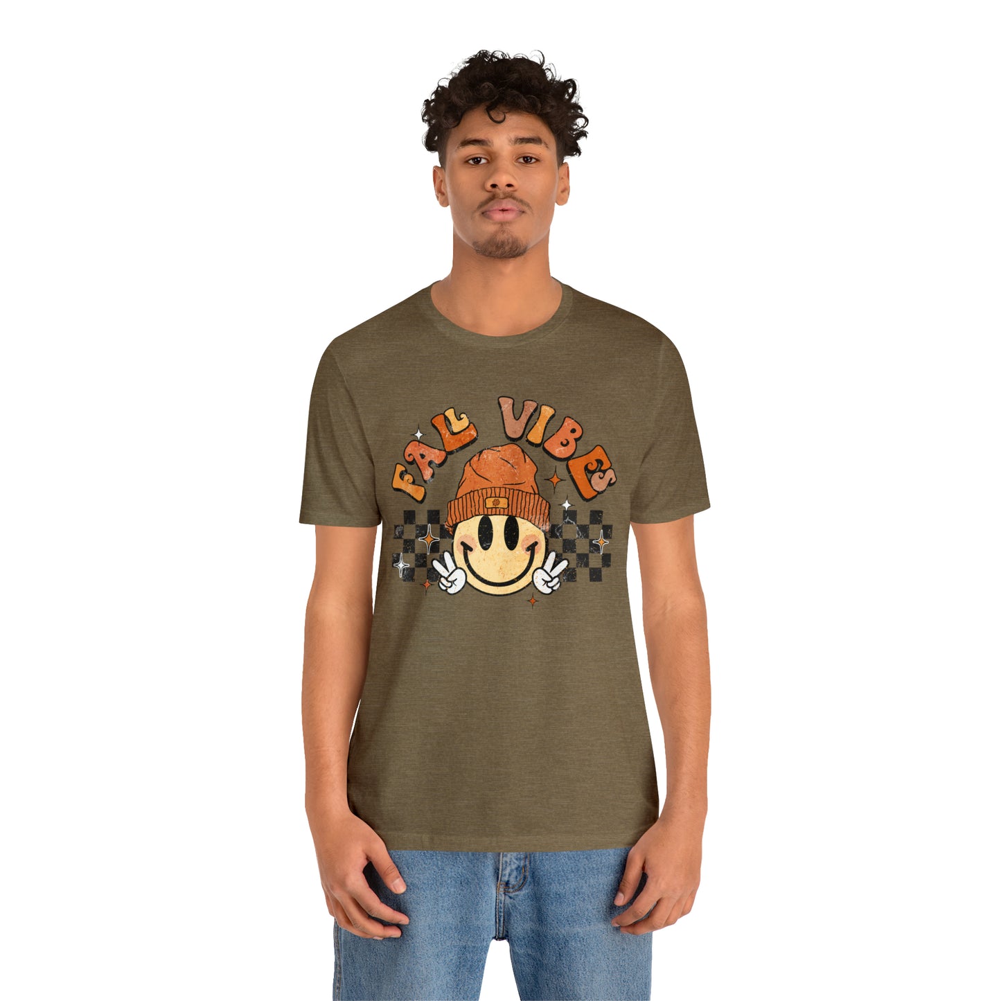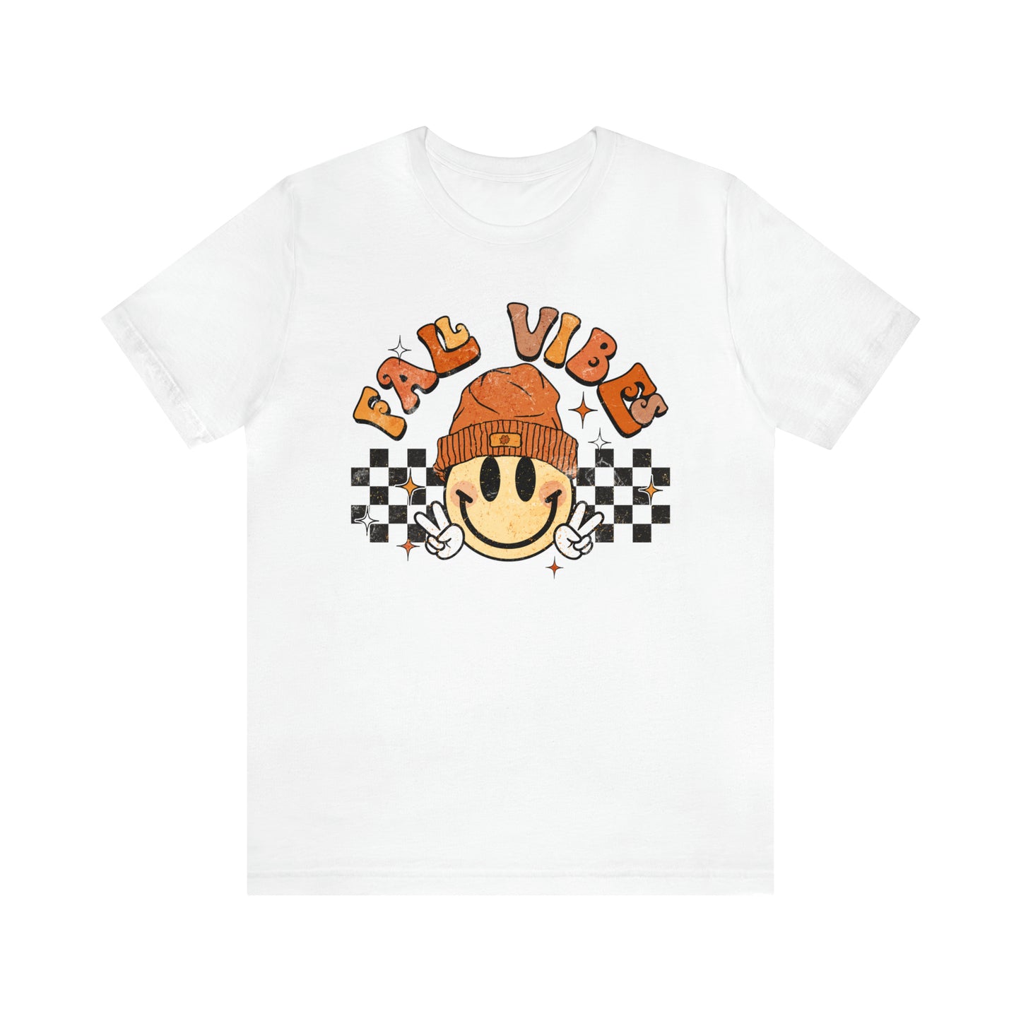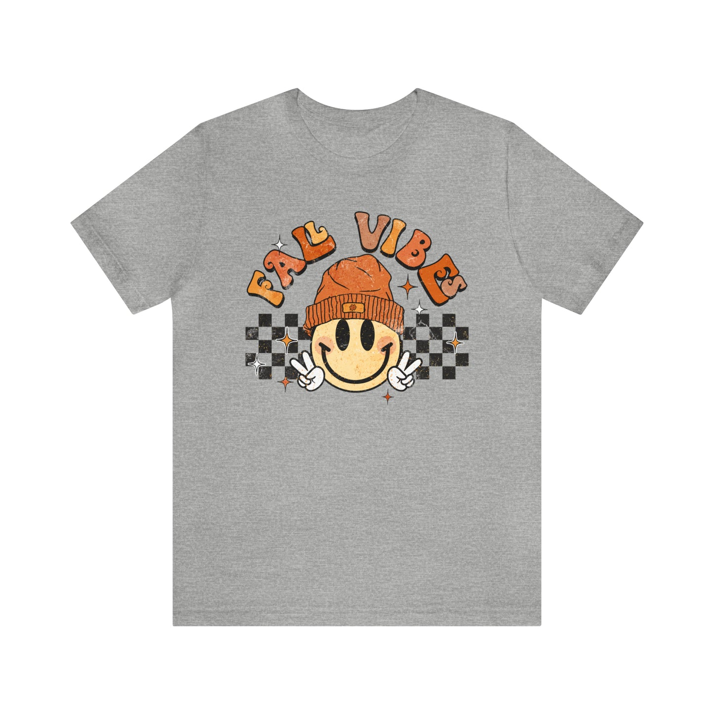 It's Fall Time! Everyone needs as fun Fall shirt to wear in September and October. This cute Halloween shirt is a fun design that will bring in lots of complitments with the Distressed Halloween Fall Vibes Smiley Face with Beanie and Peace Sign T-Shirt theme. Pair with a super fun flannel to amp up your outfit. This Halloween shirt makes an awesome gift too.