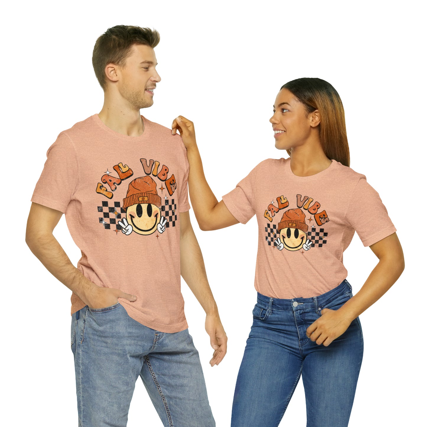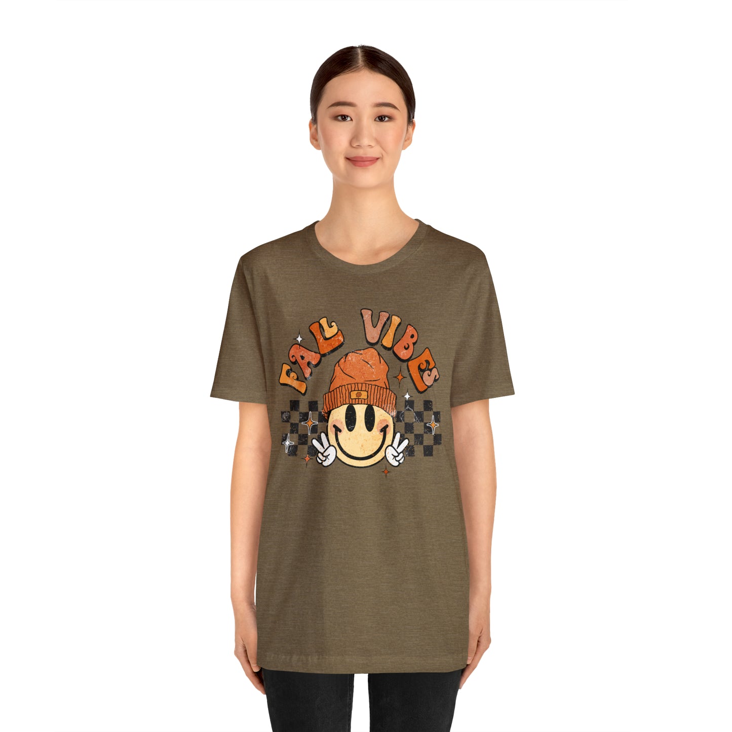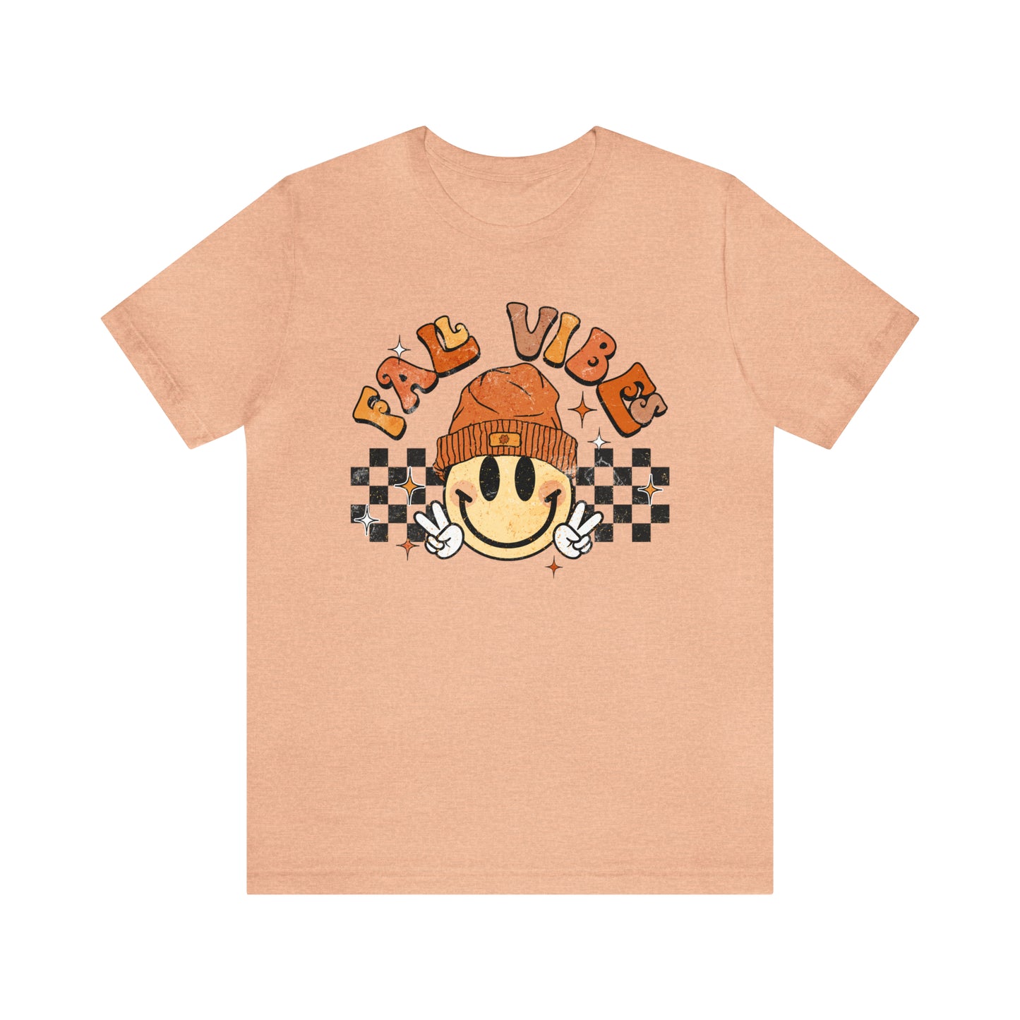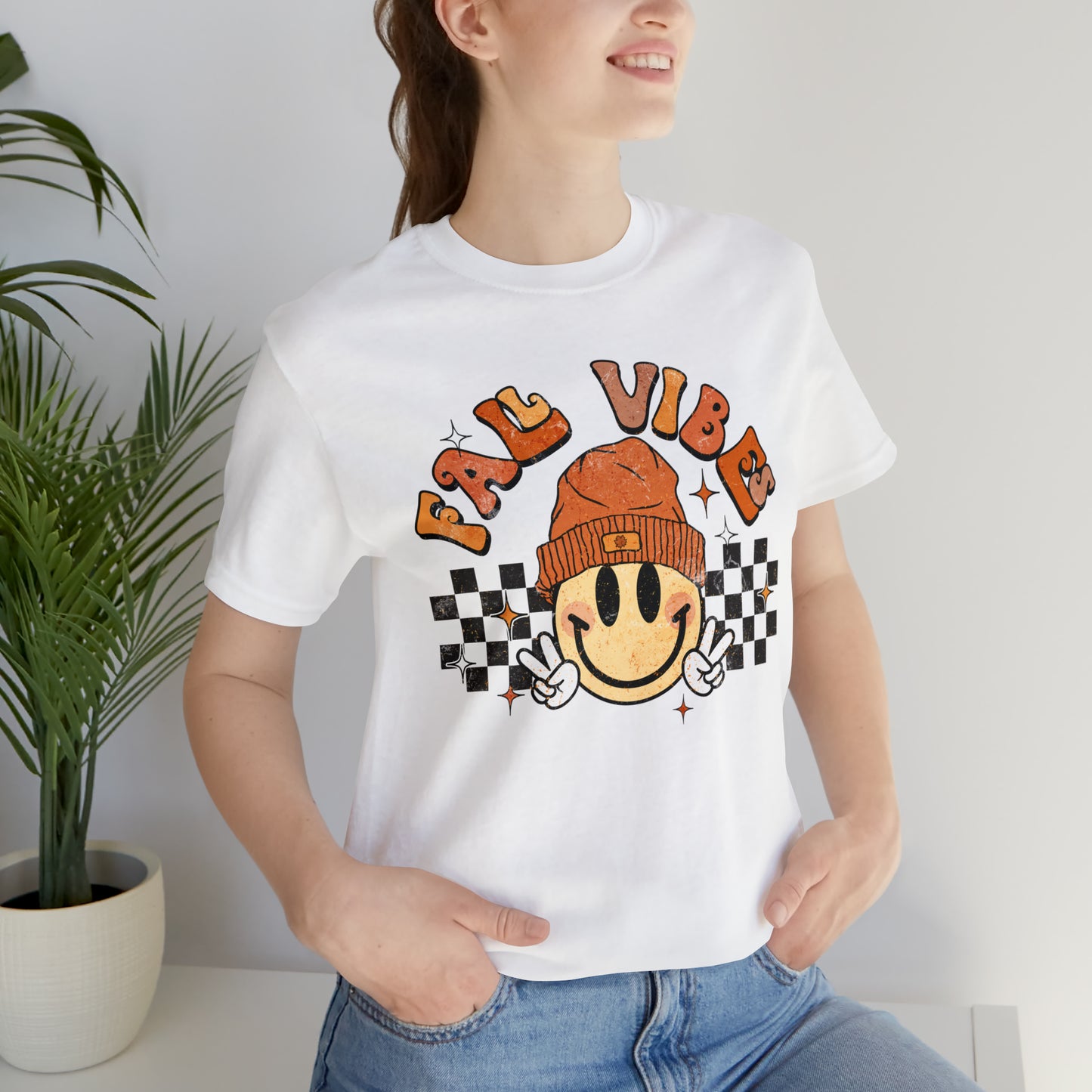 It's Fall Time! Everyone needs as fun Fall shirt to wear in September and October. This cute Halloween shirt is a fun design that will bring in lots of complitments with the Distressed Halloween Fall Vibes Smiley Face with Beanie and Peace Sign T-Shirt theme. Pair with a super fun flannel to amp up your outfit. This Halloween shirt makes an awesome gift too.