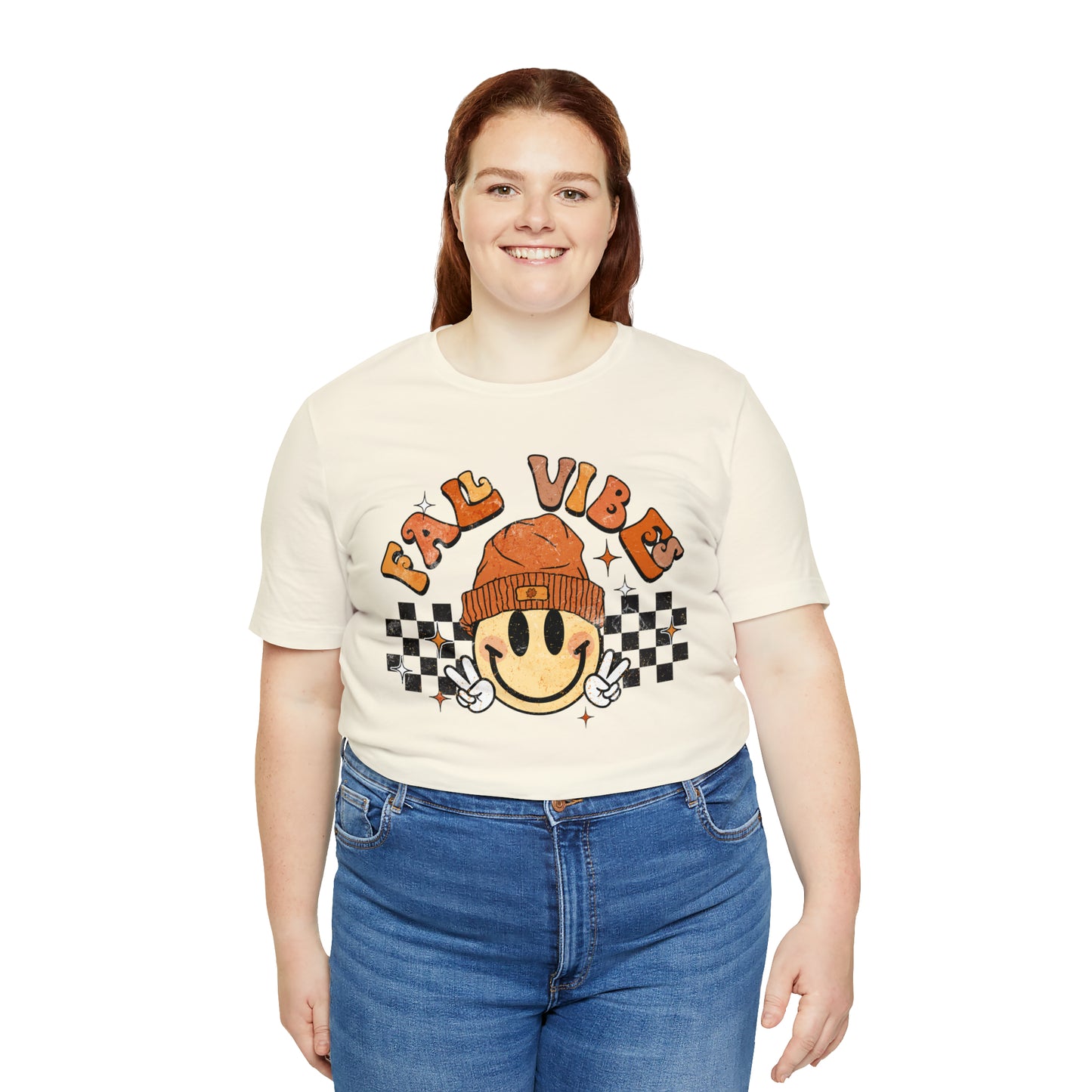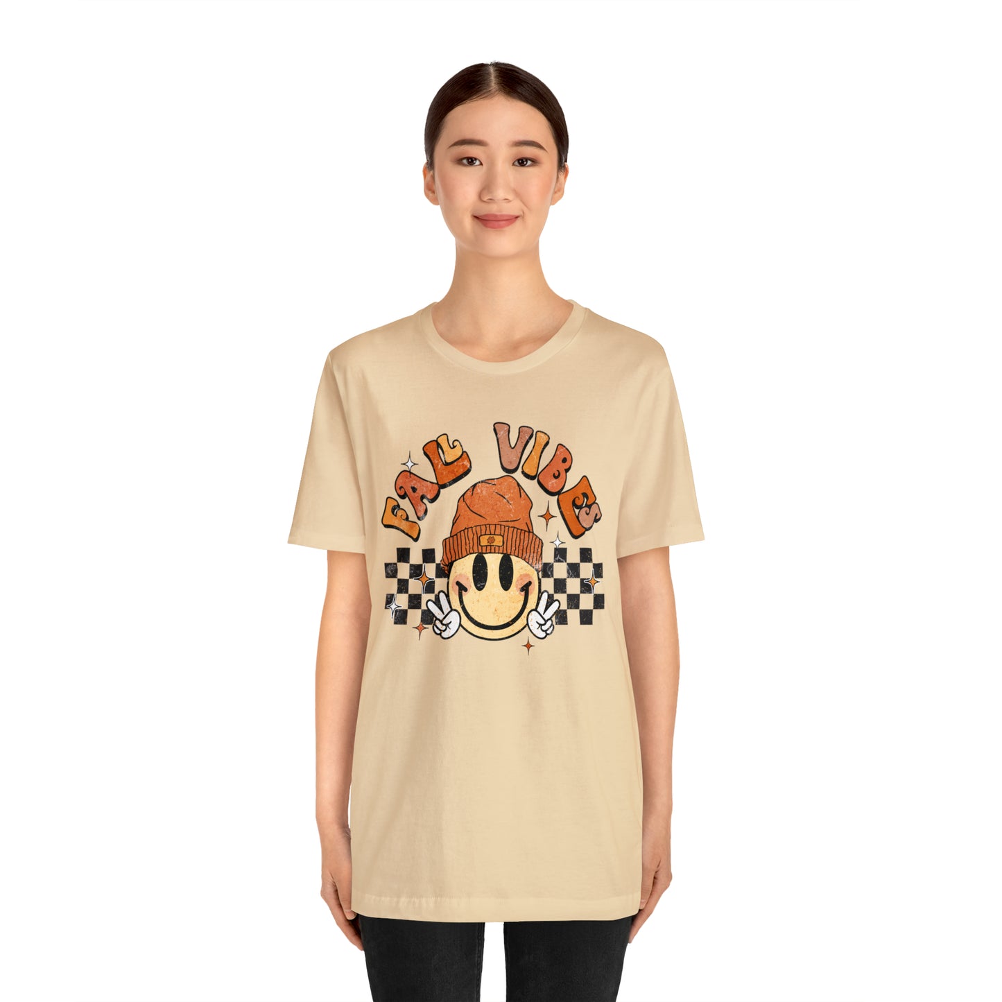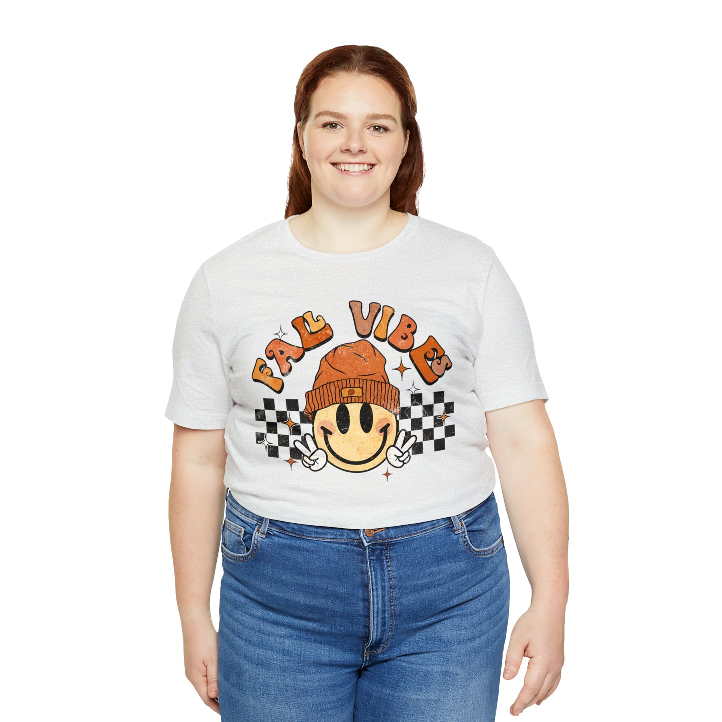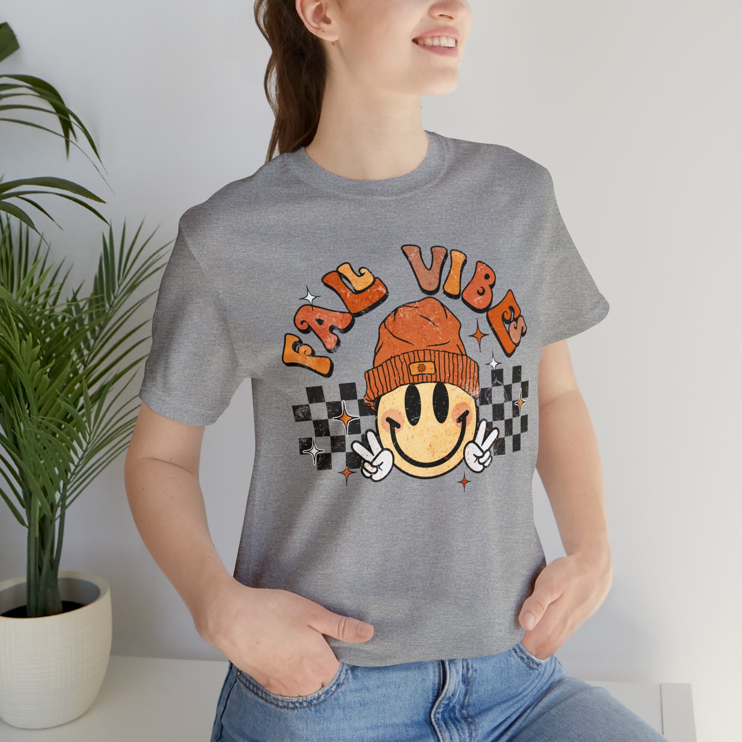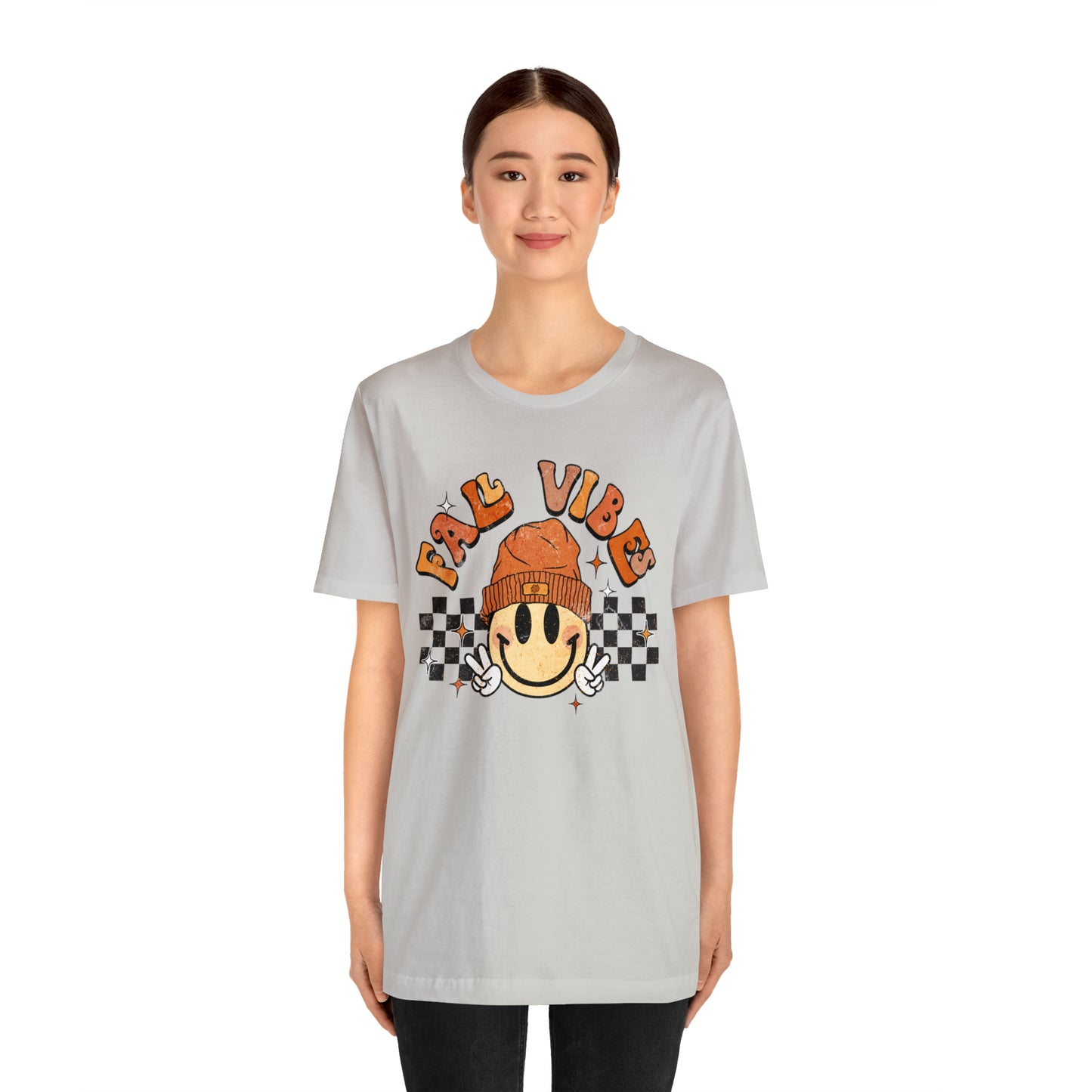 It's Fall Time! Everyone needs as fun Fall shirt to wear in September and October. This cute Halloween shirt is a fun design that will bring in lots of complitments with the Distressed Halloween Fall Vibes Smiley Face with Beanie and Peace Sign T-Shirt theme. Pair with a super fun flannel to amp up your outfit. This Halloween shirt makes an awesome gift too.