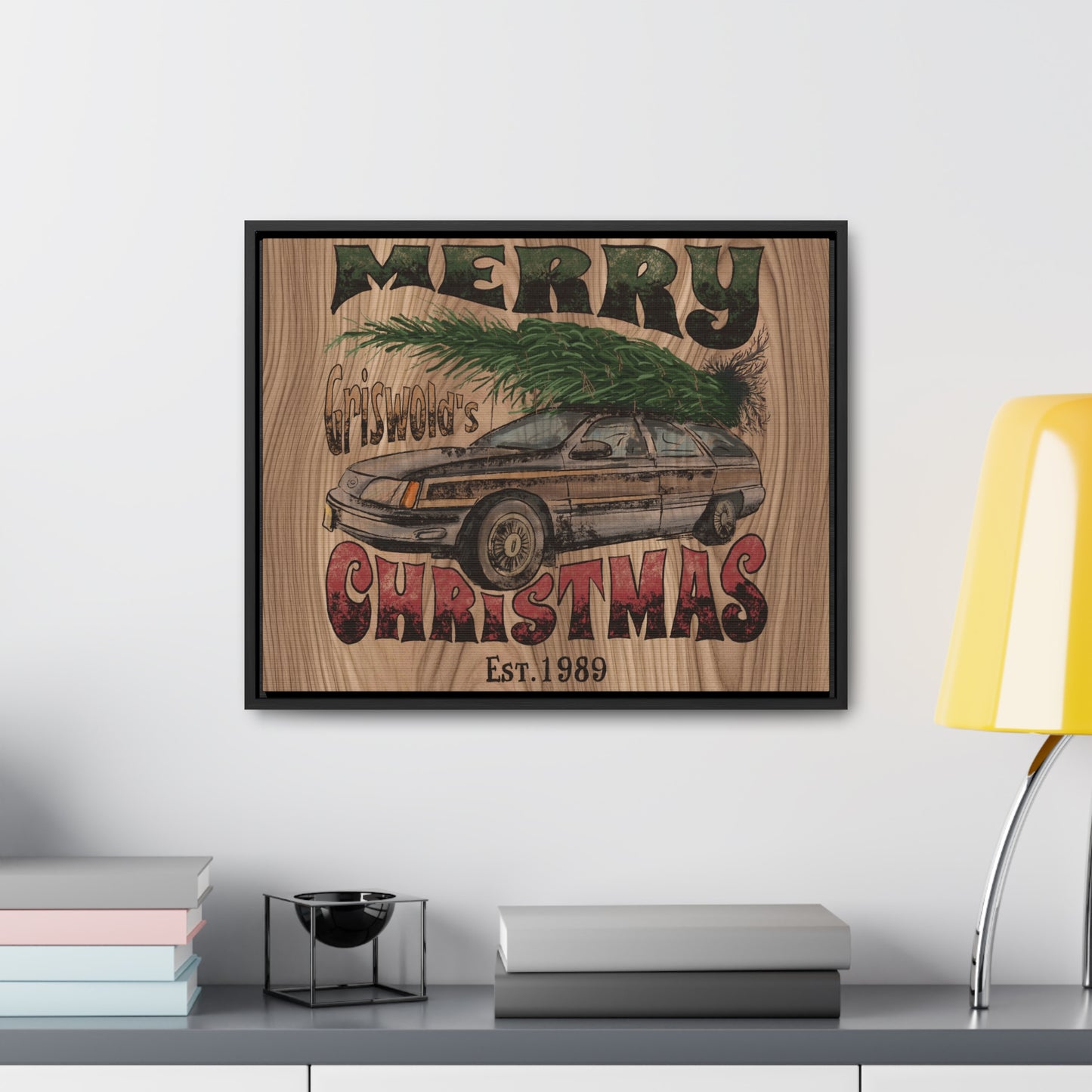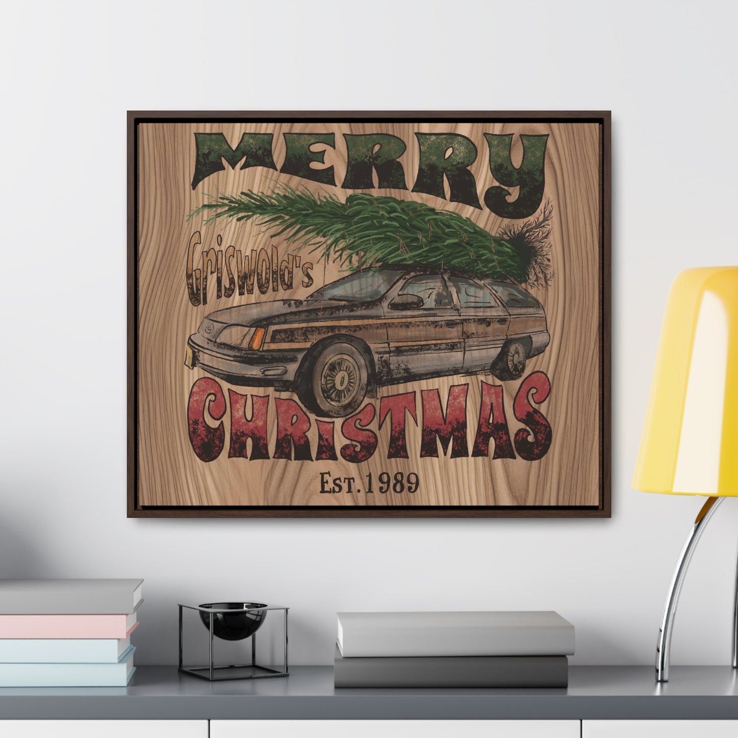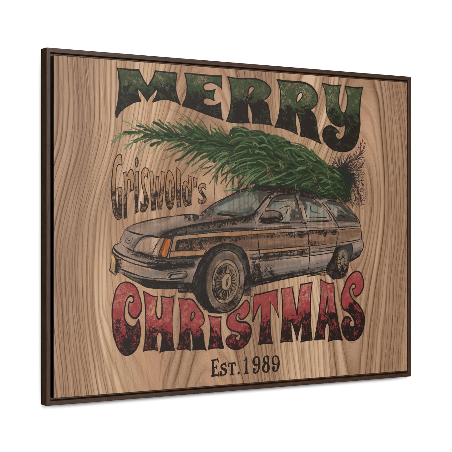 Distressed Merry Griswold Christmas Tree Station Wagon Holiday Gallery Canvas Wraps, Horizontal Frame
