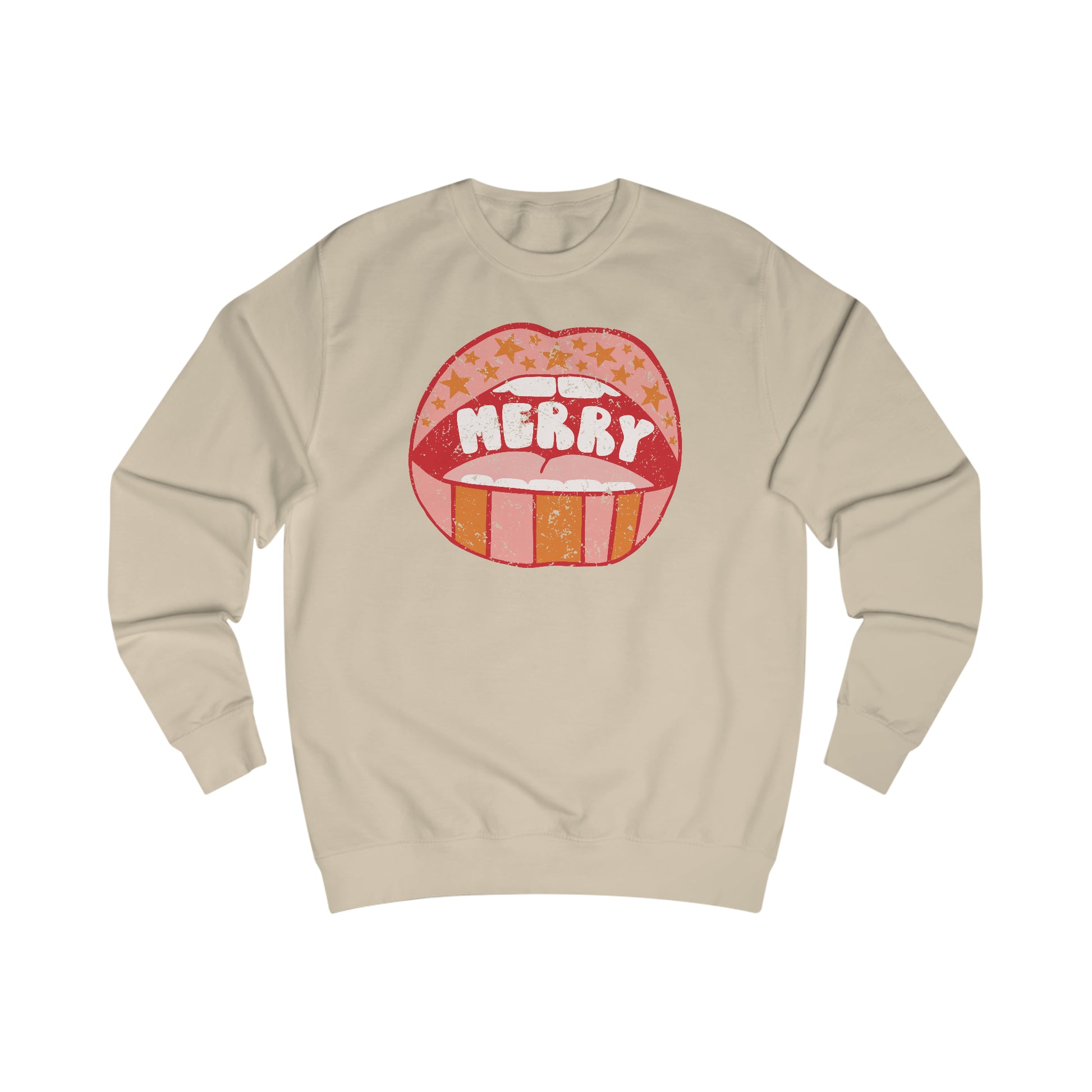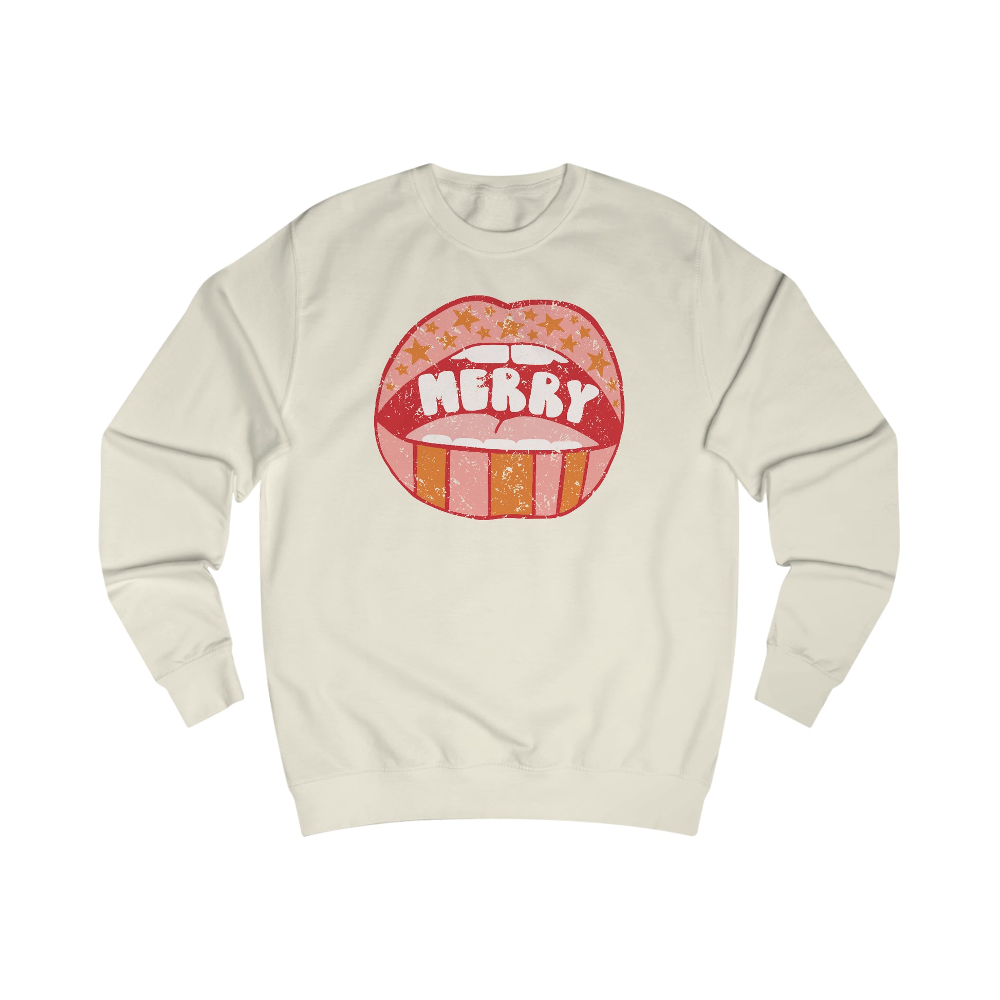 Merry Christmas Lips Sweatshirt! Ideal for any situation, a unisex heavy blend crewneck sweatshirt is pure comfort. These garments are made from polyester and cotton. This combination helps designs come out looking fresh and beautiful. The collar is ribbed knit, so it retains its shape even after washing. There are no itchy side seams on these sweaters.