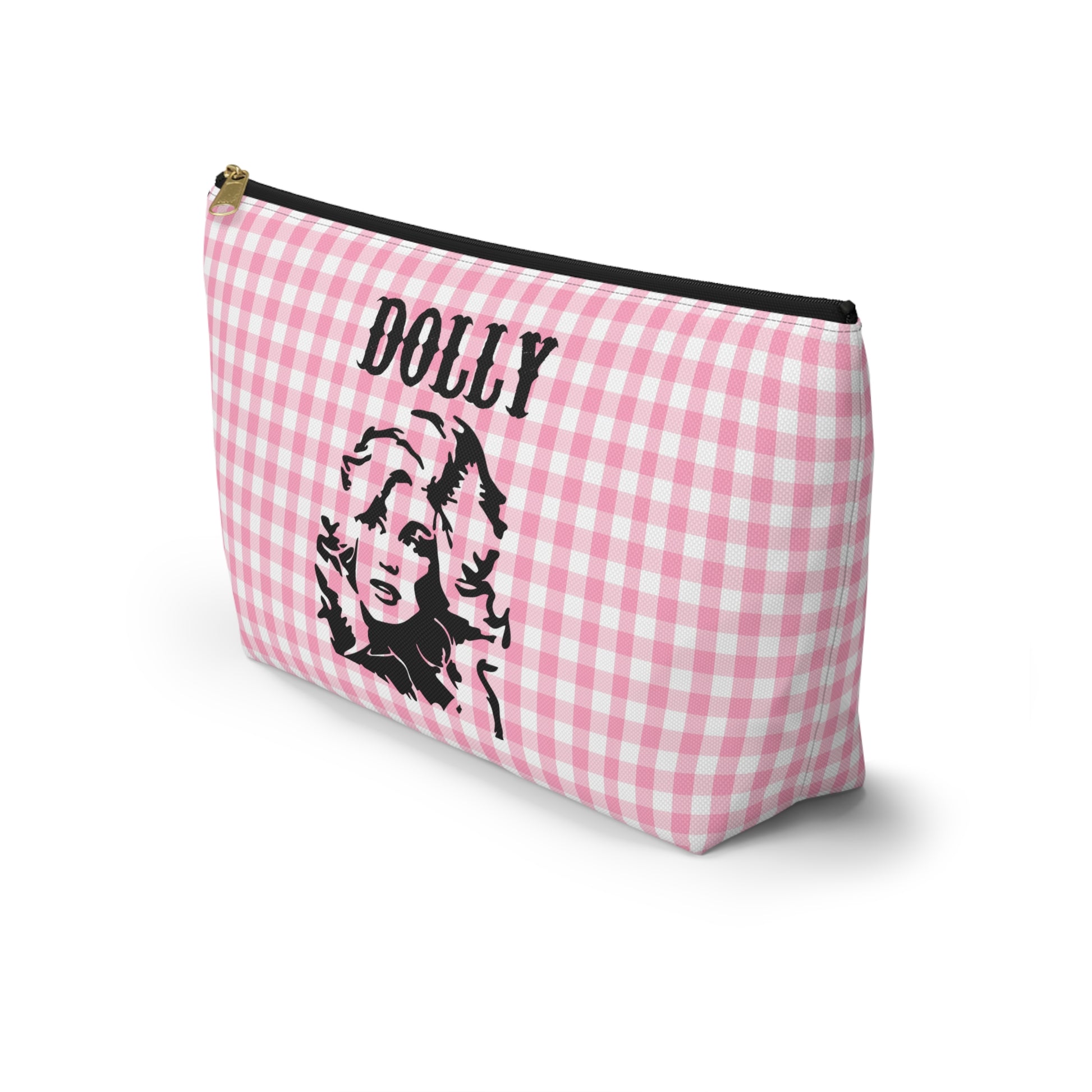 Dolly Portrait Pink Checkerboard Accessory Pouch w T-bottom
