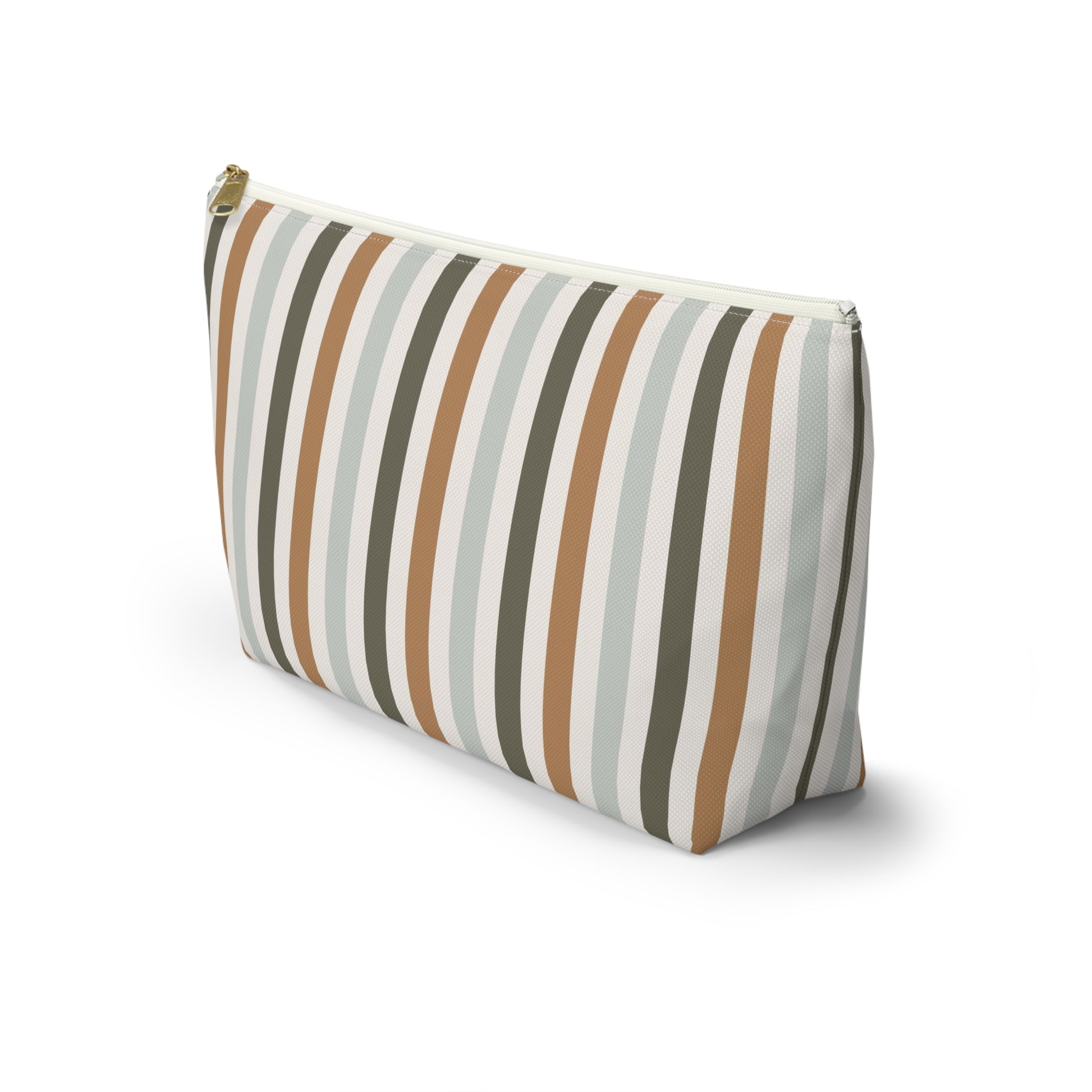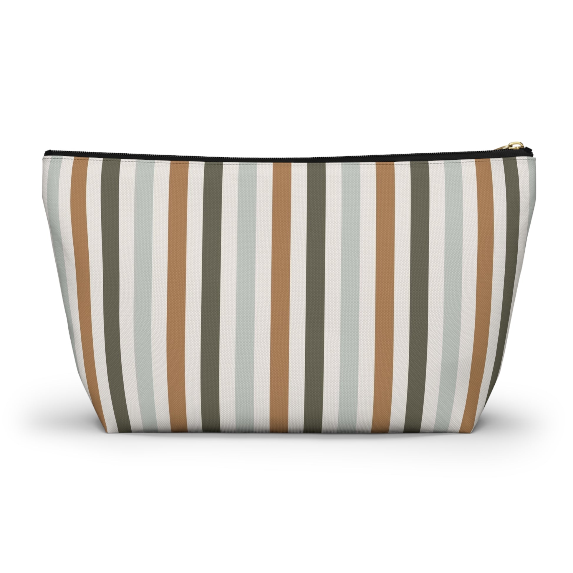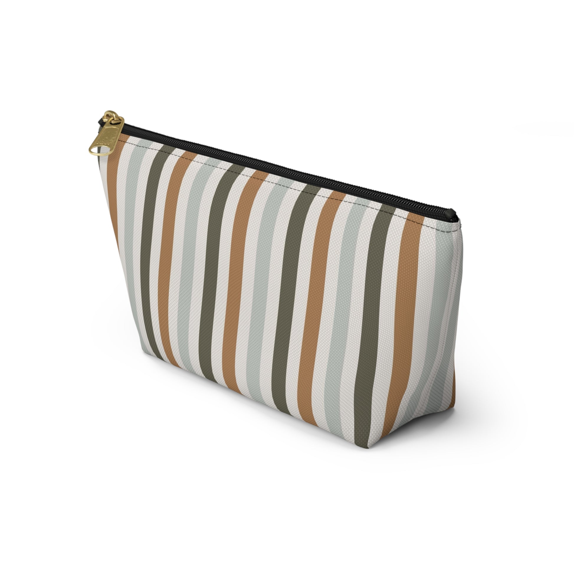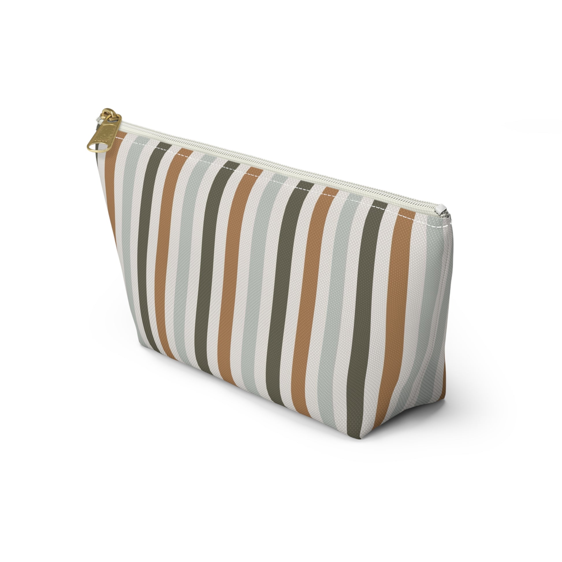 Fall Retro Brown Striped Print Design Accessory Pouch w T-bottom