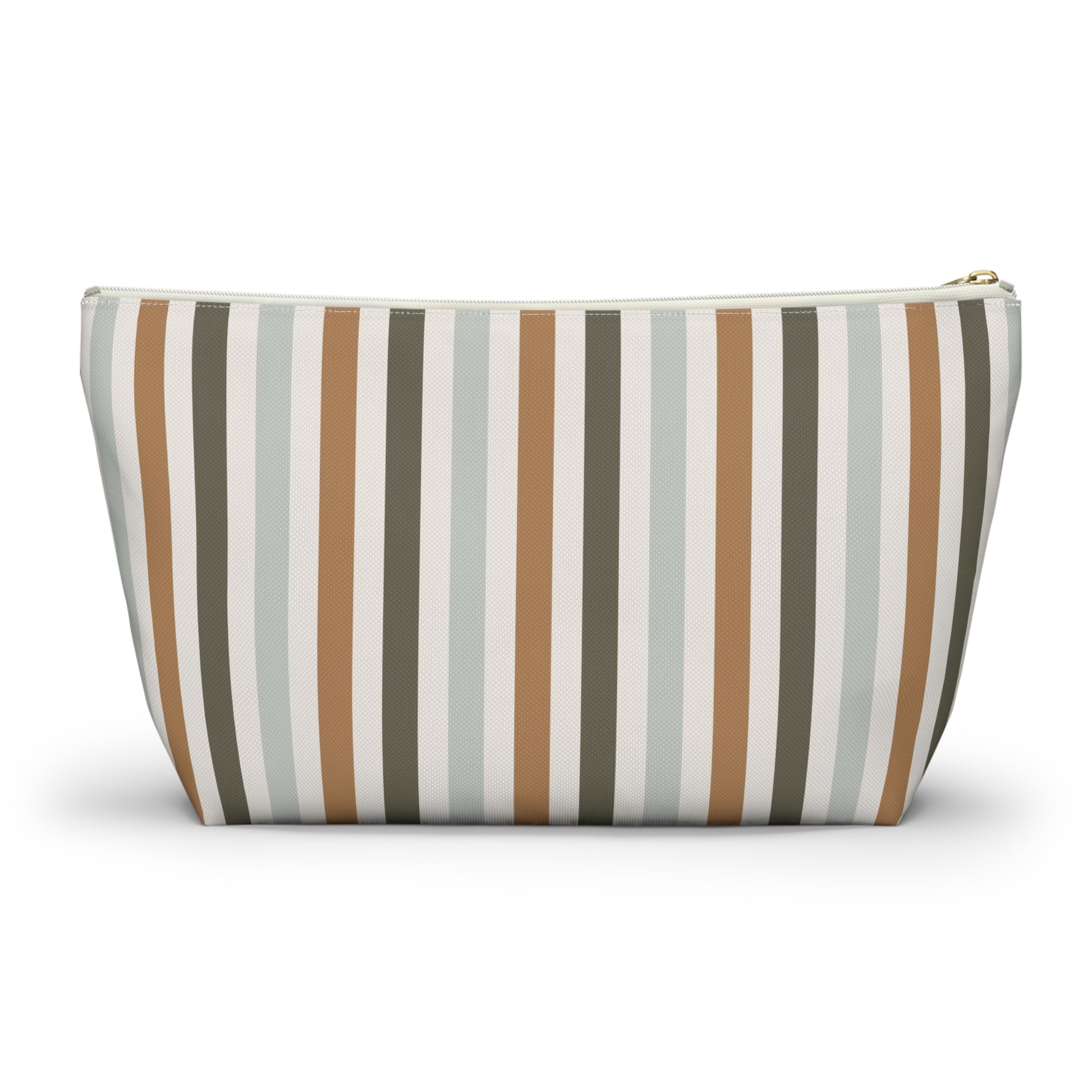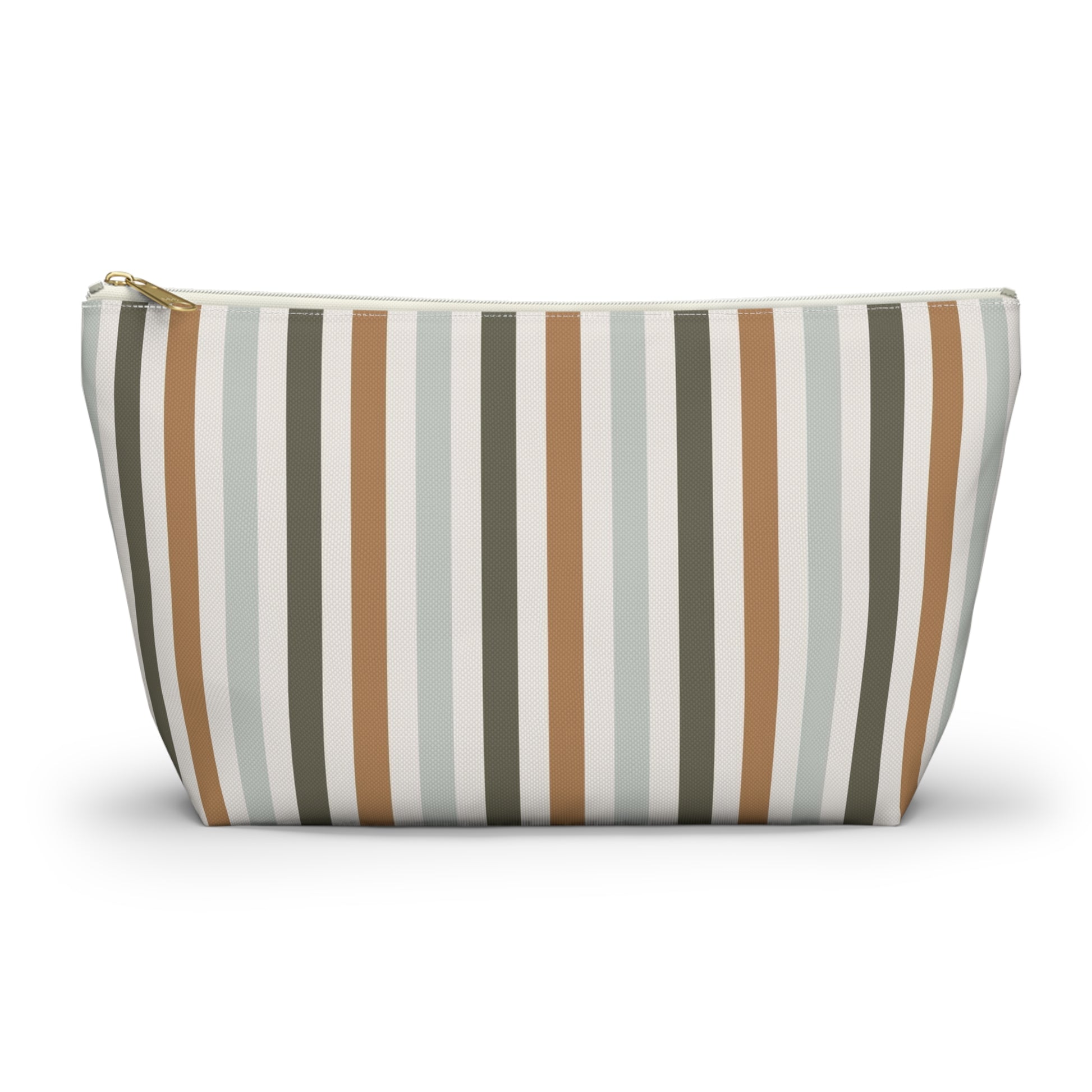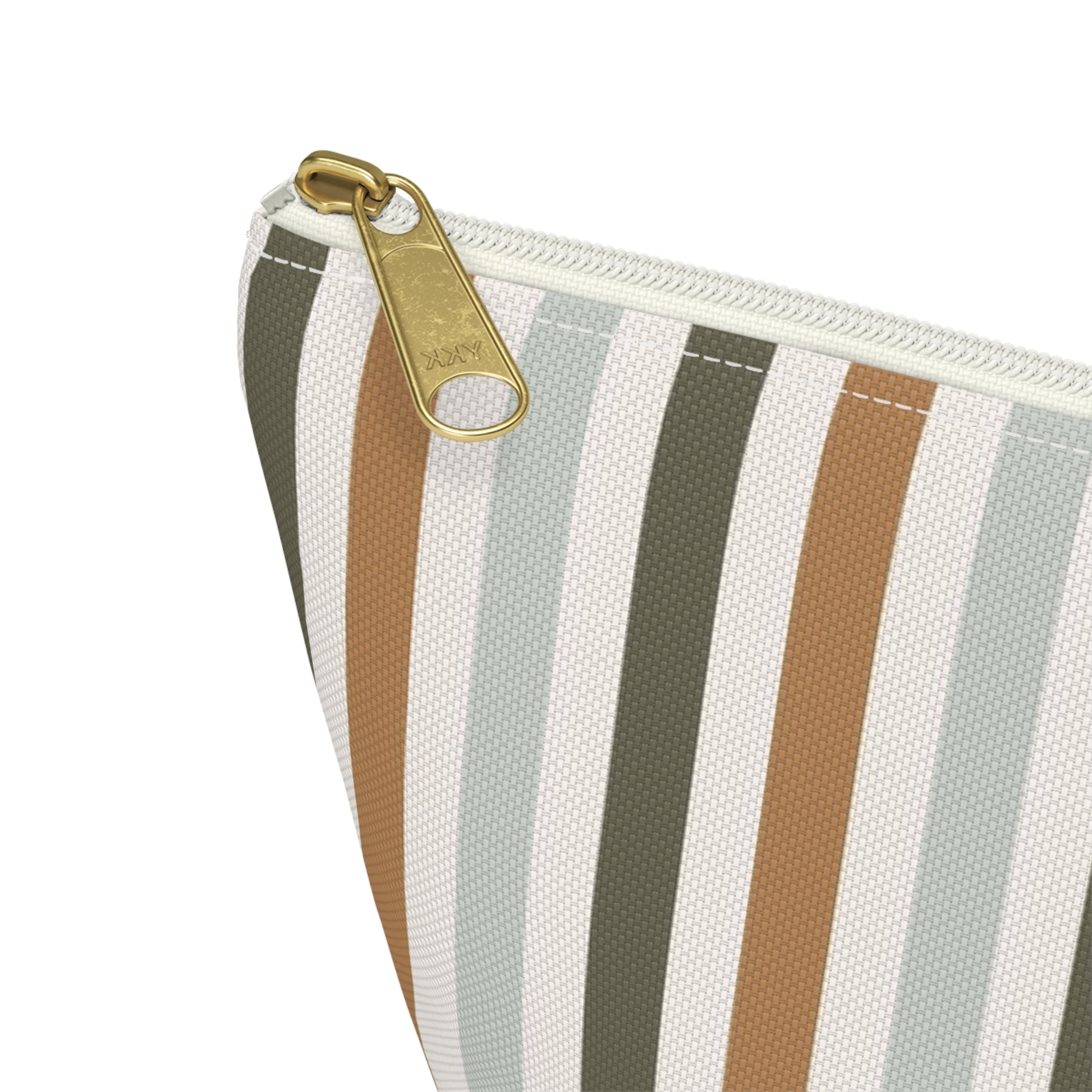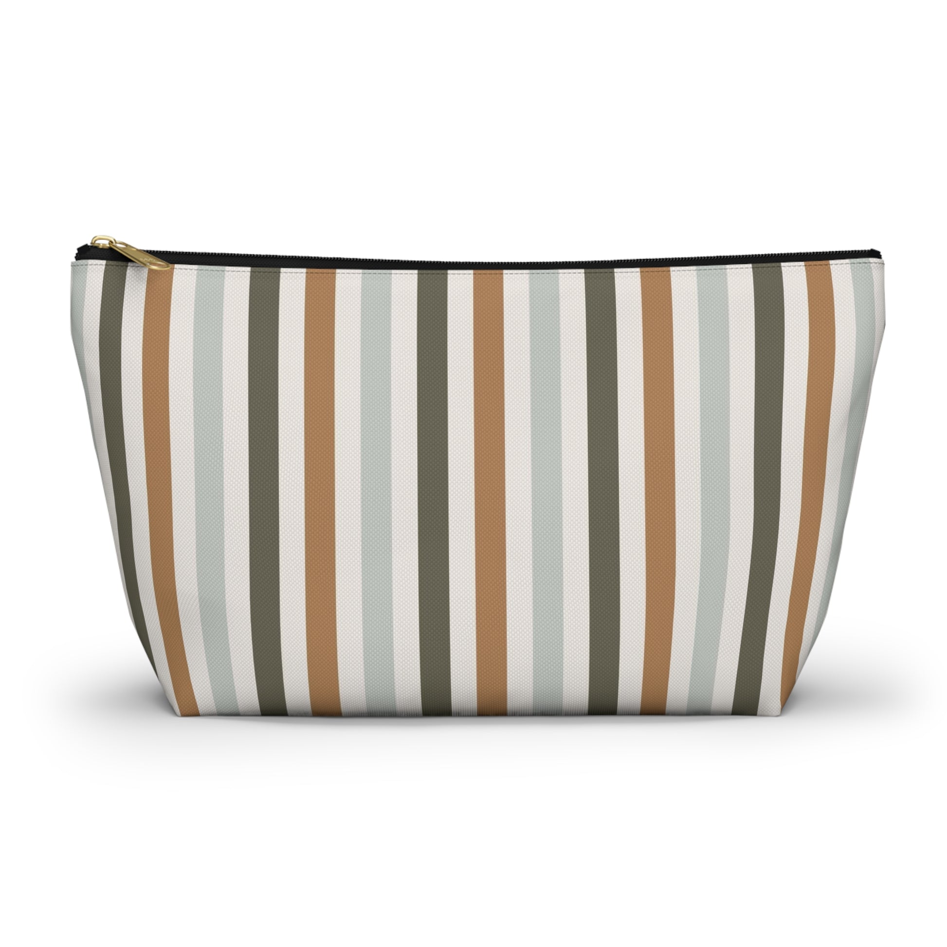 Fall Retro Brown Striped Print Design Accessory Pouch w T-bottom