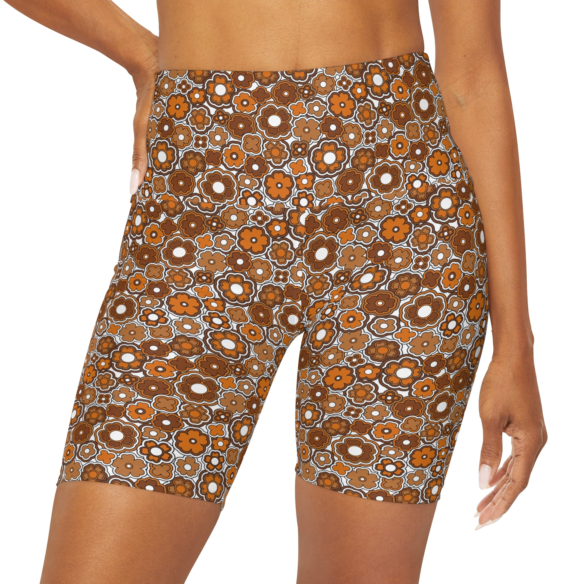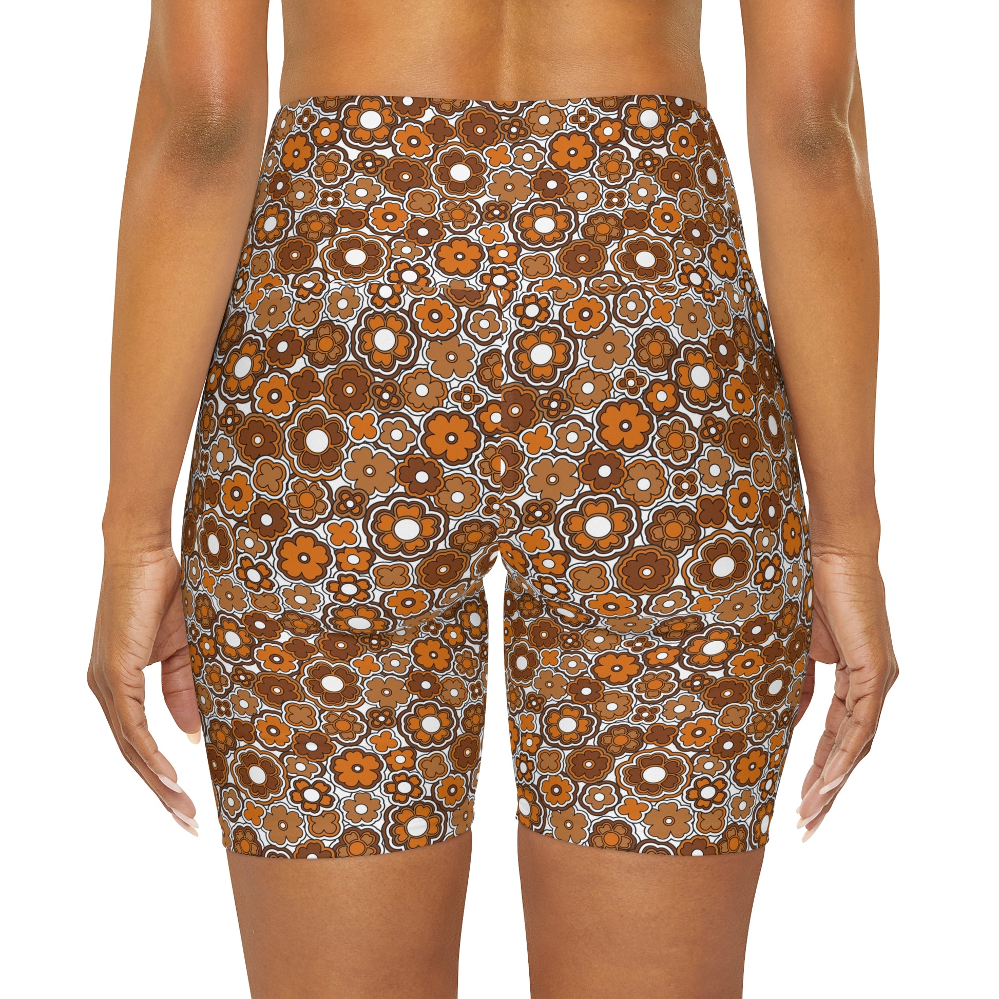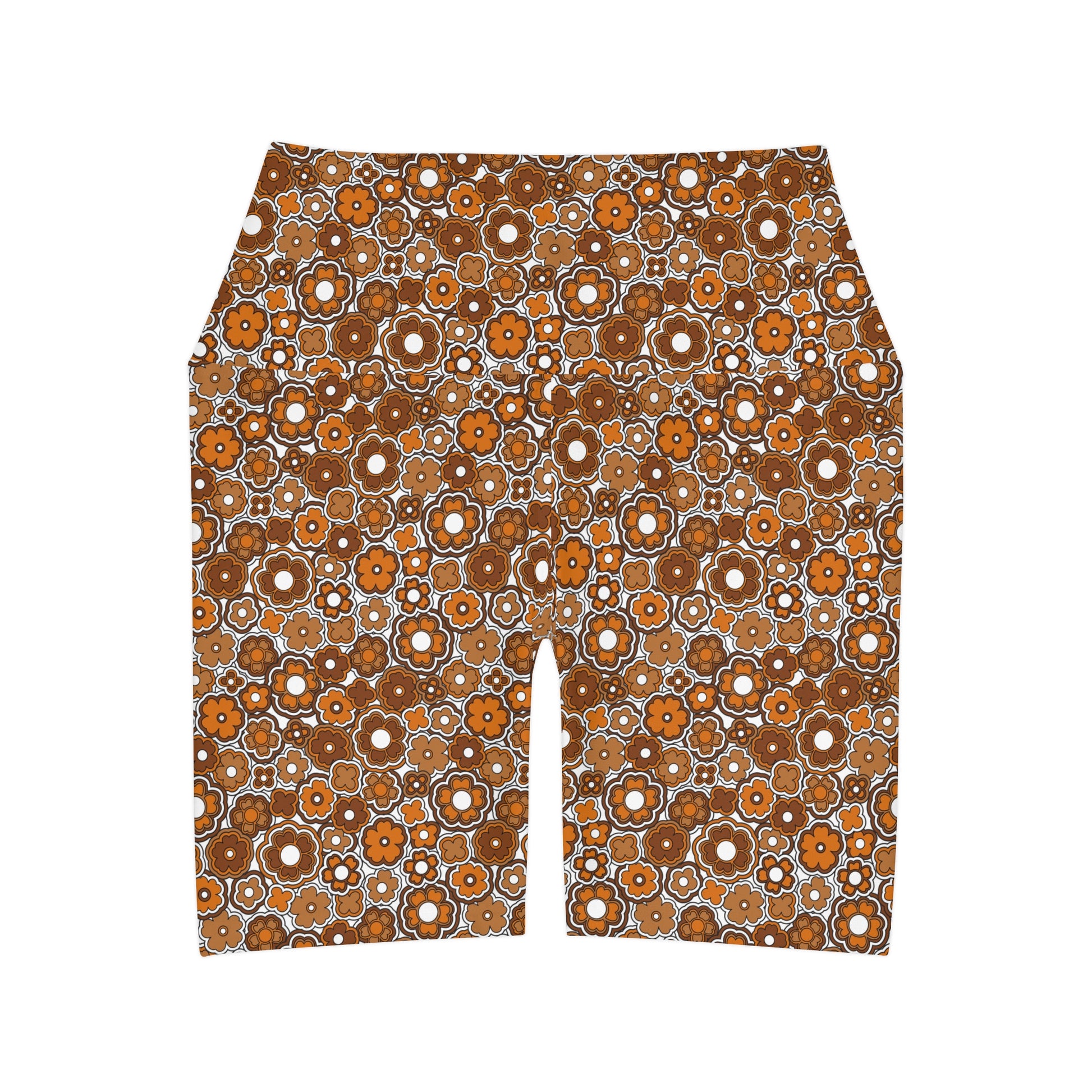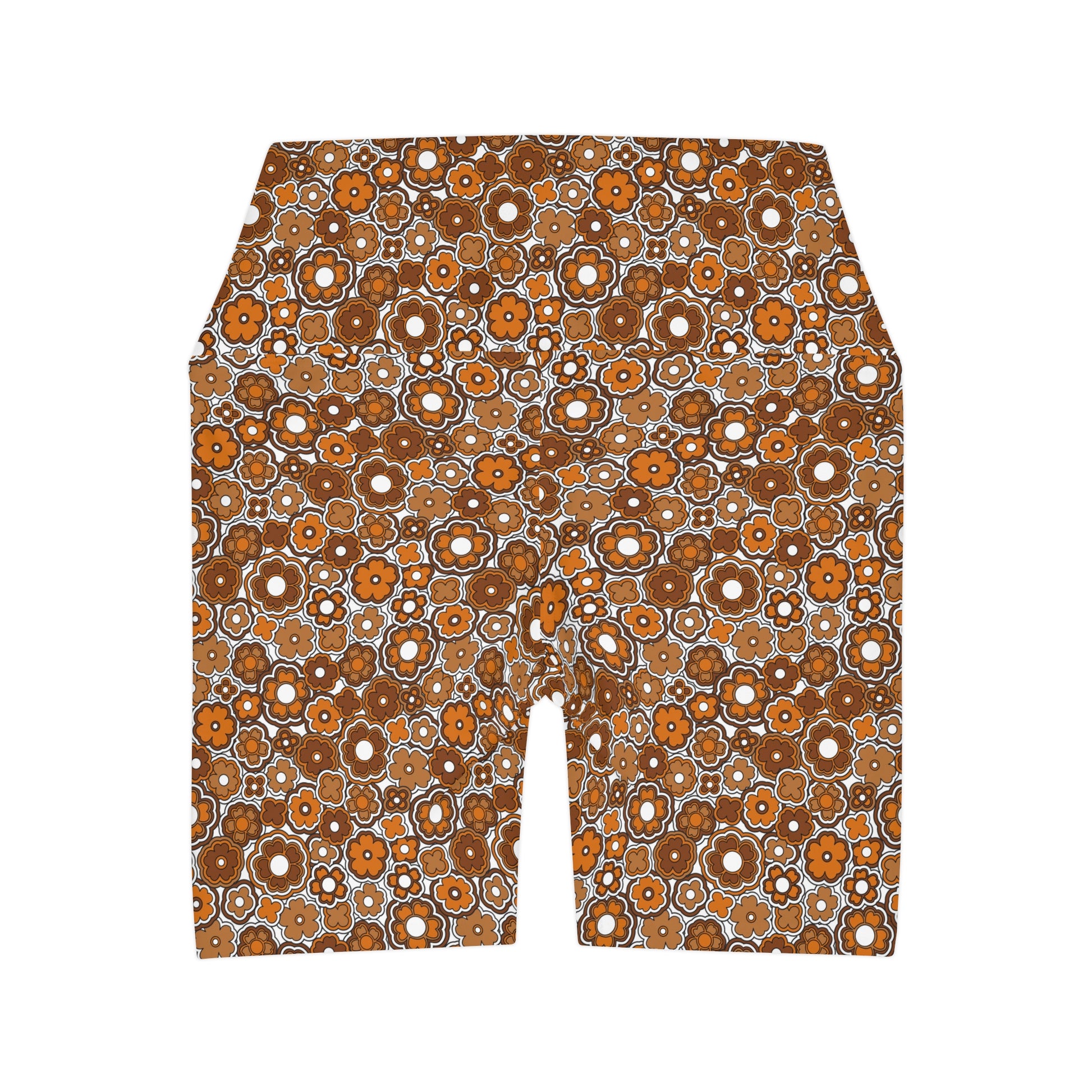 Flower Power Retro Brown Yoga Shorts