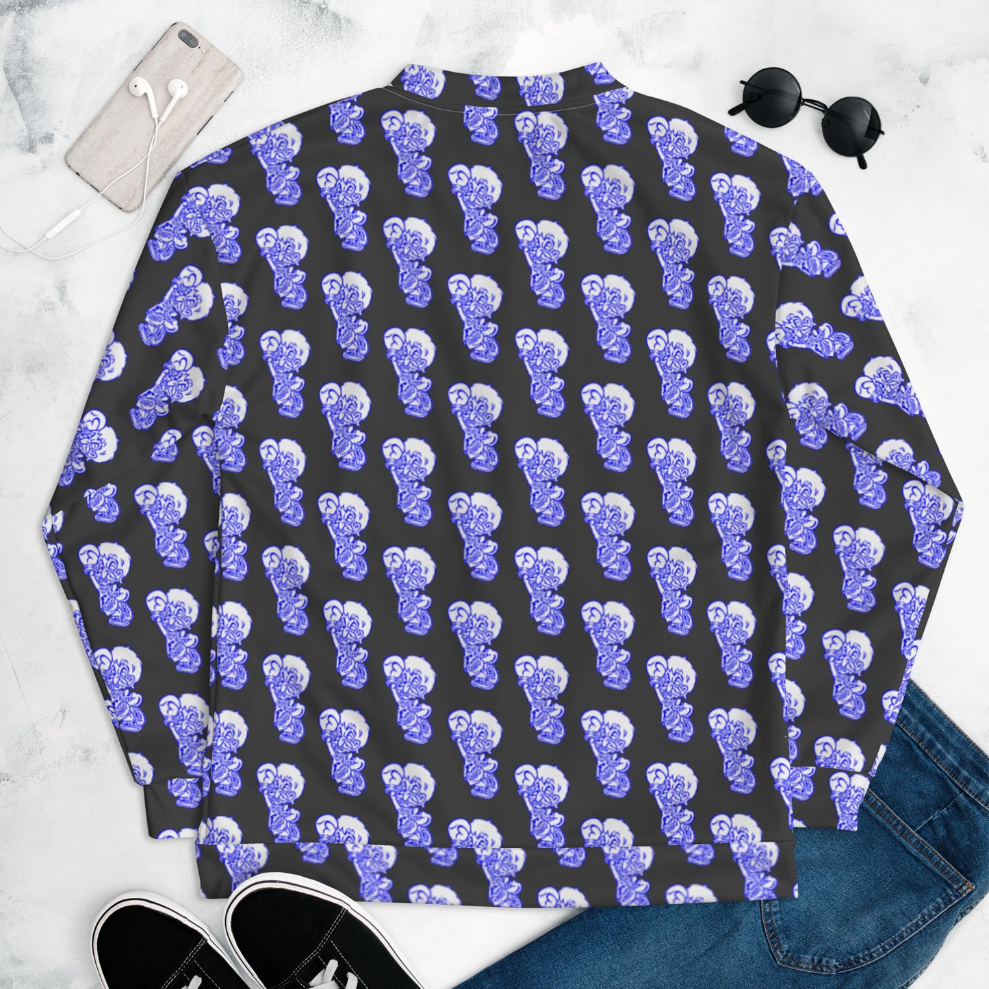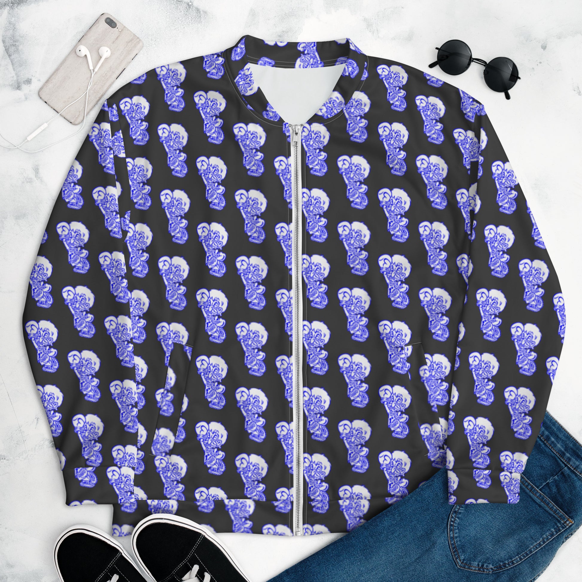 Add a little zing to your wardrobe with this vibrant All-Over Print Bomber Jacket. Wear it on a basic t-shirt, or layer it on top of a warm hoodie—it’ll look great either way. With a brushed fleece inside, and a relaxed unisex fit, this Bomber Jacket is just the stuff of the dreams, so be quick to grab yourself one!