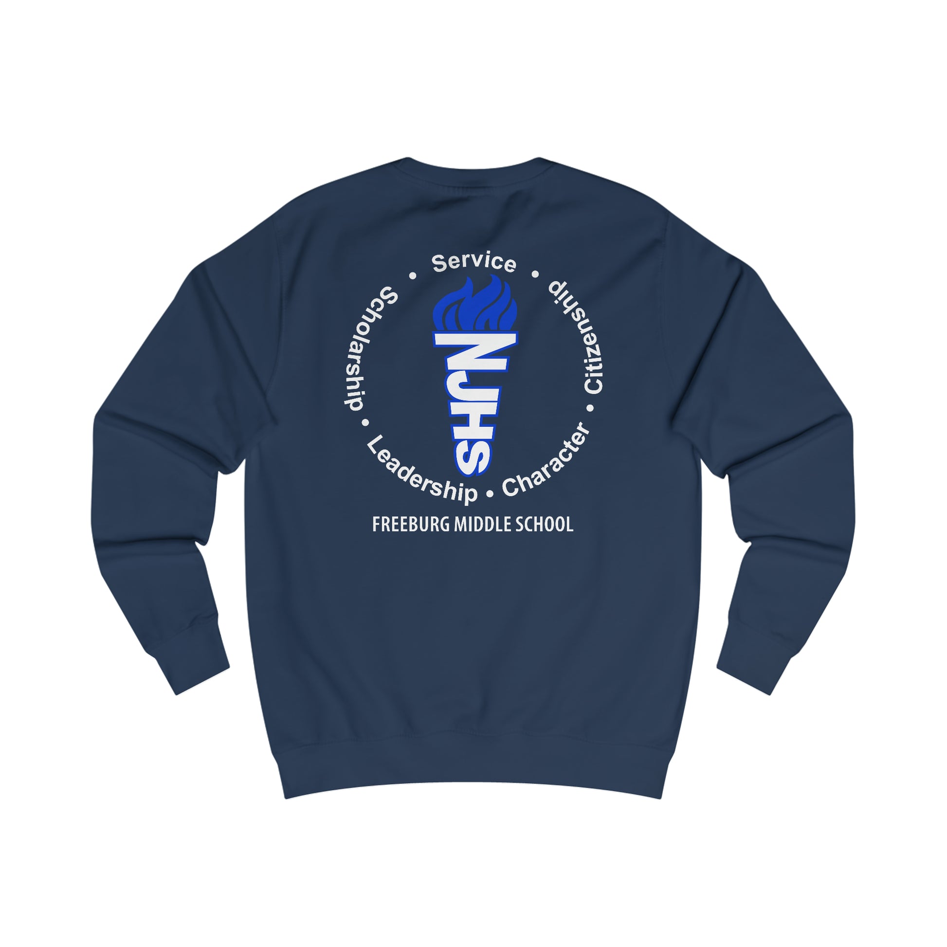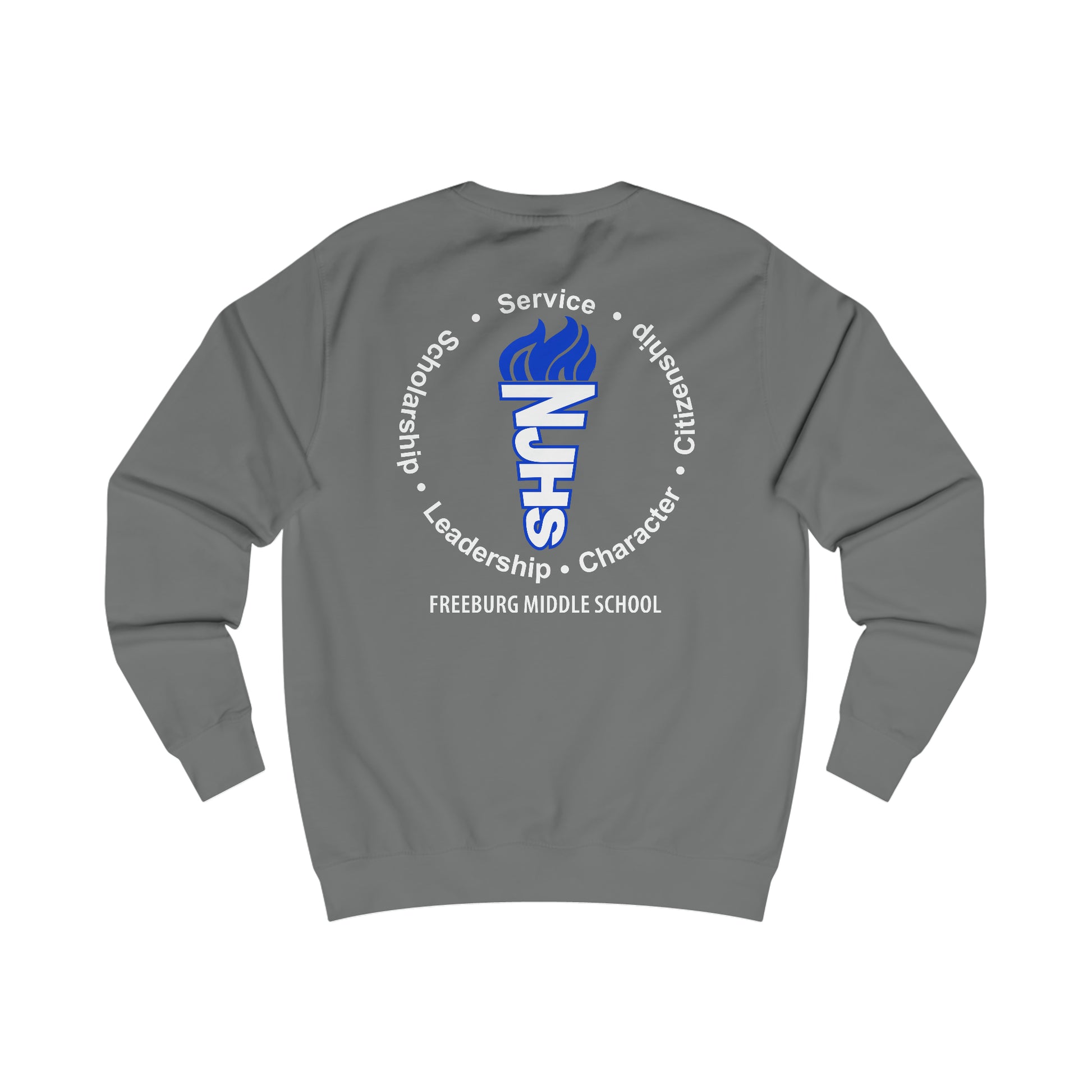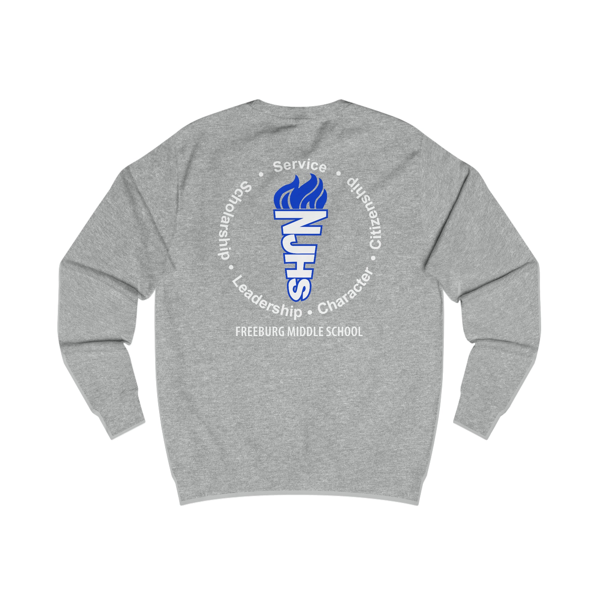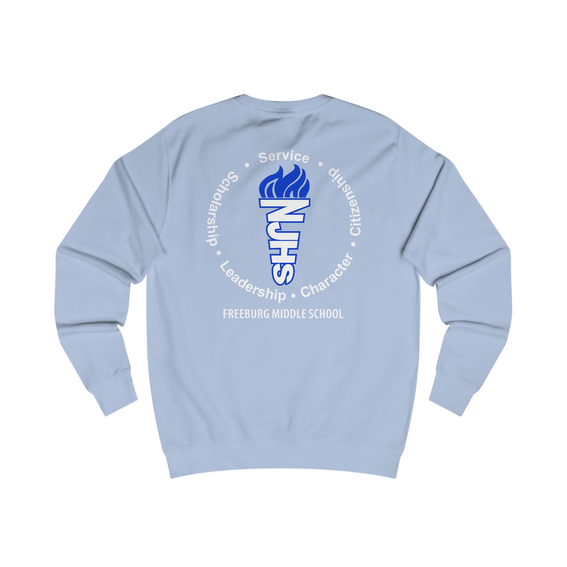 Front and Back Design - Freeburg Middle School White NJHS National Junior Honor Society Royal Torch (front) and Character Circle Logo (back) Unisex Heavy Blend™ Crewneck Sweatshirt