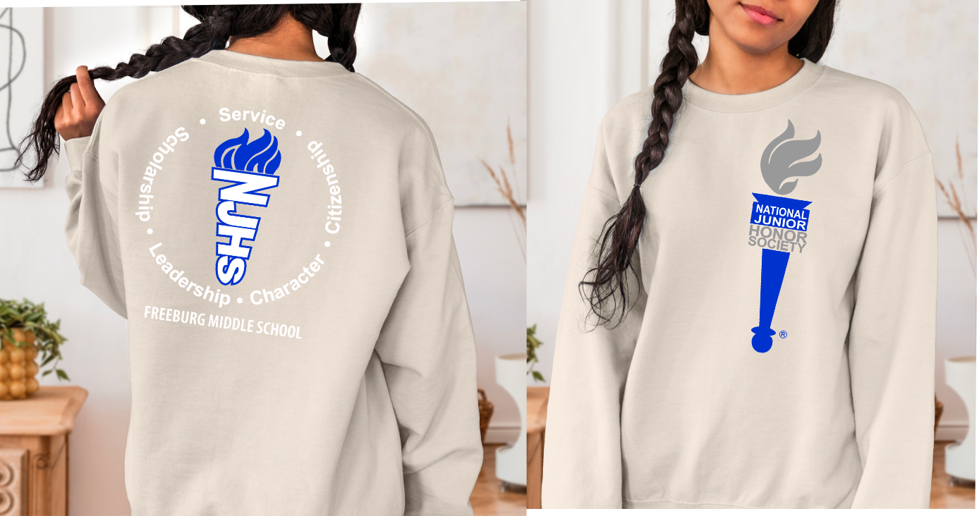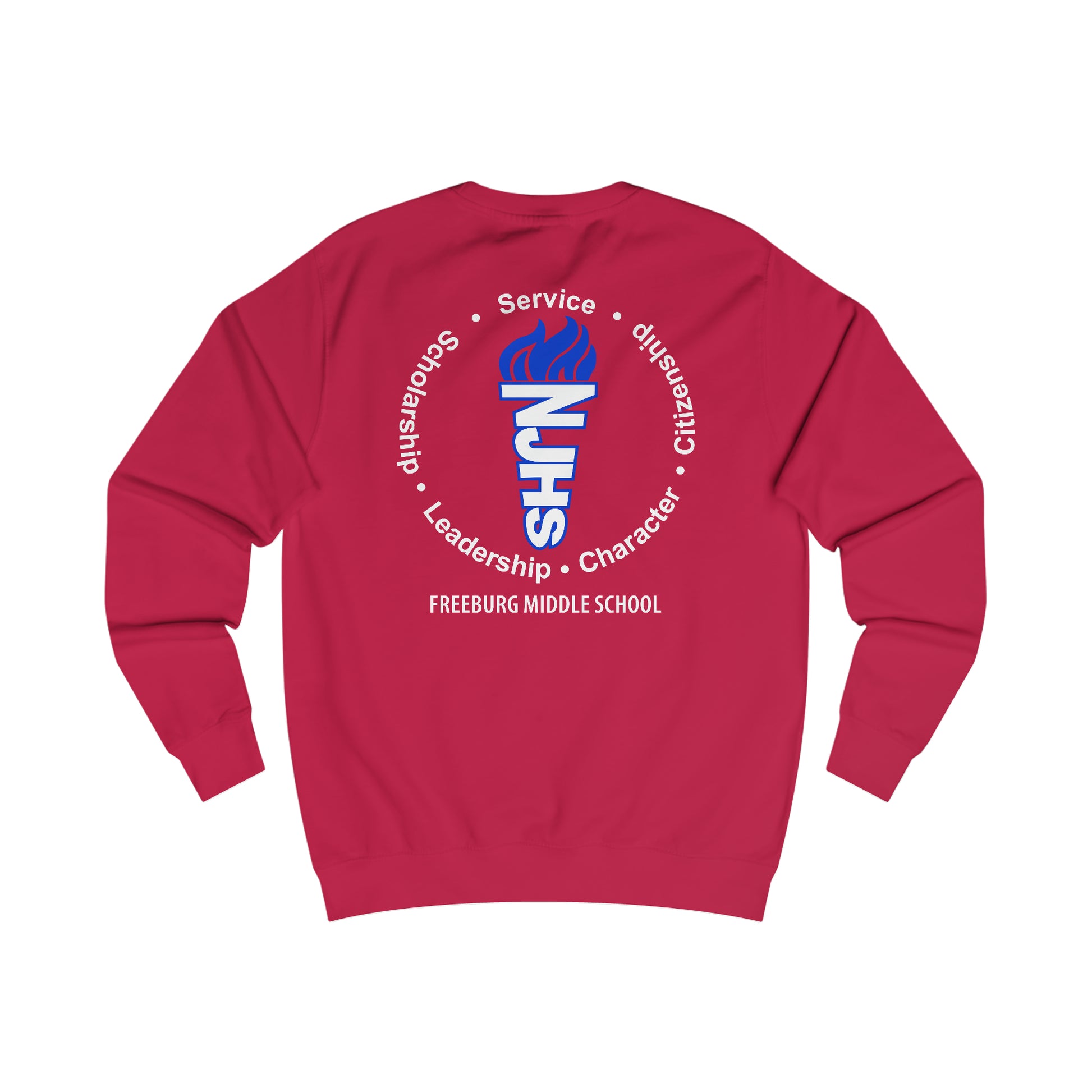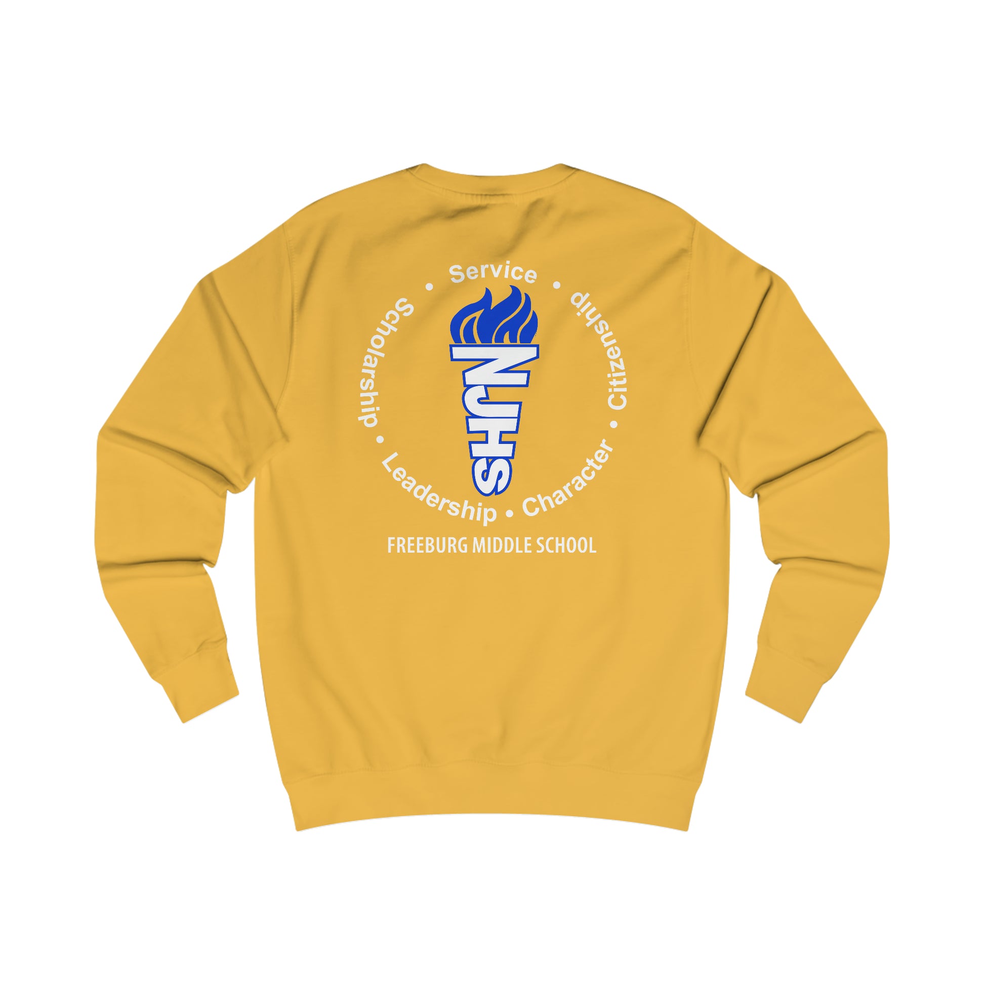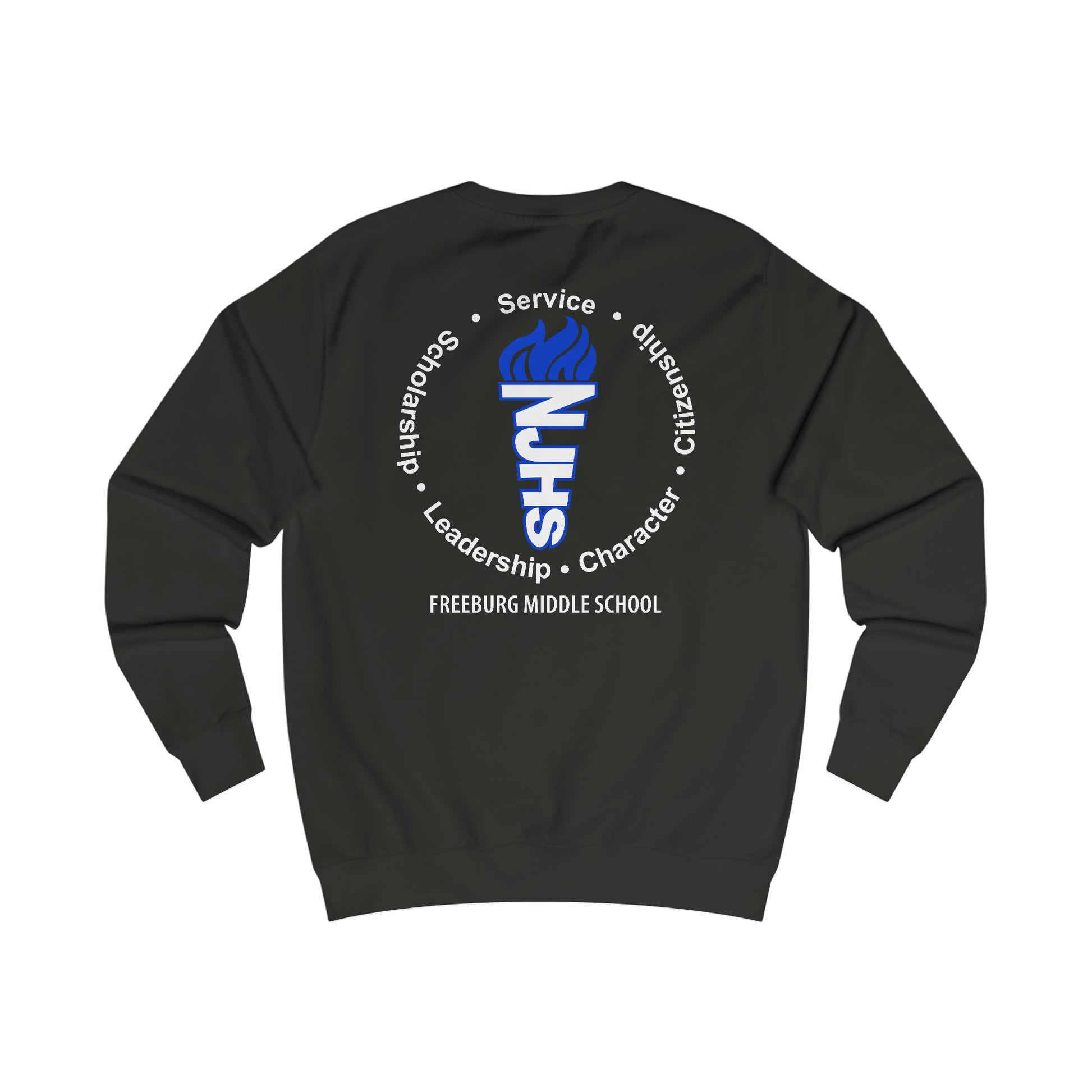 Front and Back Design - Freeburg Middle School White NJHS National Junior Honor Society Royal Torch (front) and Character Circle Logo (back) Unisex Heavy Blend™ Crewneck Sweatshirt