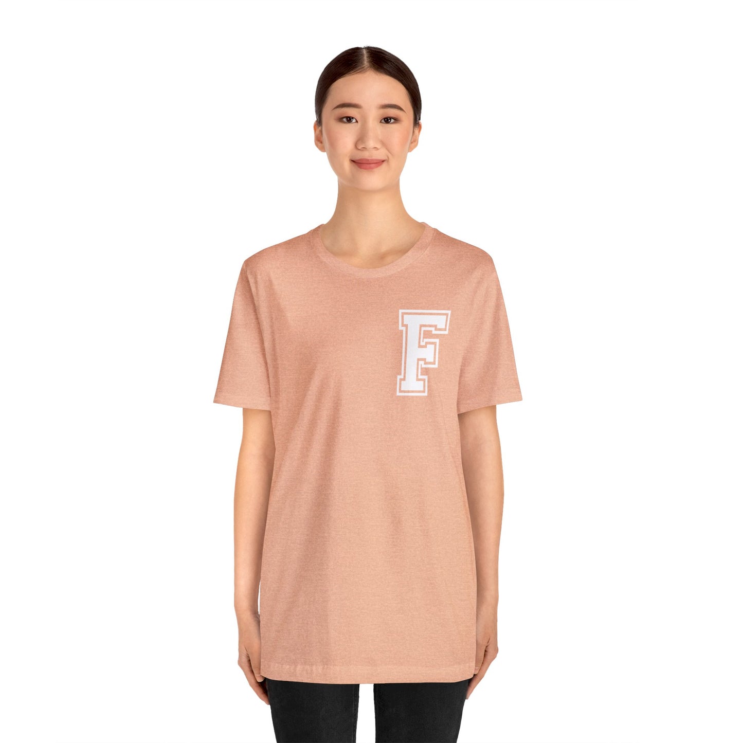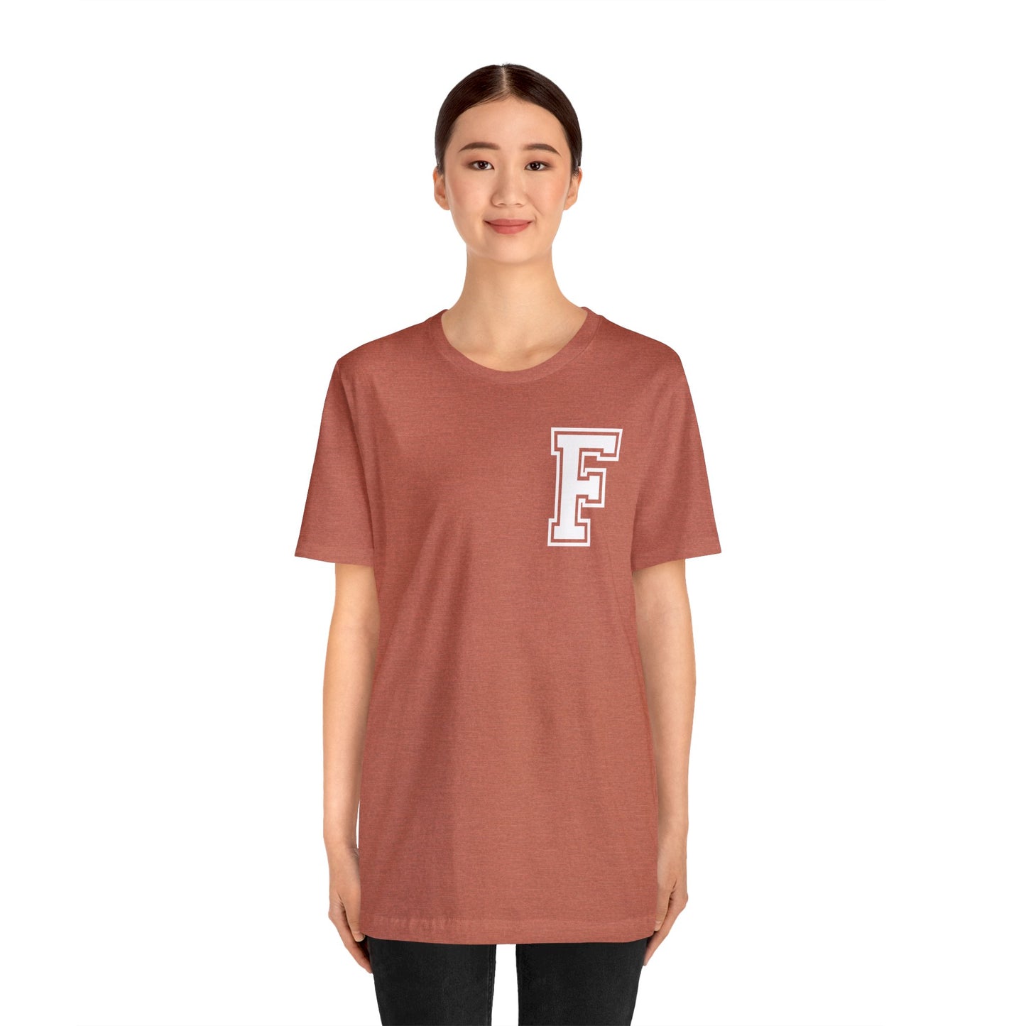 Front and Back Design - Varsity F Vertical Freeburg Midgets Logo Bella Jersey Short Sleeve Tee (Unisex)