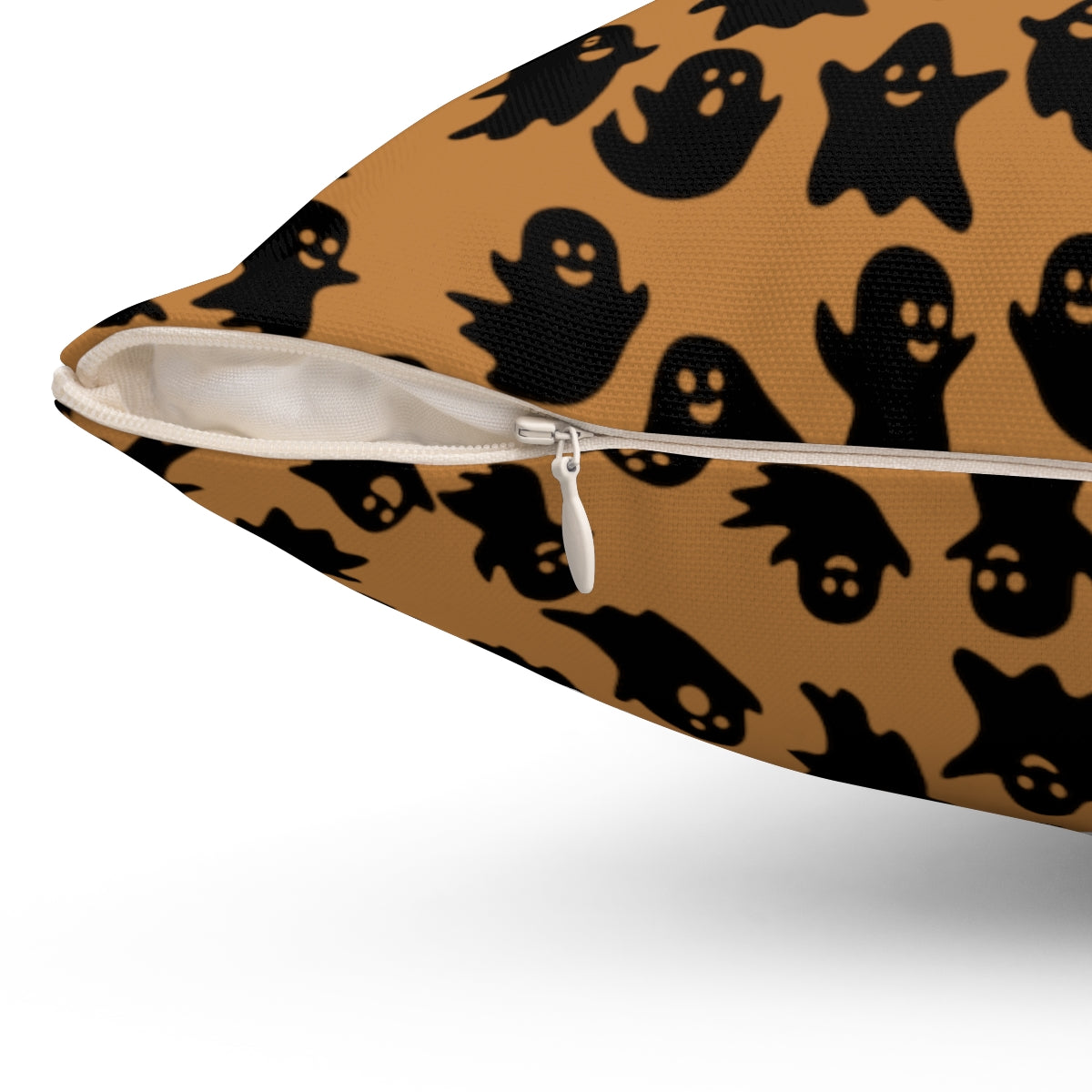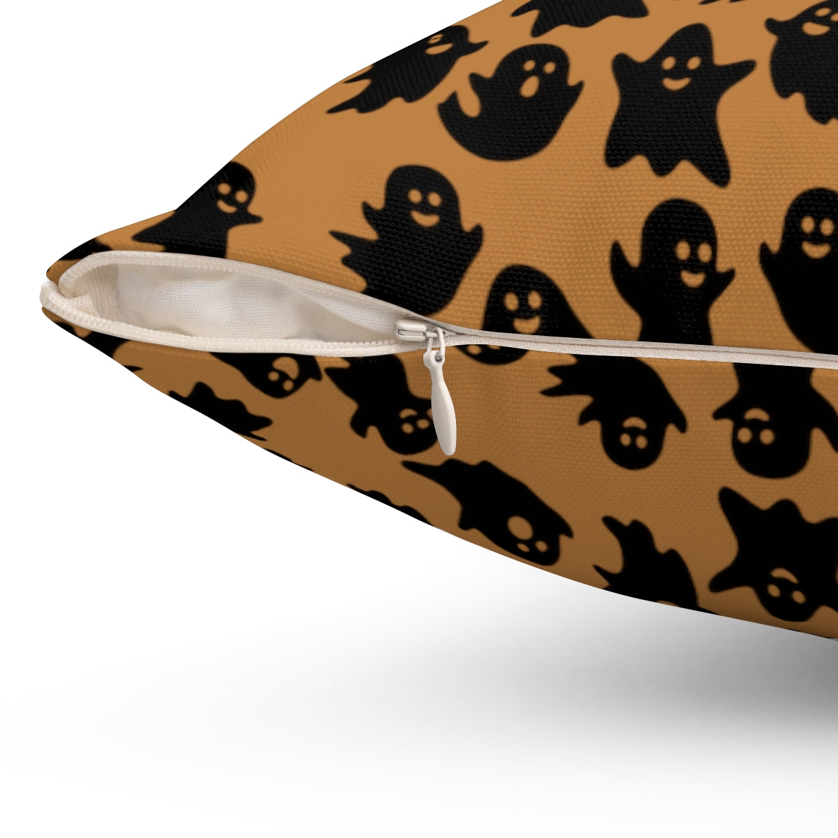 Light Brown Ghost Pattern Fall Halloween Spun Polyester Square Pillow