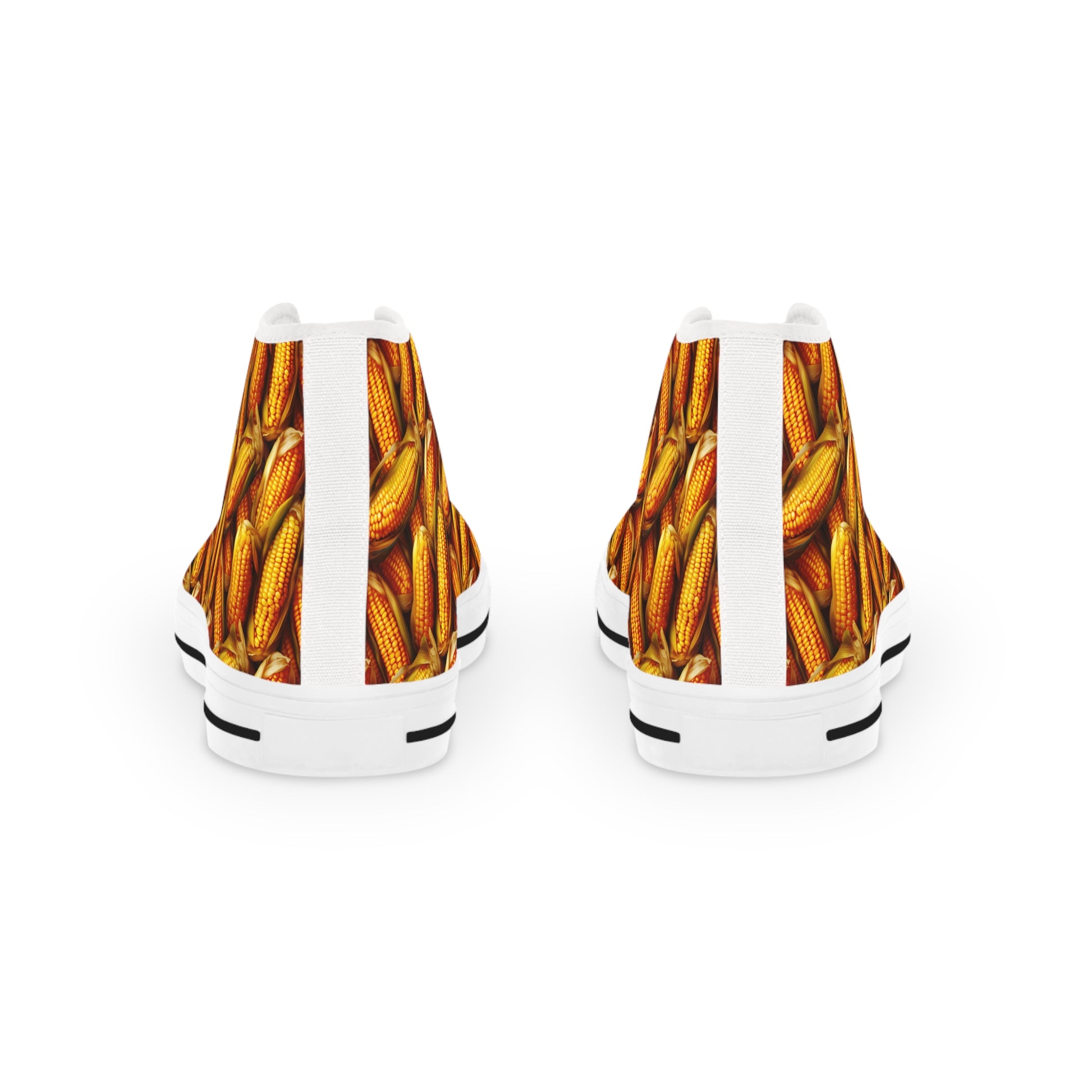 I love corn gear! Made with breathable polyester canvas and featuring hi-poly deodorant memory foam insoles, these high top sneakers for men bear all the marks of an awesome shoe. Choose between black or white sole and laces, and enjoy the silver metal eyelets along with the lace-up closure. Add your designs and bring a bespoke staple to life.