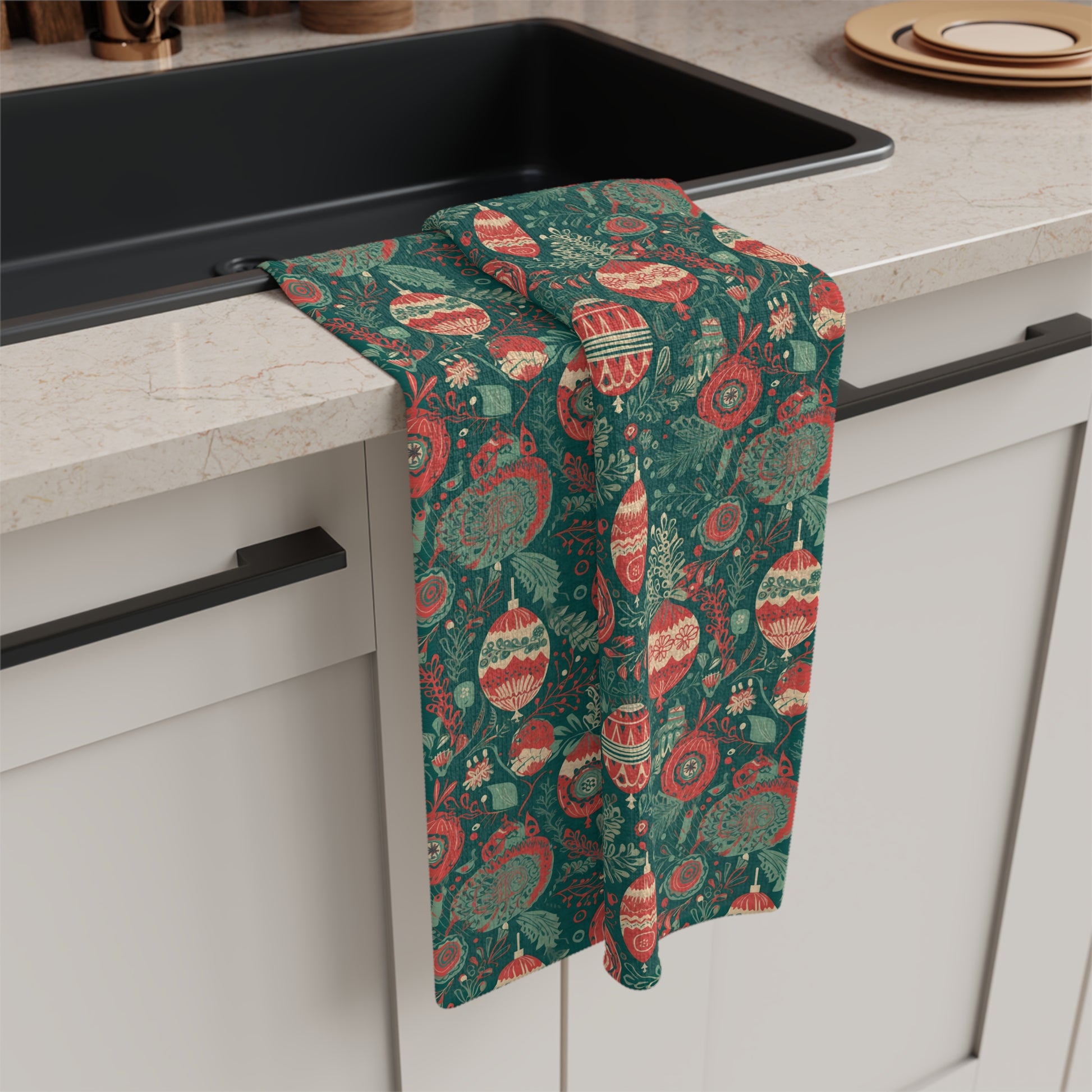 Green Christmas Ornament Print/ Holiday Soft Tea Towel