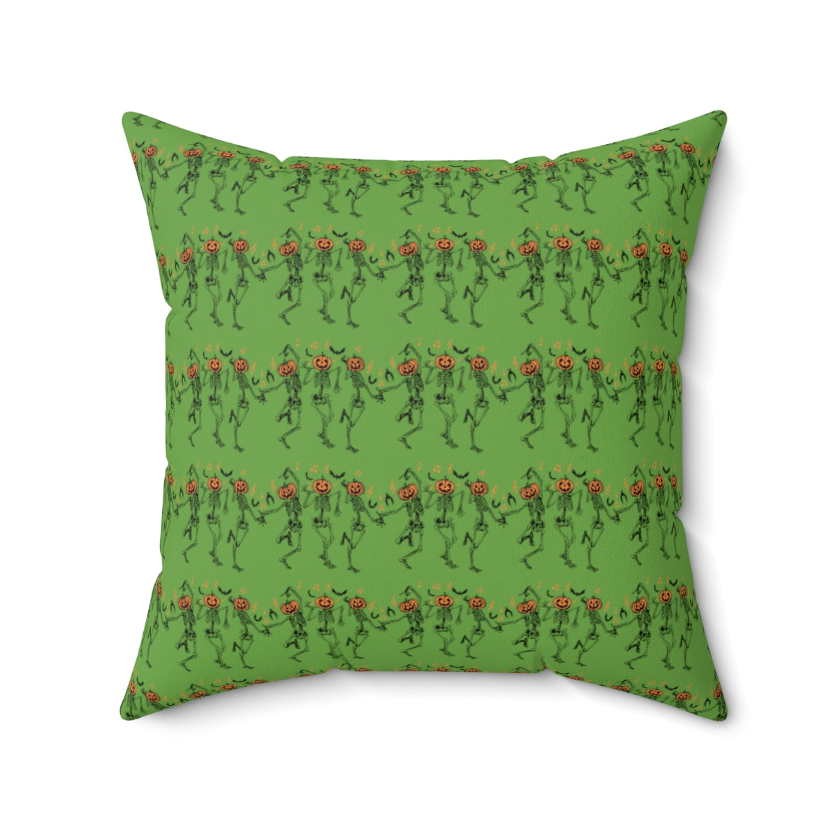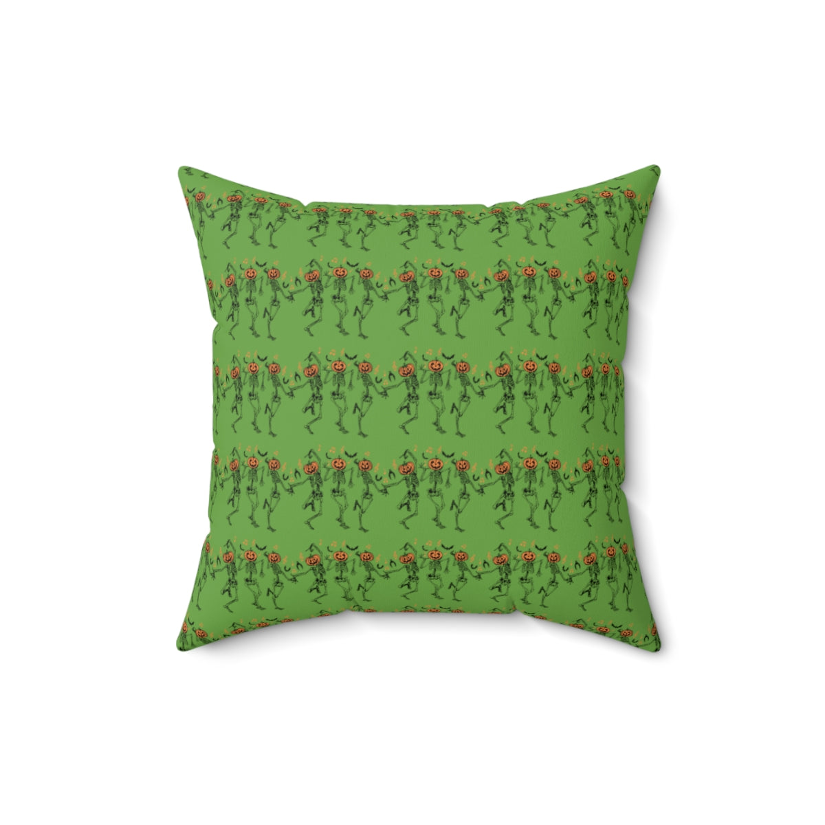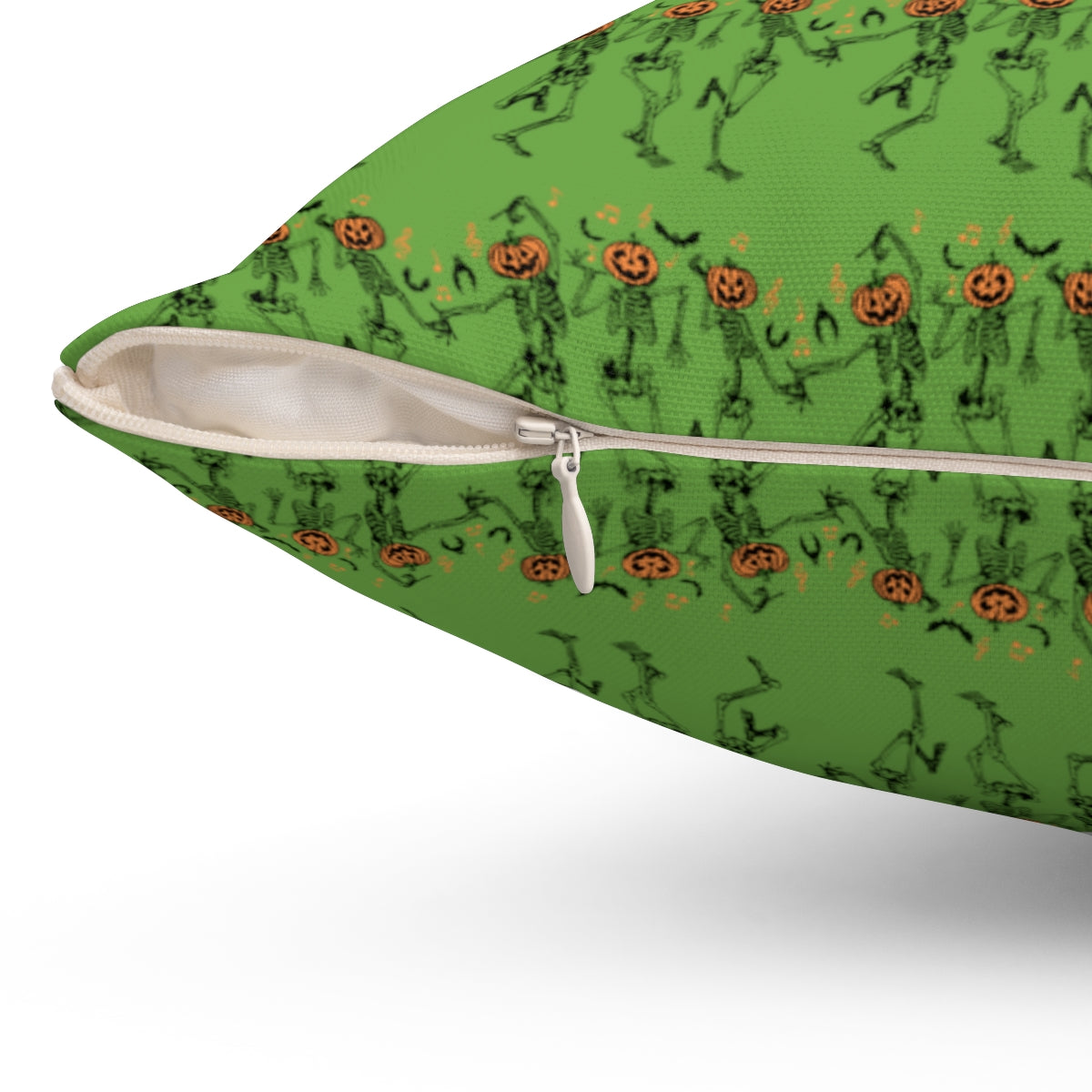 Green Dancing Pumpkin Head Skeletons Pattern Fall Halloween Spun Polyester Square Pillow