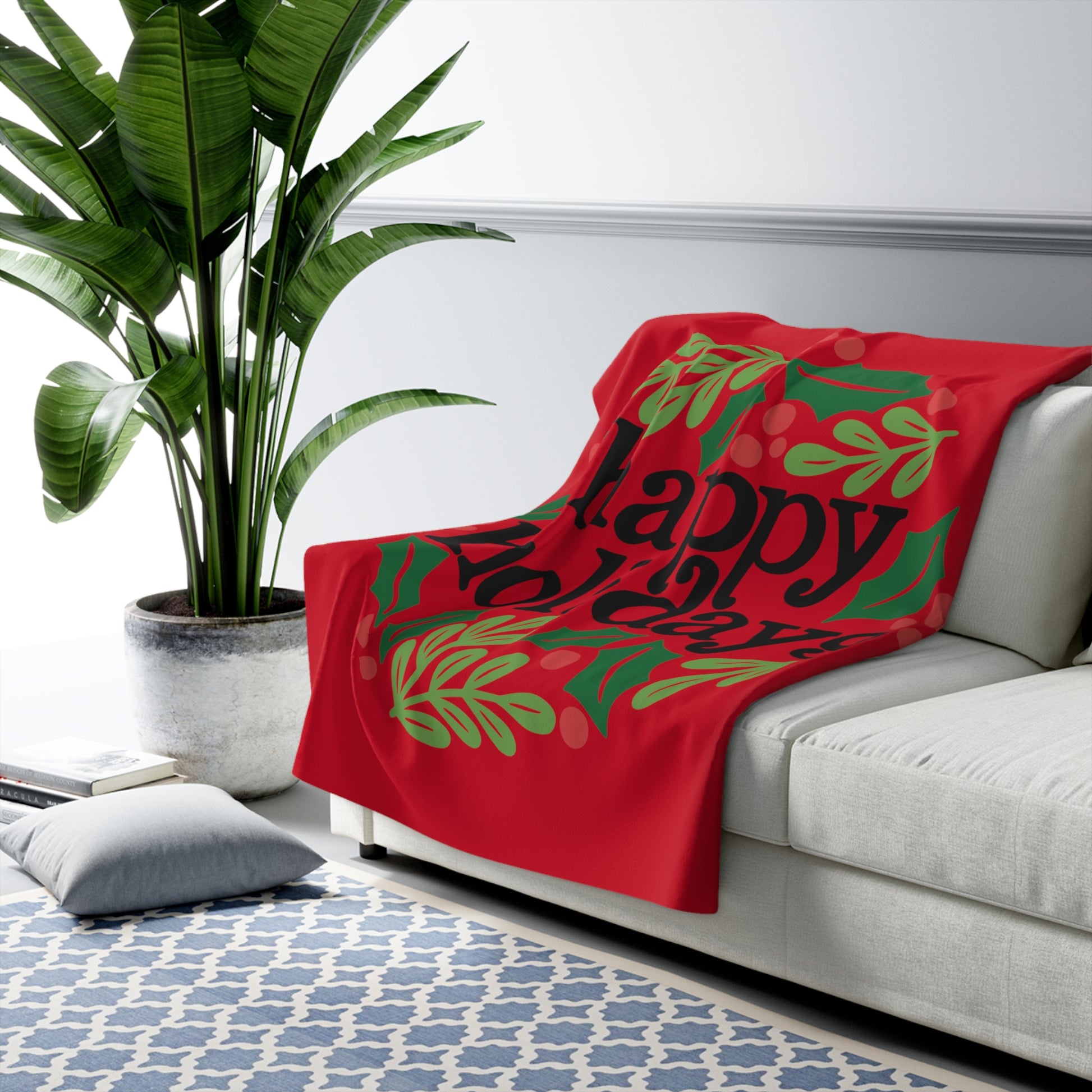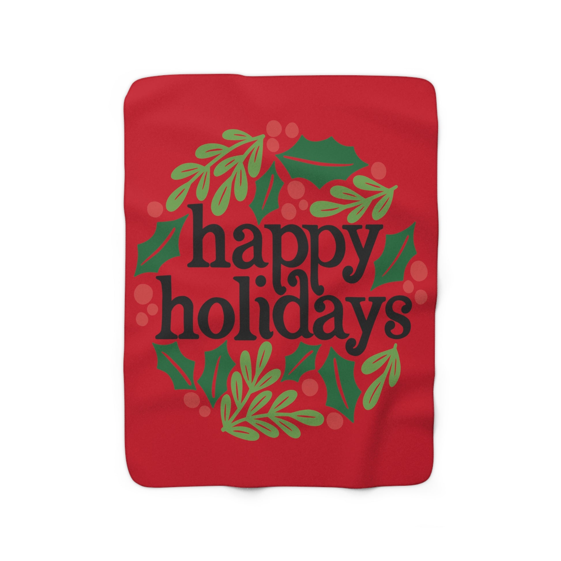 Happy Holidays Evergreen Wreath Sherpa Fleece Blanket