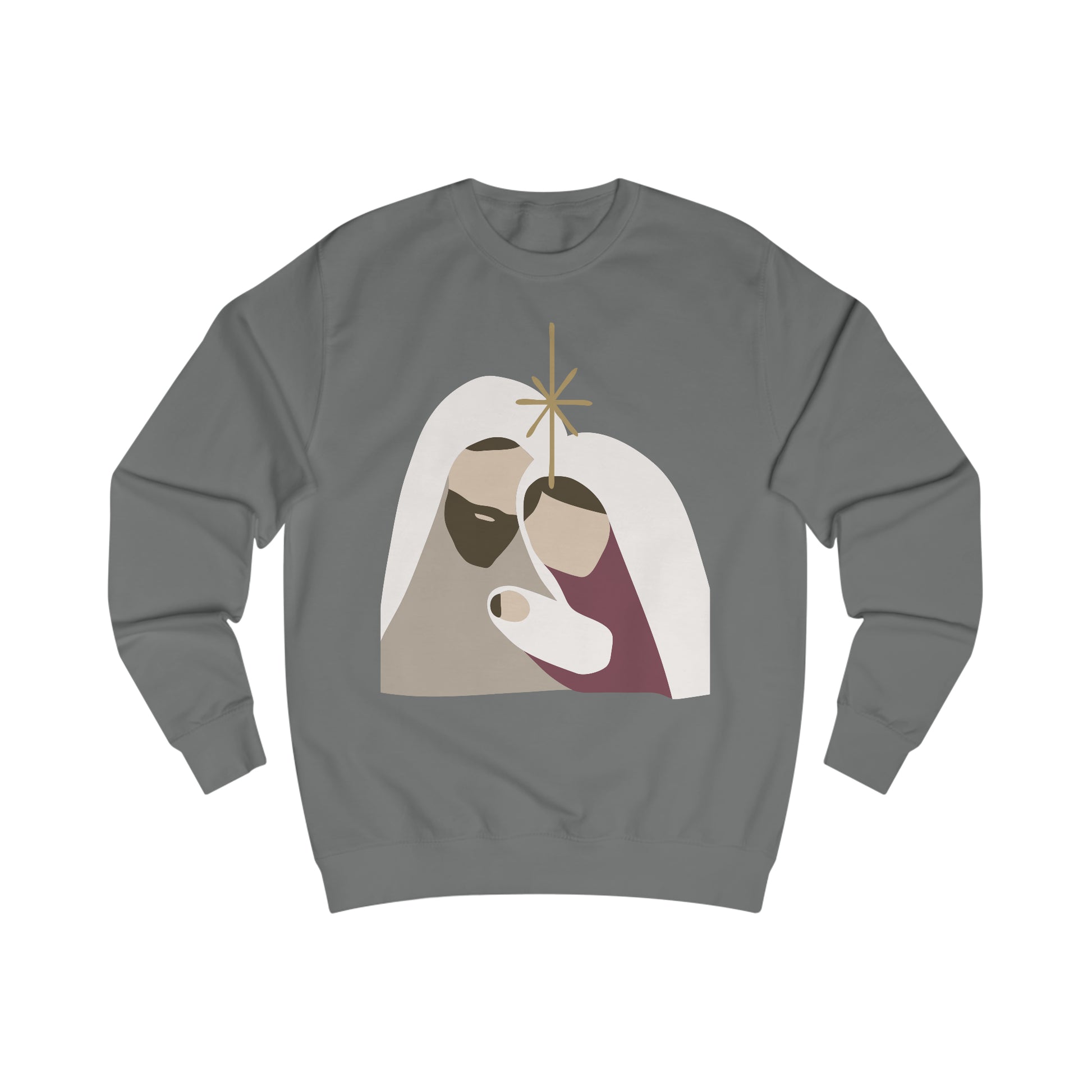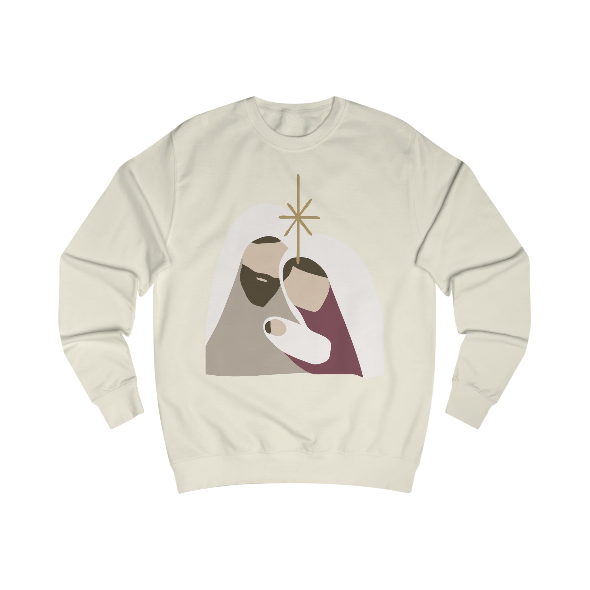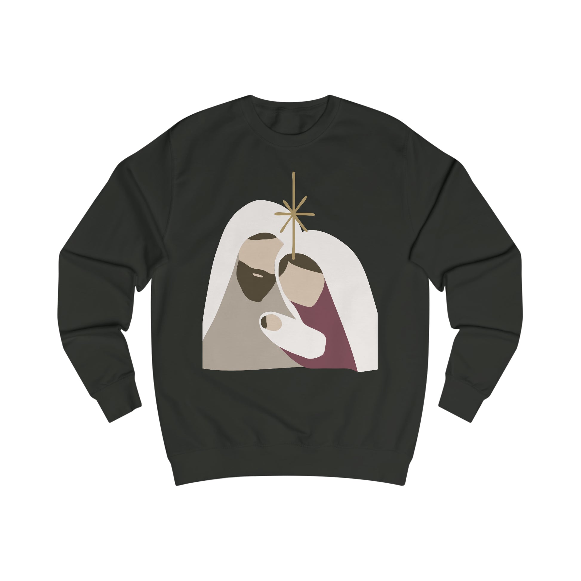 Mary, Joseph, and Jesus Sweatshirt! Christian Gear! Great Christmas Gift! This classic unisex jersey short-sleeve tee fits like a well-loved favorite. Soft cotton and quality print make users fall in love with it repeatedly. These t-shirts have ribbed knit collars to bolster shaping. The shoulders have taping for better fit over time. Dual side seams hold the garment's shape for longer. .: 100% Airlume combed and ringspun cotton (fiber content may vary for different colors) .: Light fabric (4.2 oz/yd² (142 g/m²)) .: Retail fit .: Tear away label .: Runs true to size Ideal for any situation, a unisex heavy blend crewneck sweatshirt is pure comfort. These garments are made from polyester and cotton. This combination helps designs come out looking fresh and beautiful. The collar is ribbed knit, so it retains its shape even after washing. There are no itchy side seams on these sweaters.