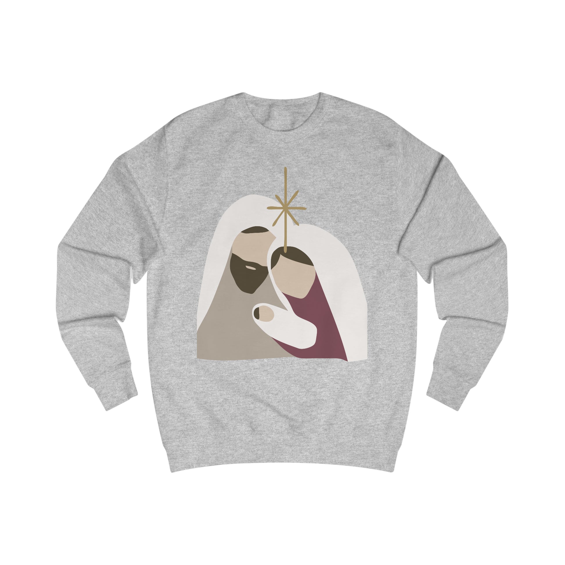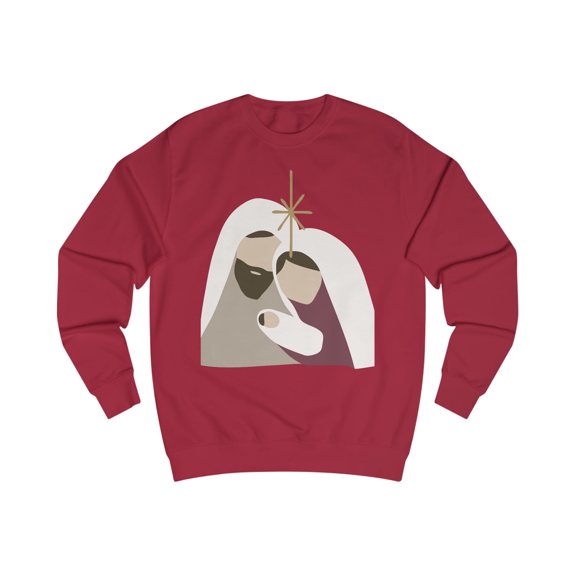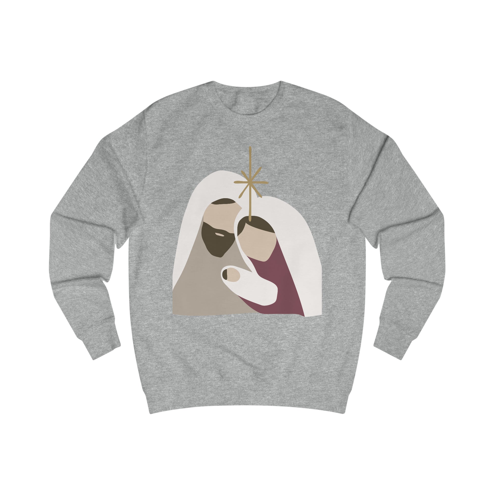 Mary, Joseph, and Jesus Sweatshirt! Christian Gear! Great Christmas Gift! This classic unisex jersey short-sleeve tee fits like a well-loved favorite. Soft cotton and quality print make users fall in love with it repeatedly. These t-shirts have ribbed knit collars to bolster shaping. The shoulders have taping for better fit over time. Dual side seams hold the garment's shape for longer. .: 100% Airlume combed and ringspun cotton (fiber content may vary for different colors) .: Light fabric (4.2 oz/yd² (142 g/m²)) .: Retail fit .: Tear away label .: Runs true to size Ideal for any situation, a unisex heavy blend crewneck sweatshirt is pure comfort. These garments are made from polyester and cotton. This combination helps designs come out looking fresh and beautiful. The collar is ribbed knit, so it retains its shape even after washing. There are no itchy side seams on these sweaters.