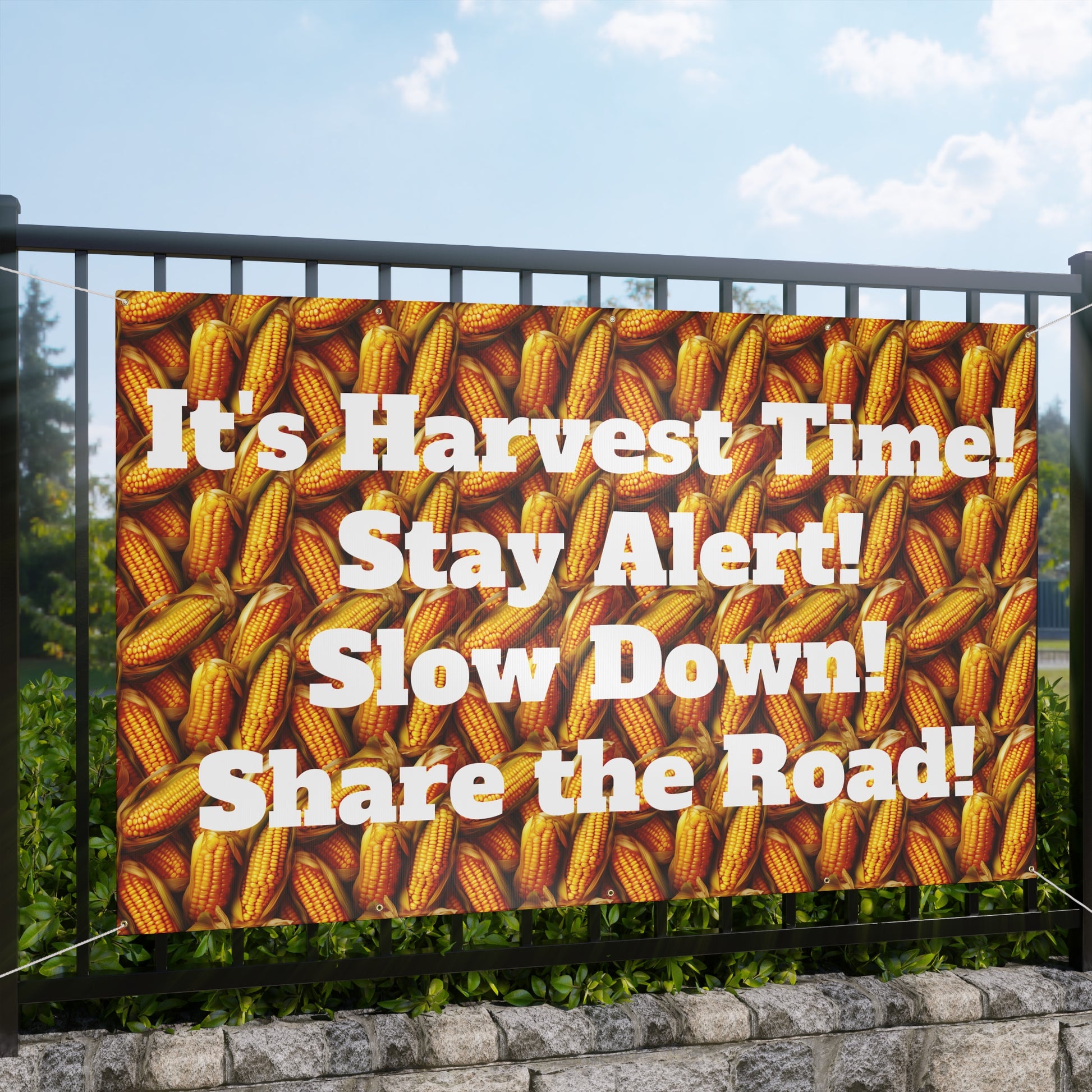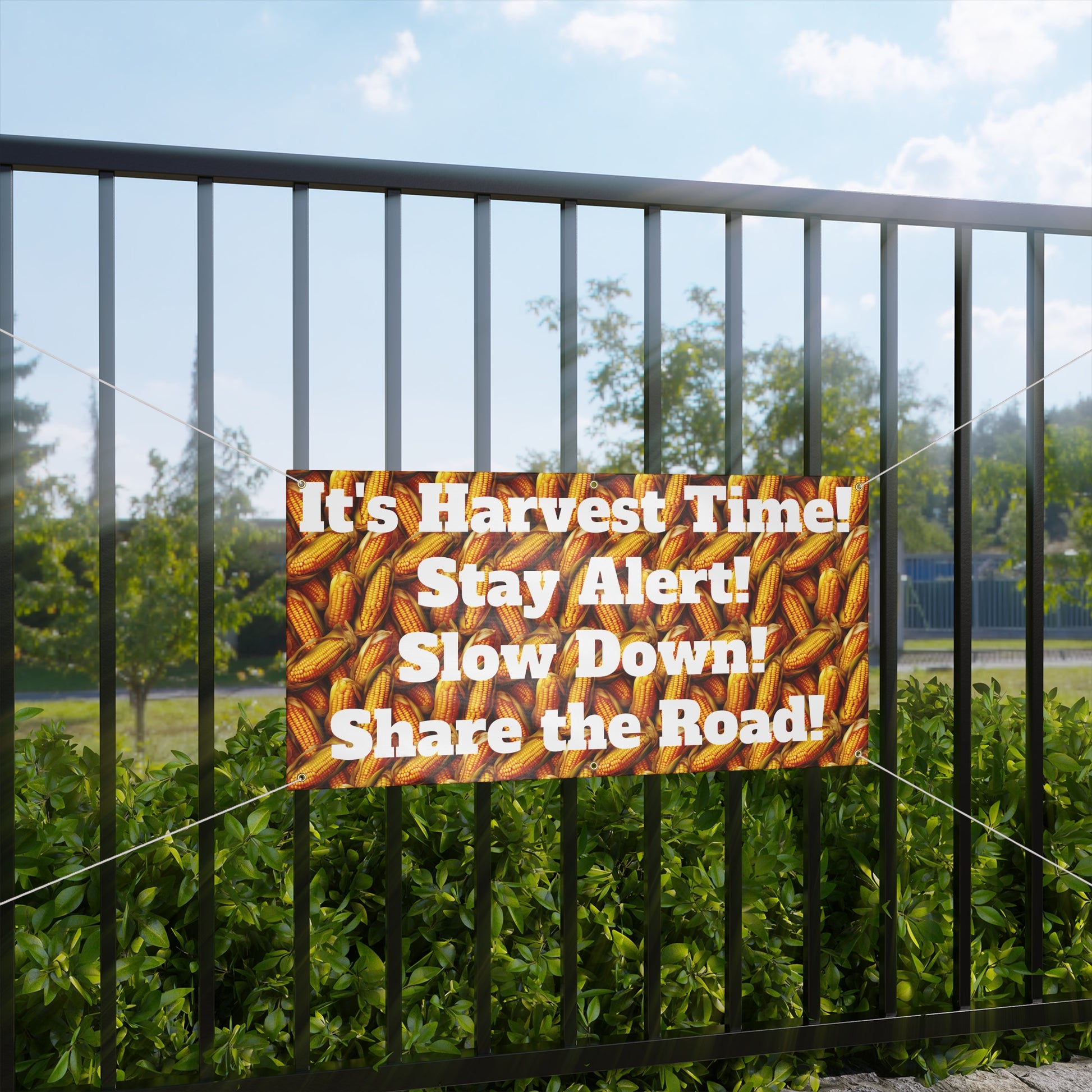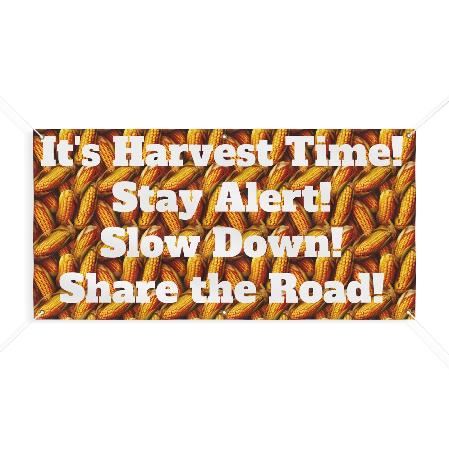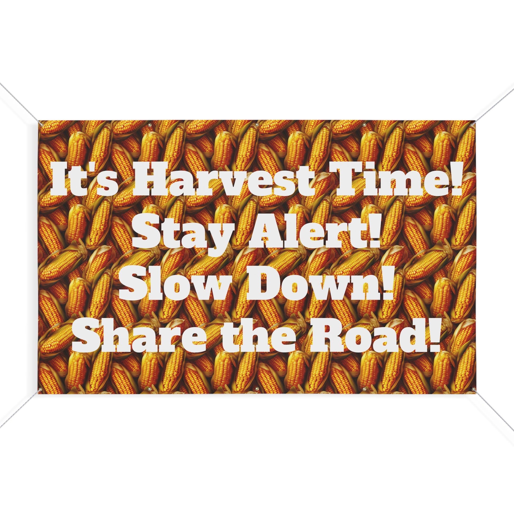It's Harvest Time- Stay Alert- Slow Down- Share the Road Farming Matte Banner