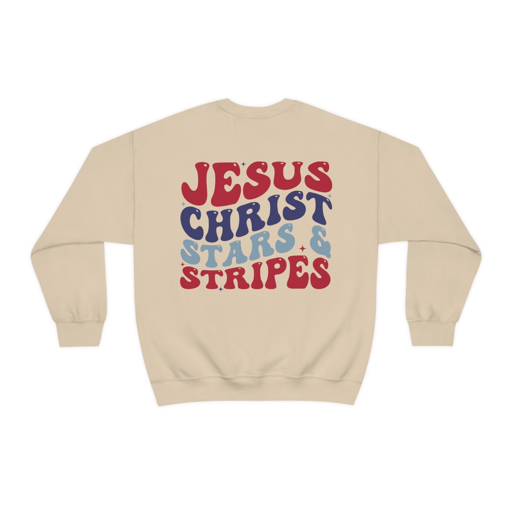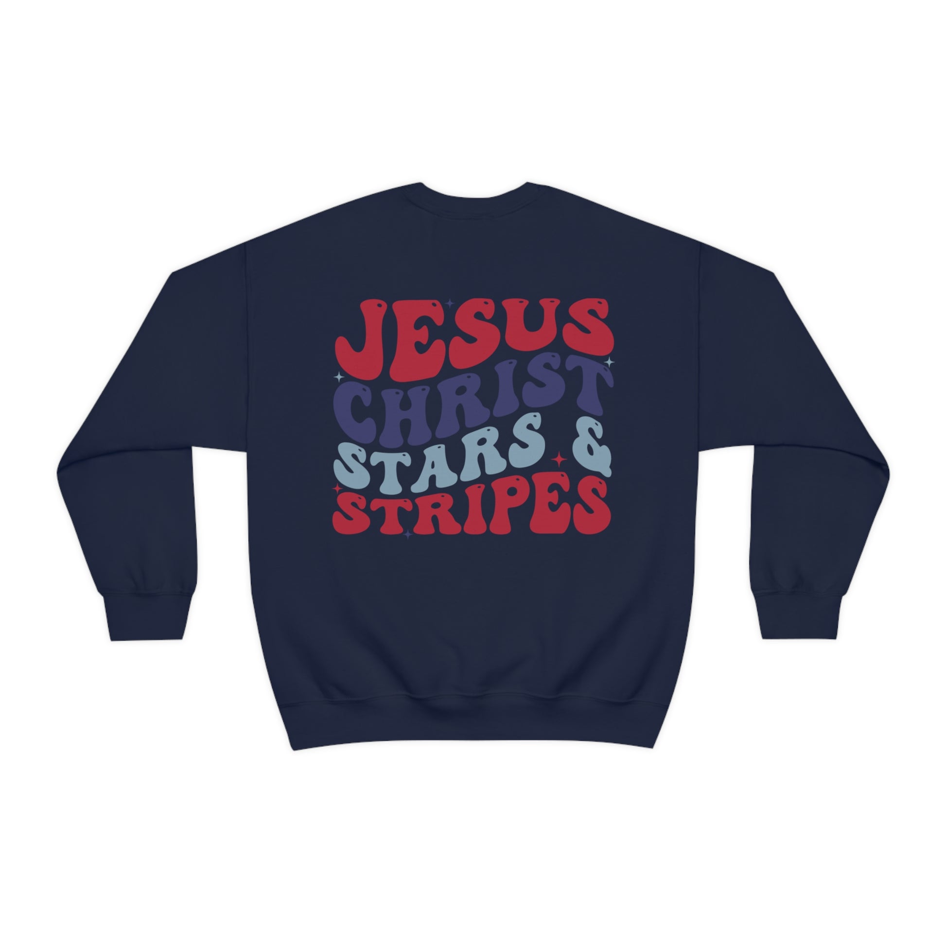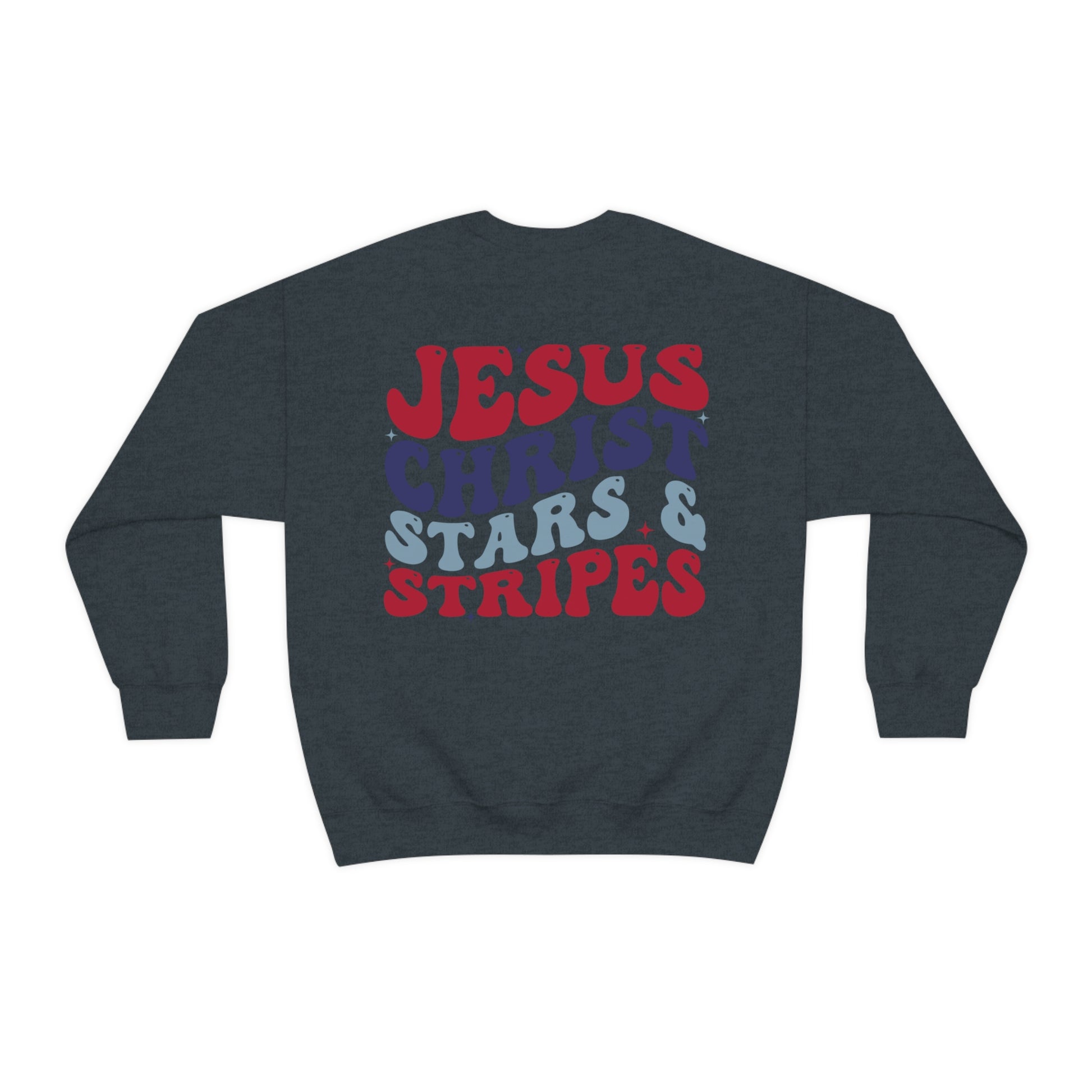 "Jesus Christ and Stars and Stripes" (Front & Back Design) - Unisex Heavy Blend™ Crewneck Sweatshirt