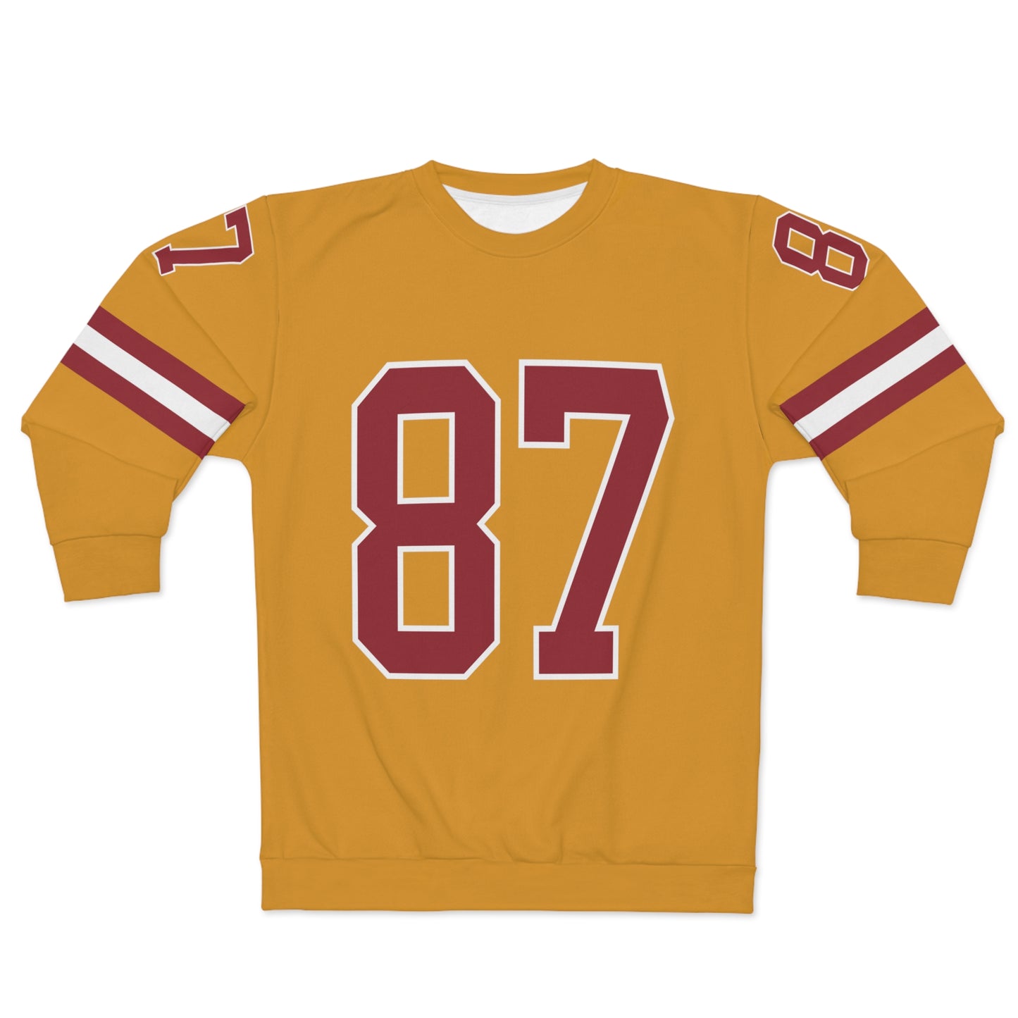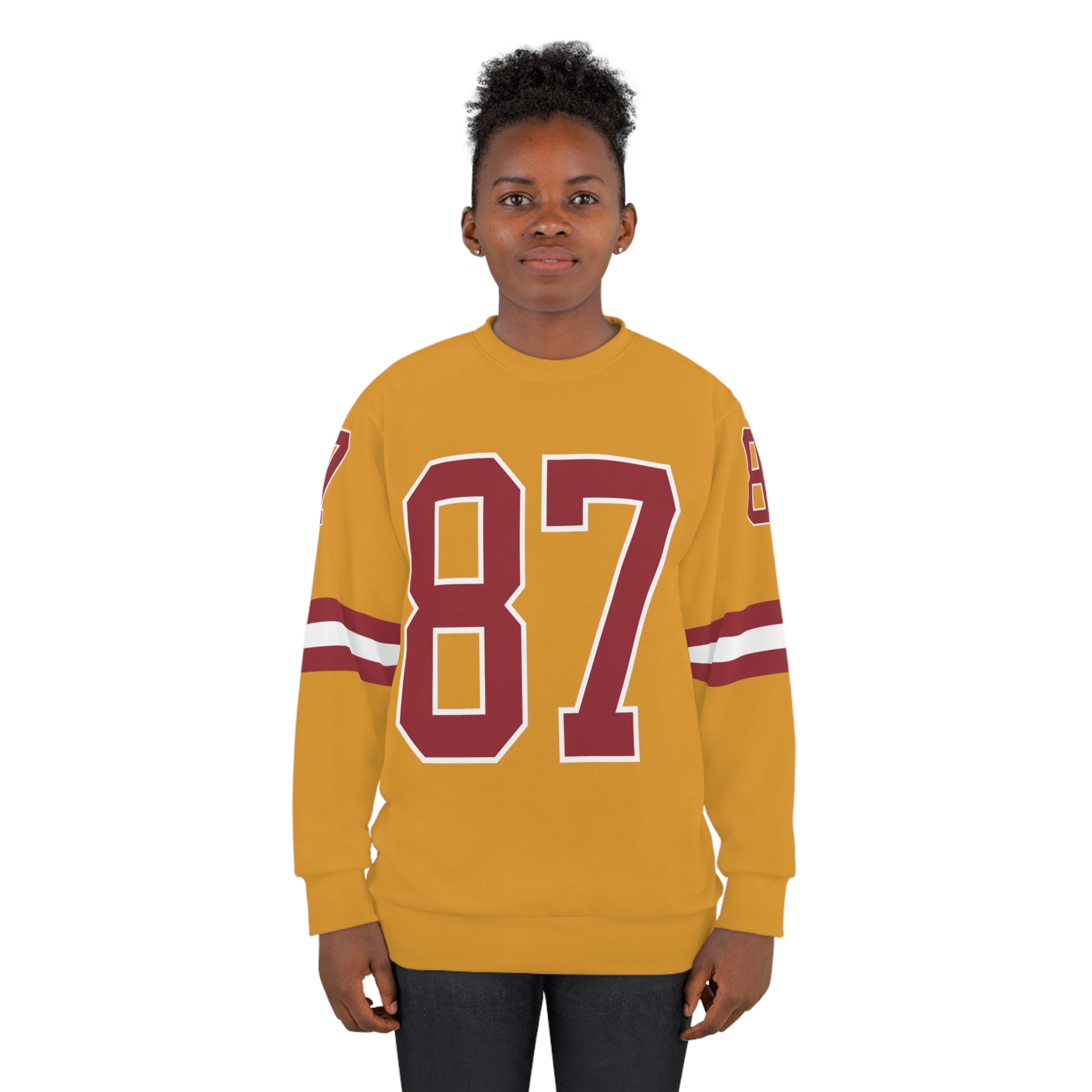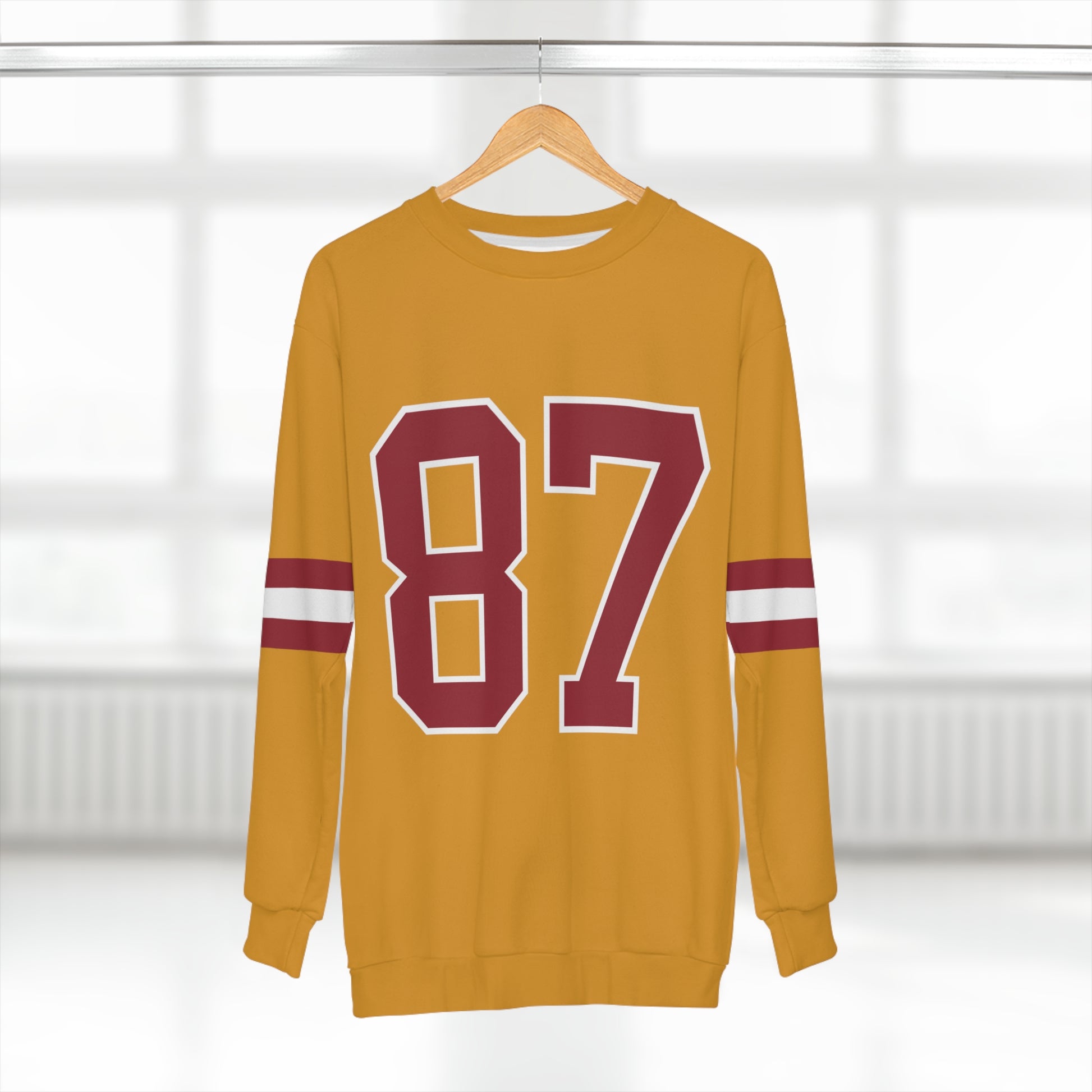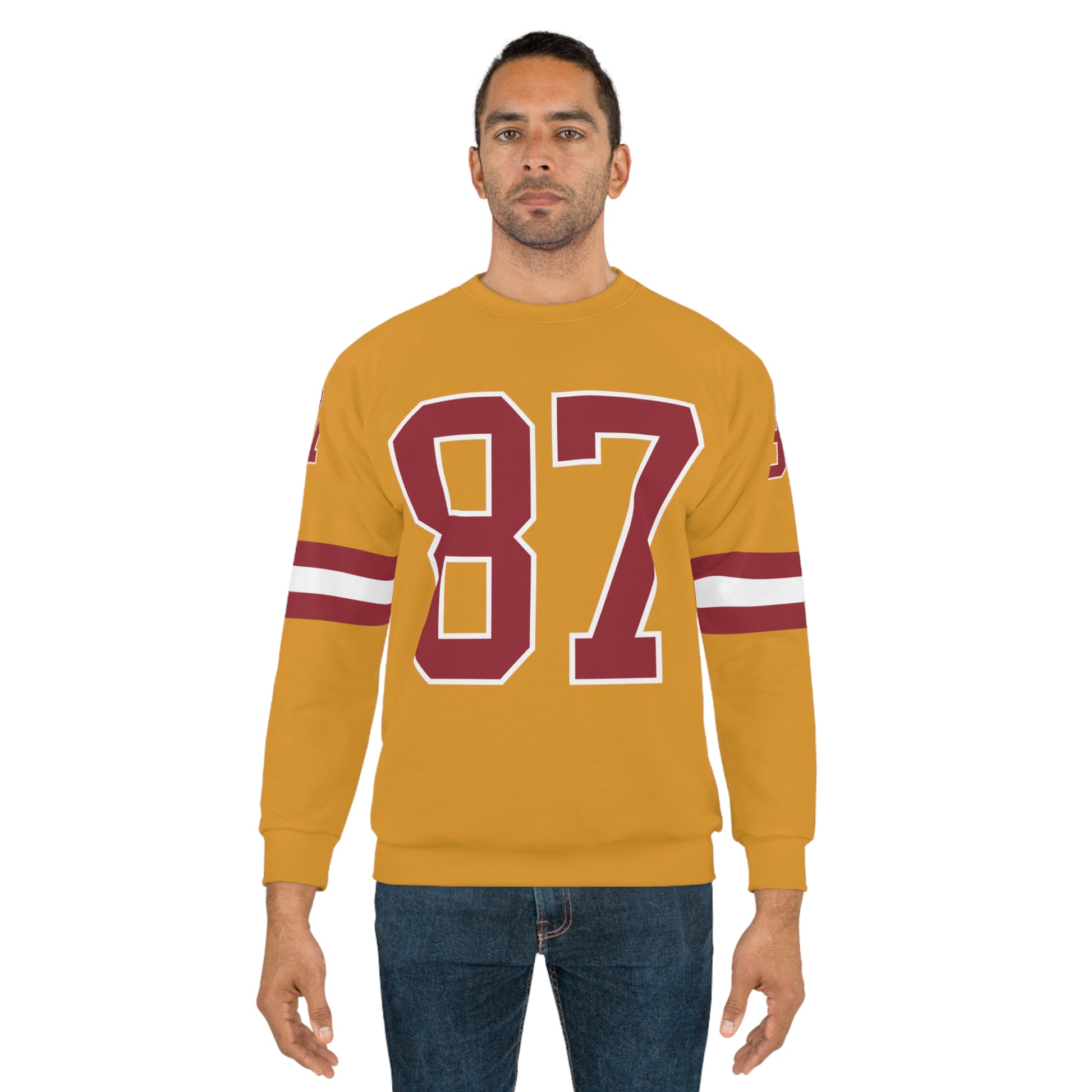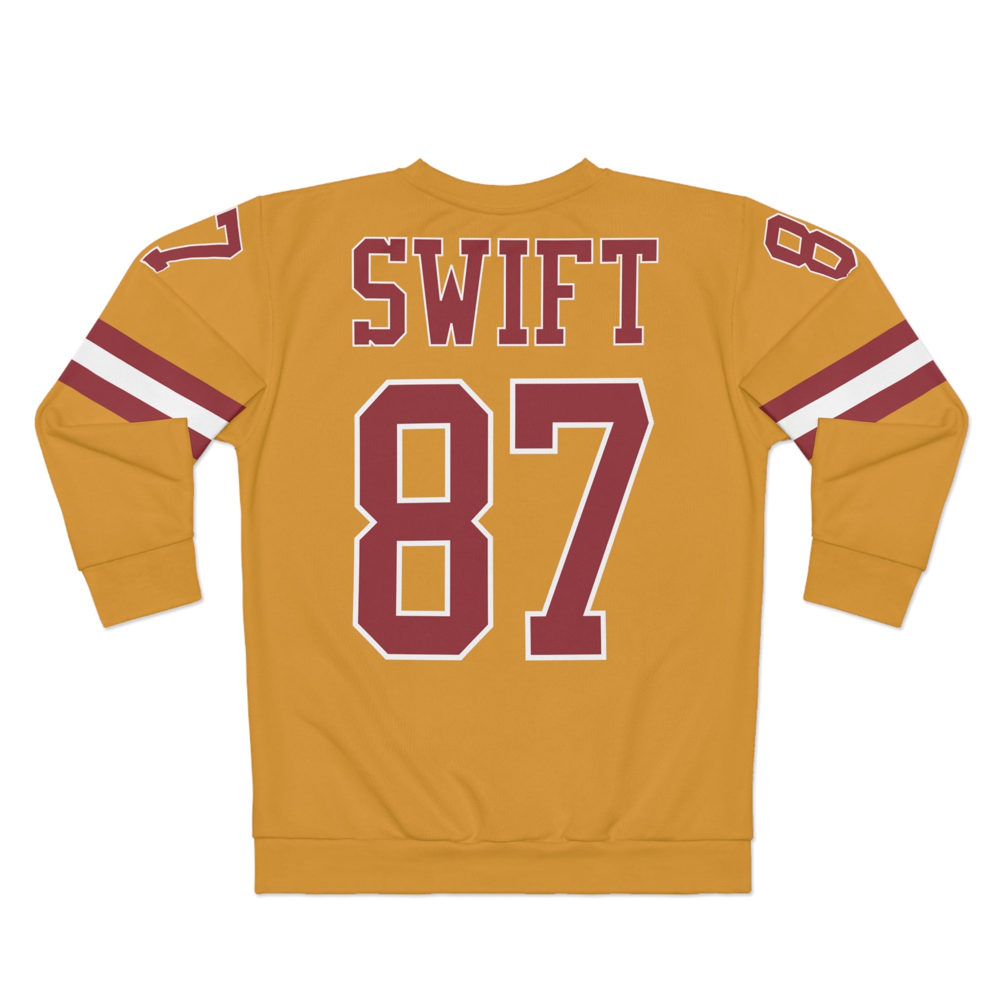 I love Kansas City! I love Football! KC Swift Shirts! Share your love of football, Kelce and Swift. 87 Football Shirt! Travis and Taylor Shirts! This all-over print crewneck sweatshirt is the perfect example of cool. With quality all-over printing capabilities, you won’t be worried about white lines at the seams. This fleece is custom cut and sewn, featuring a crew neck and set-in sleeves to keep you warm.