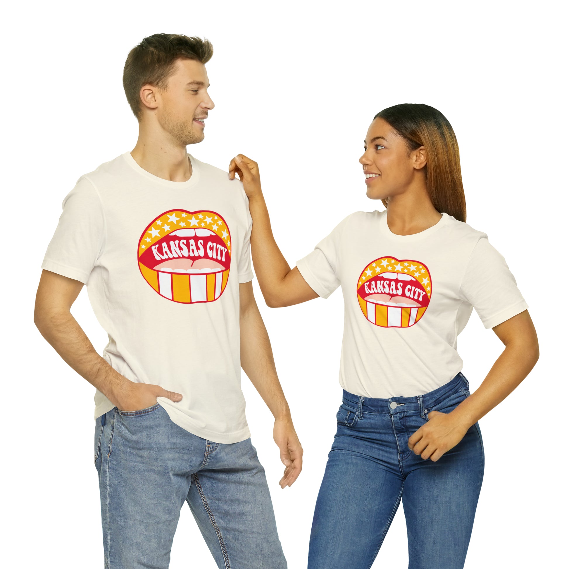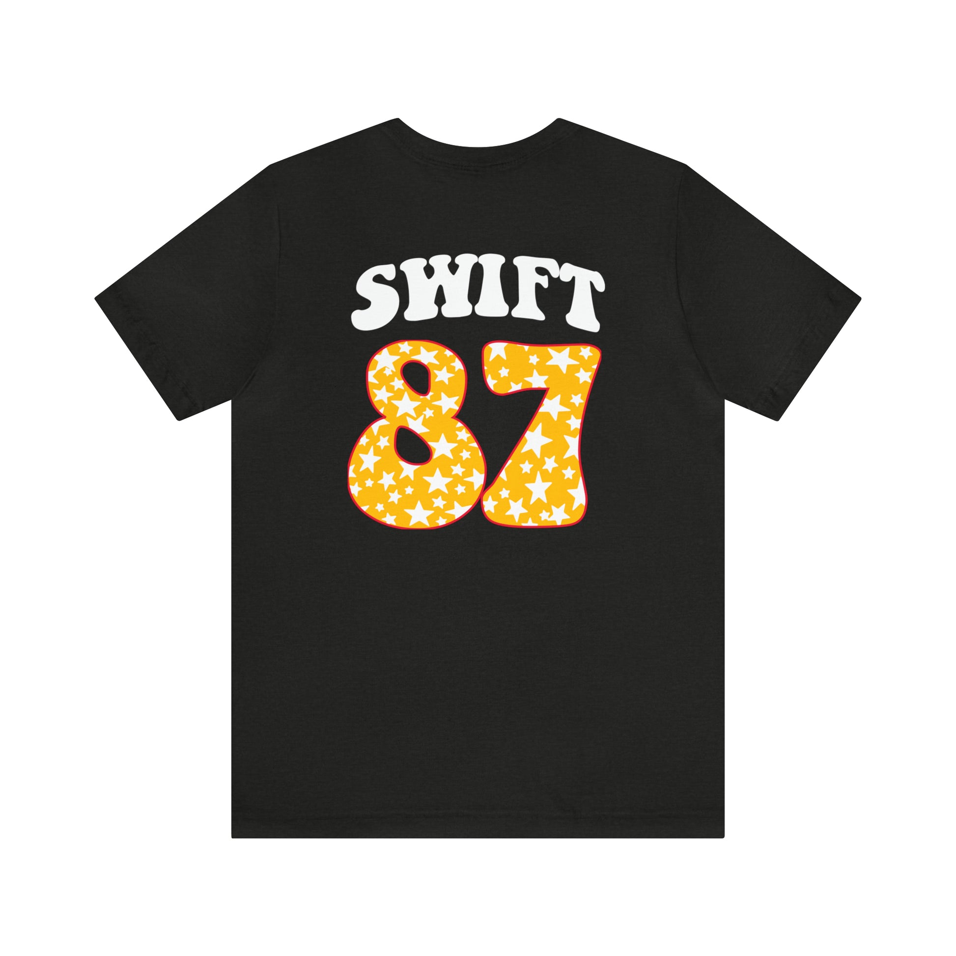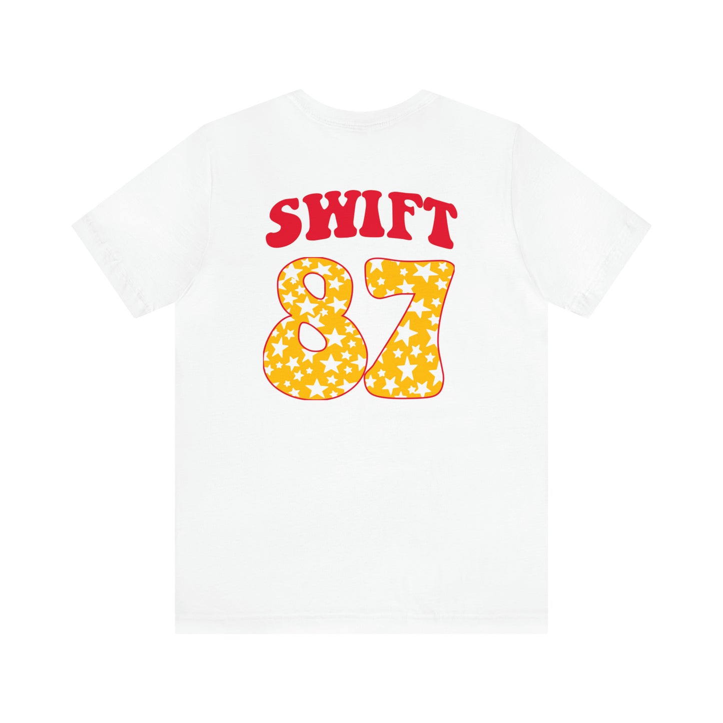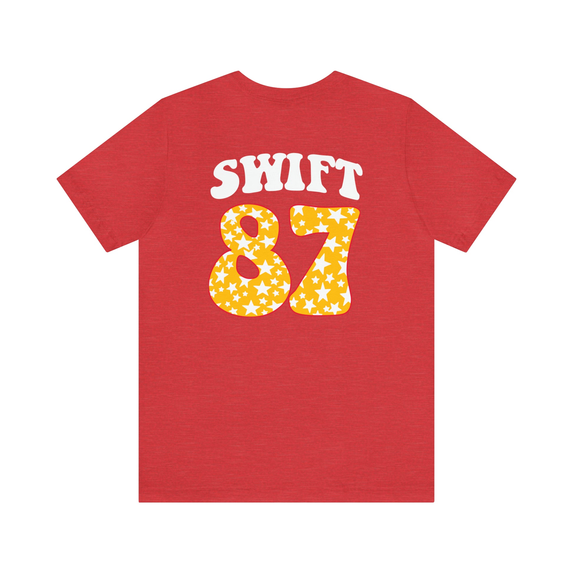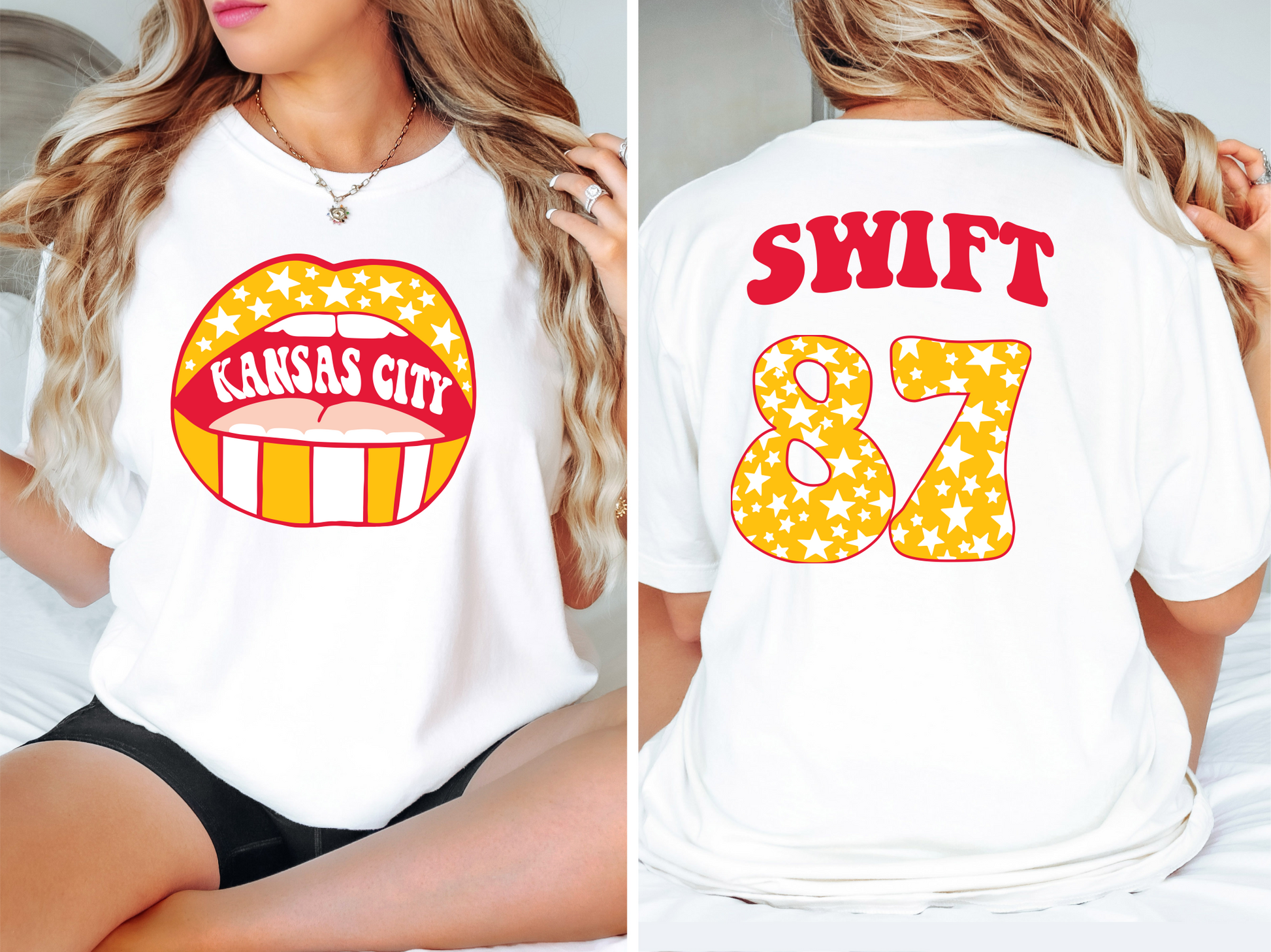 Swift Kelce 87 Football Lips Bella Jersey Short Sleeve Tee (Unisex) - Front and Back Design