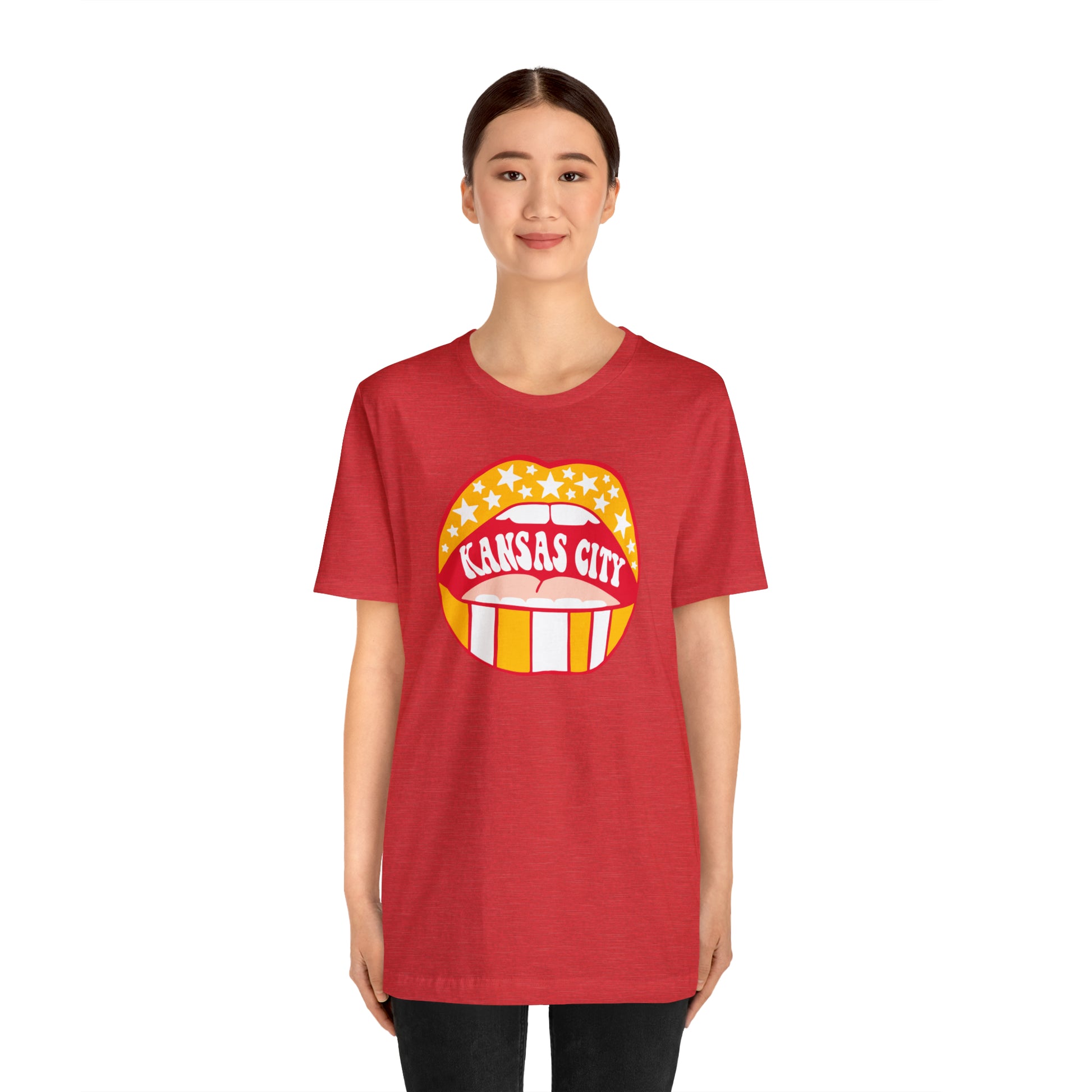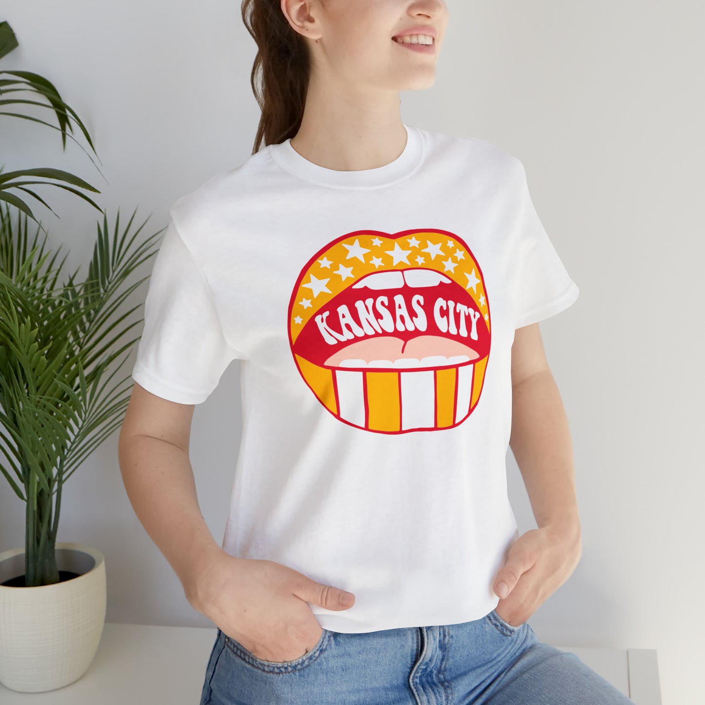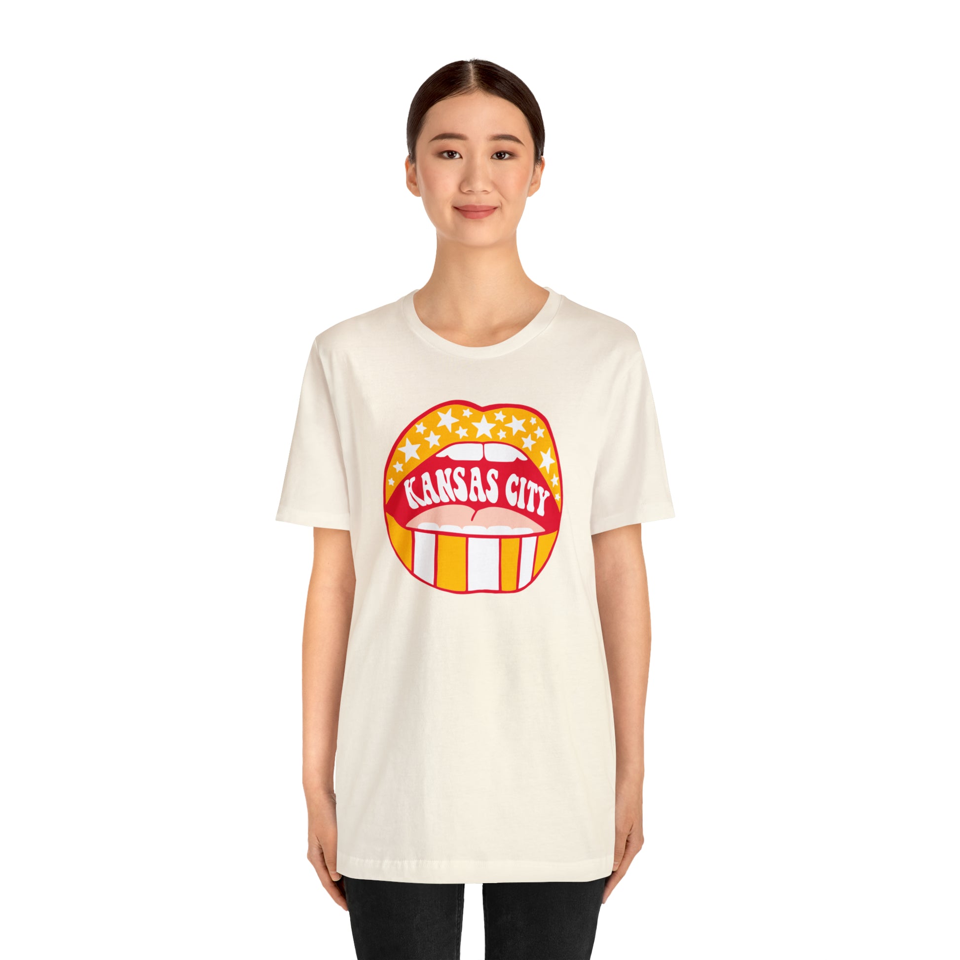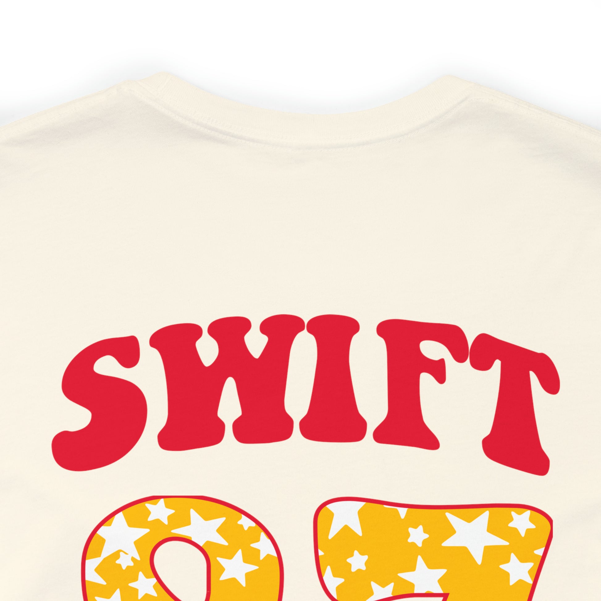 Swift Kelce 87 Football Lips Bella Jersey Short Sleeve Tee (Unisex) - Front and Back Design