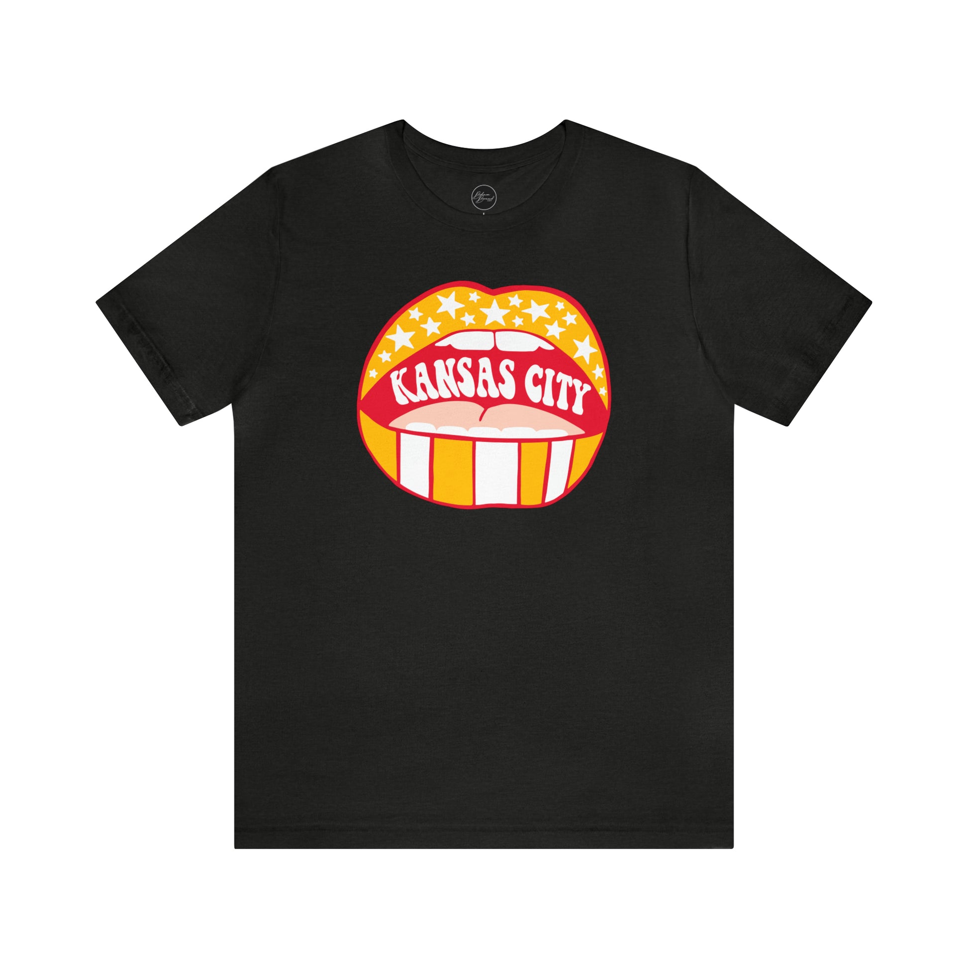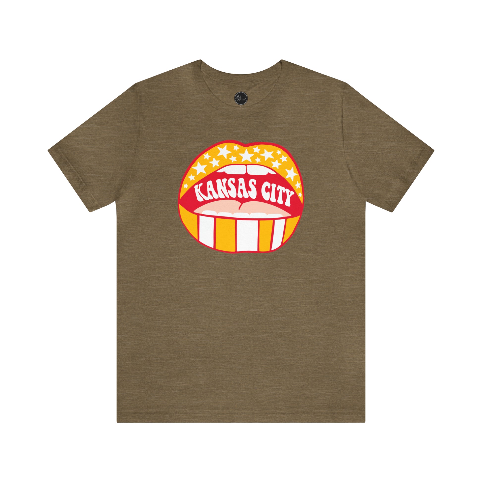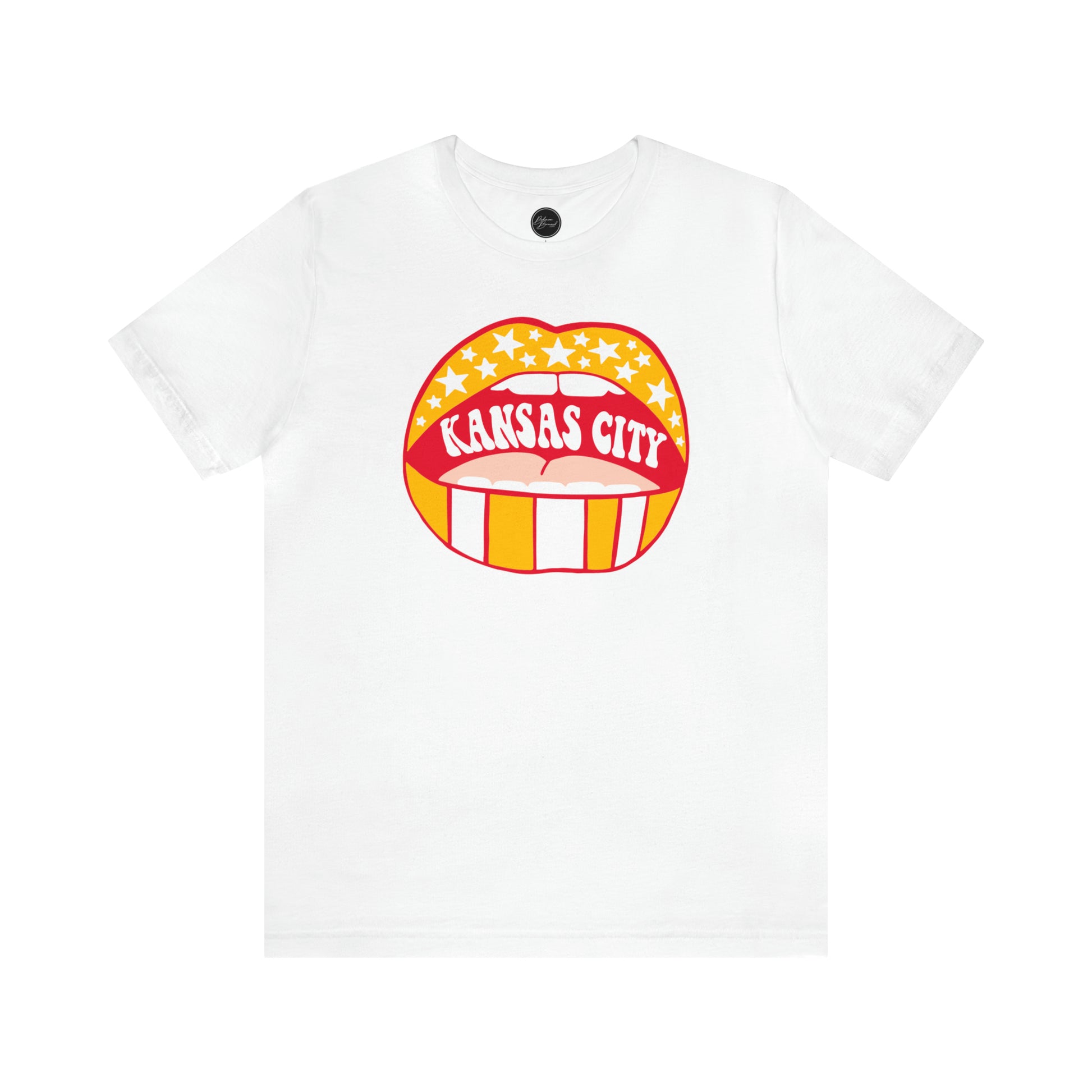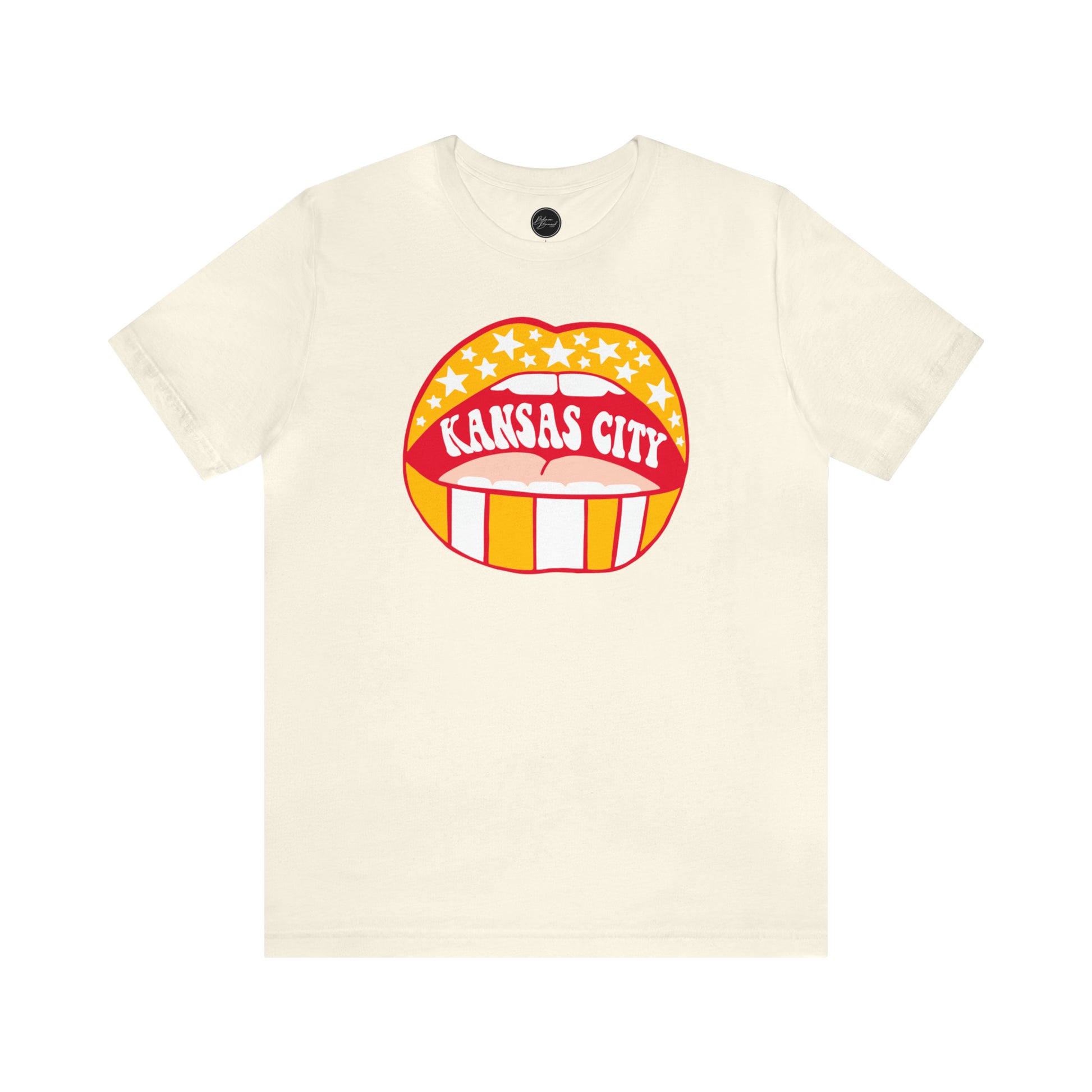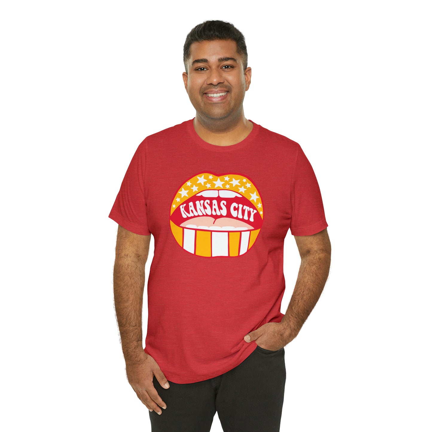 Swift Kelce 87 Football Lips Bella Jersey Short Sleeve Tee (Unisex) - Front and Back Design