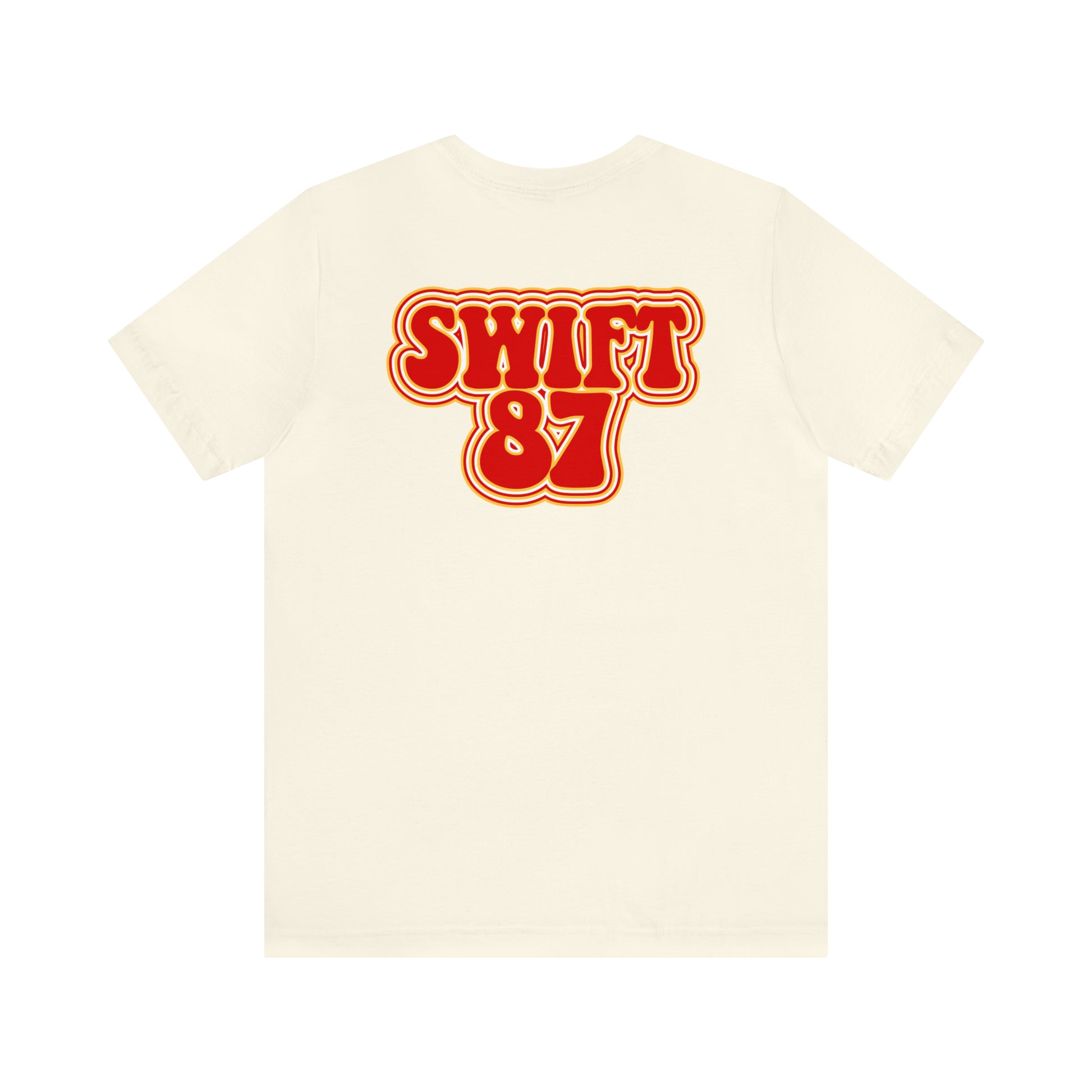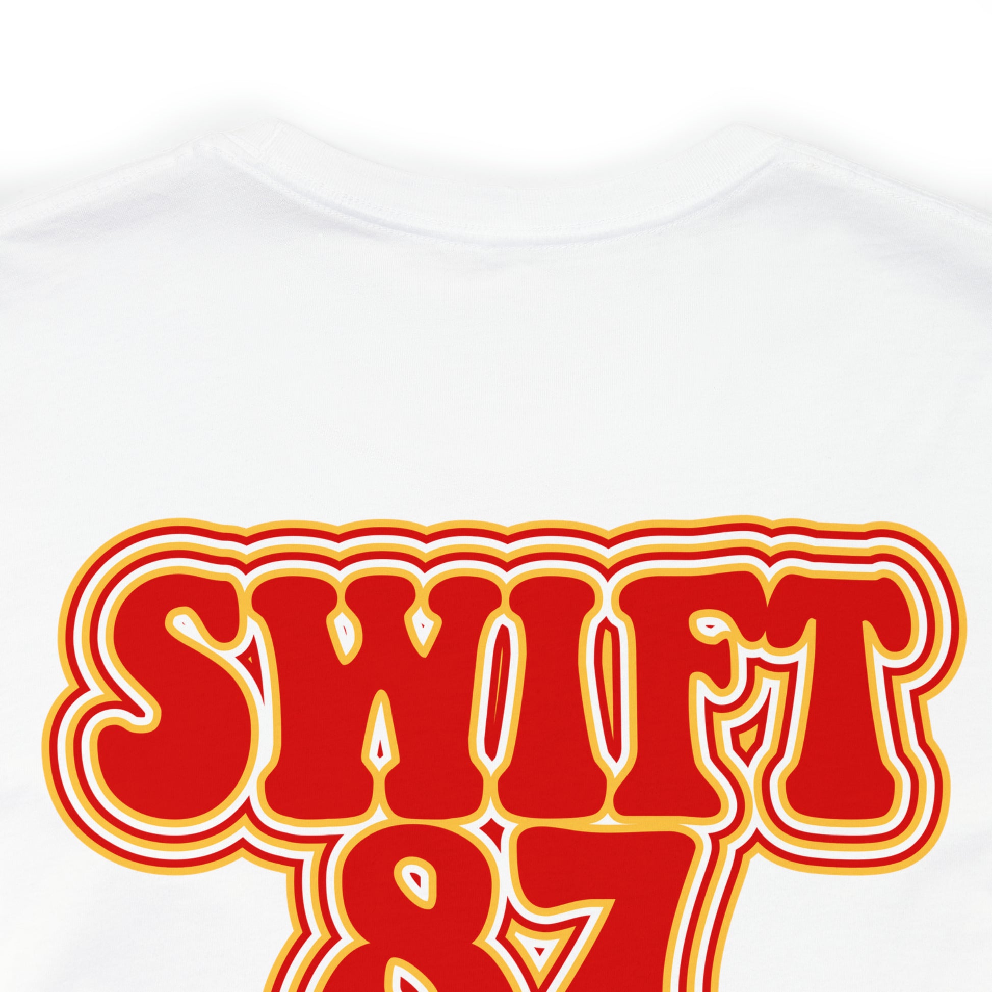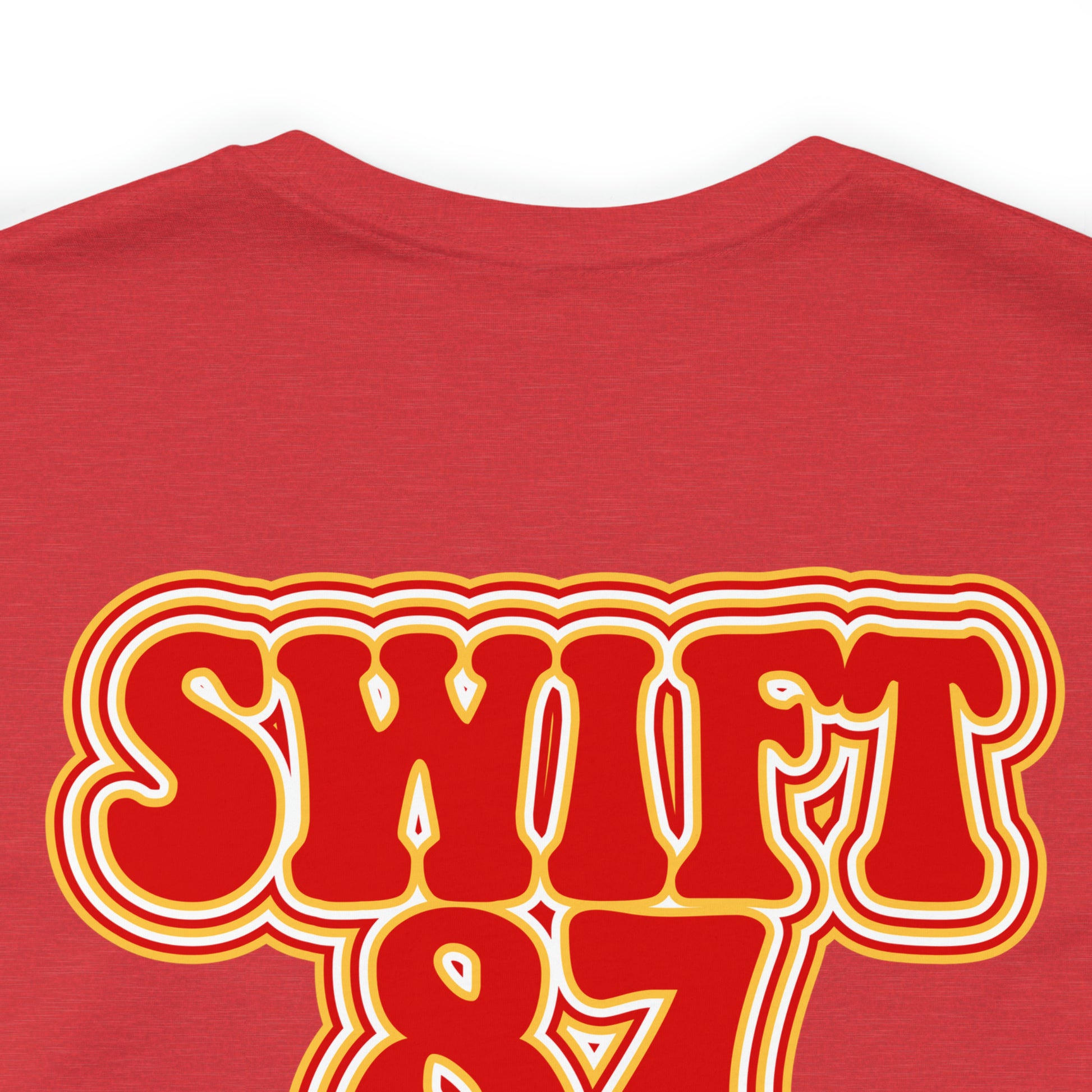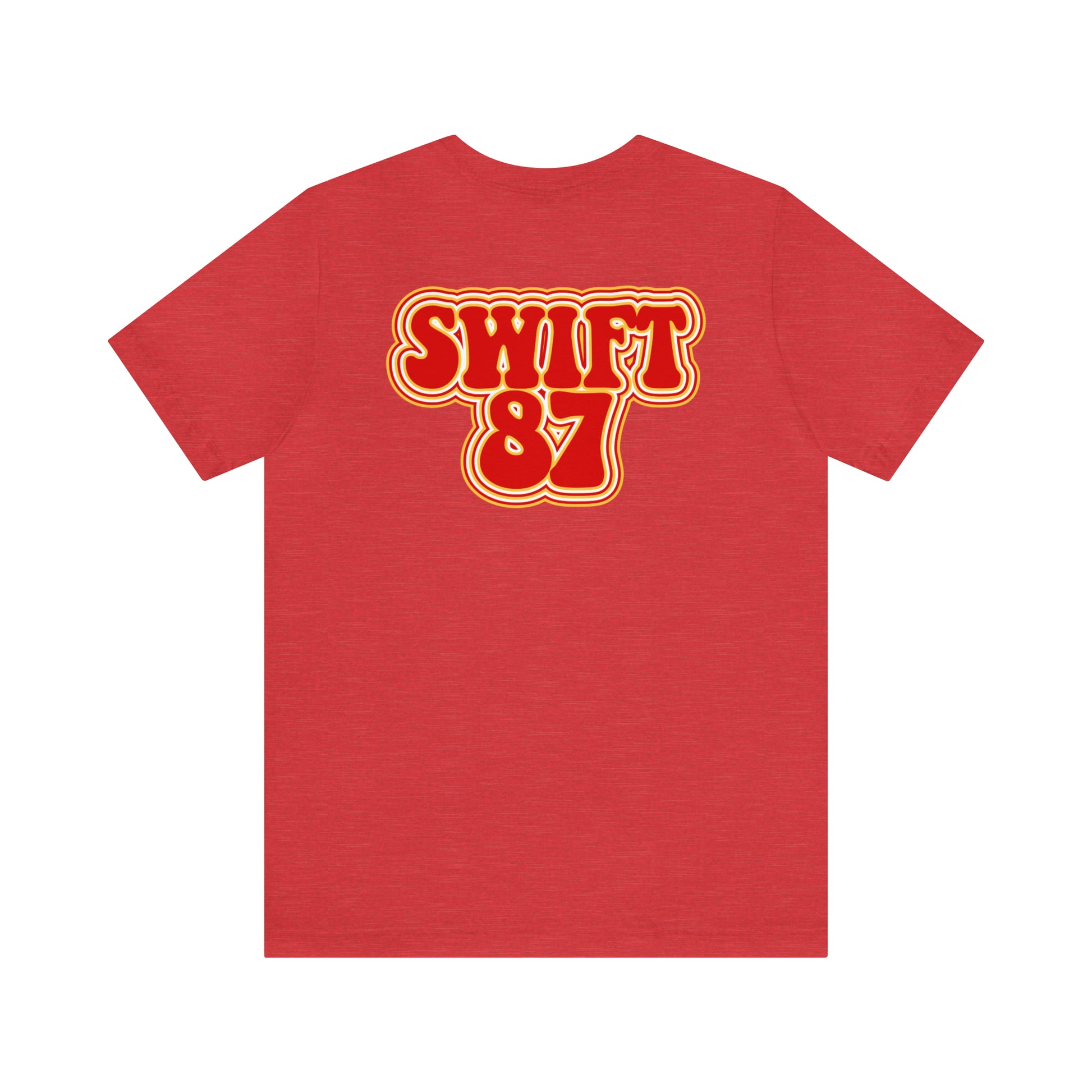 I love Kansas City! I love Football! KC Swift Shirts! Share your love of football, Kelce and Swift. 87 Football Shirt! Travis and Taylor Shirts! This classic unisex jersey short sleeve tee fits like a well-loved favorite. Soft cotton and quality print make users fall in love with it over and over again. These t-shirts have-ribbed knit collars to bolster shaping. The shoulders have taping for better fit over time. Dual side seams hold the garment's shape for longer.