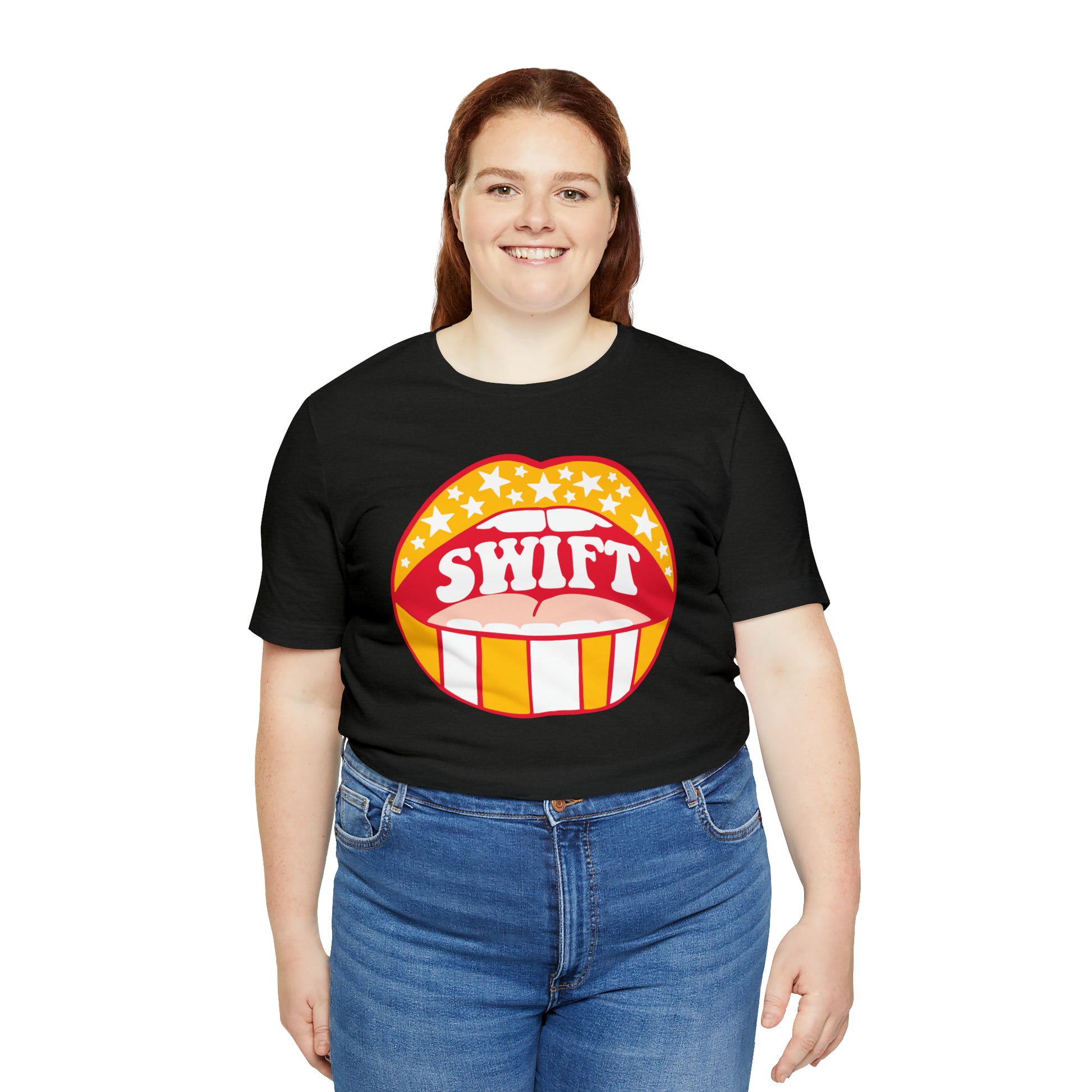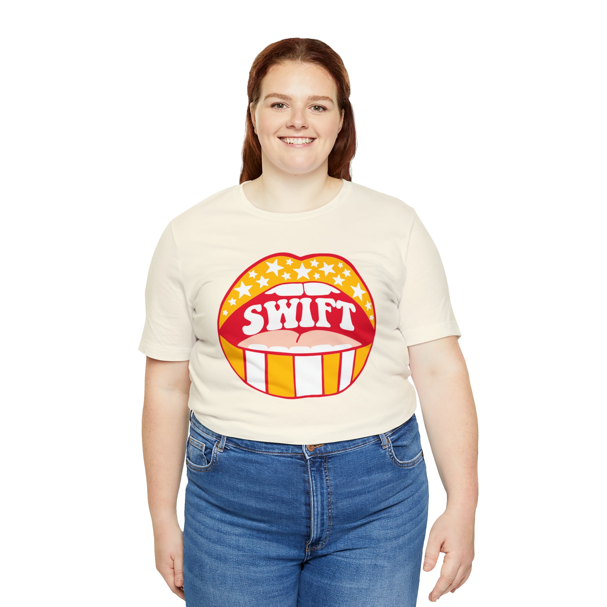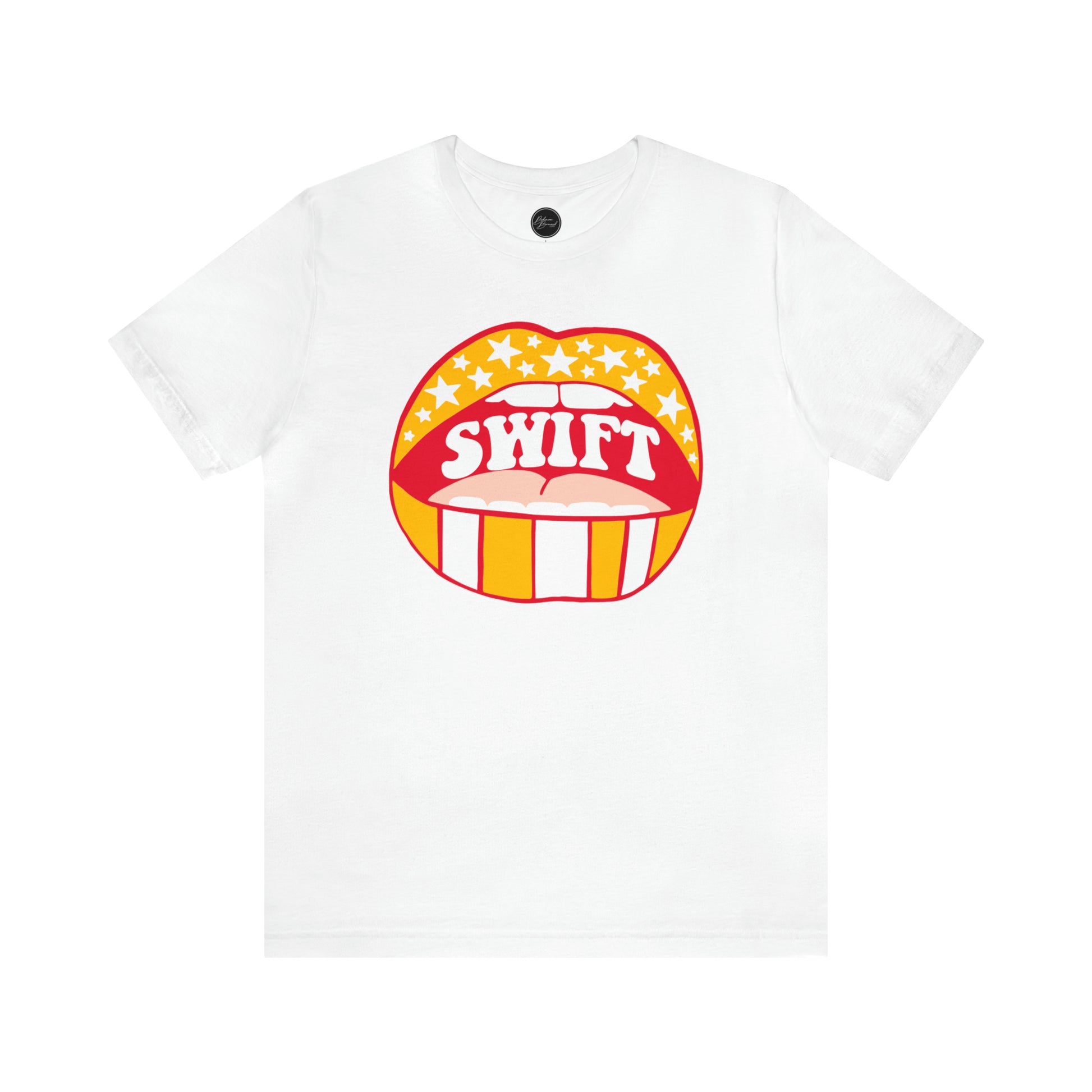 Swift Red, Yellow and White Lips Bella Jersey Short Sleeve Tee (Unisex)