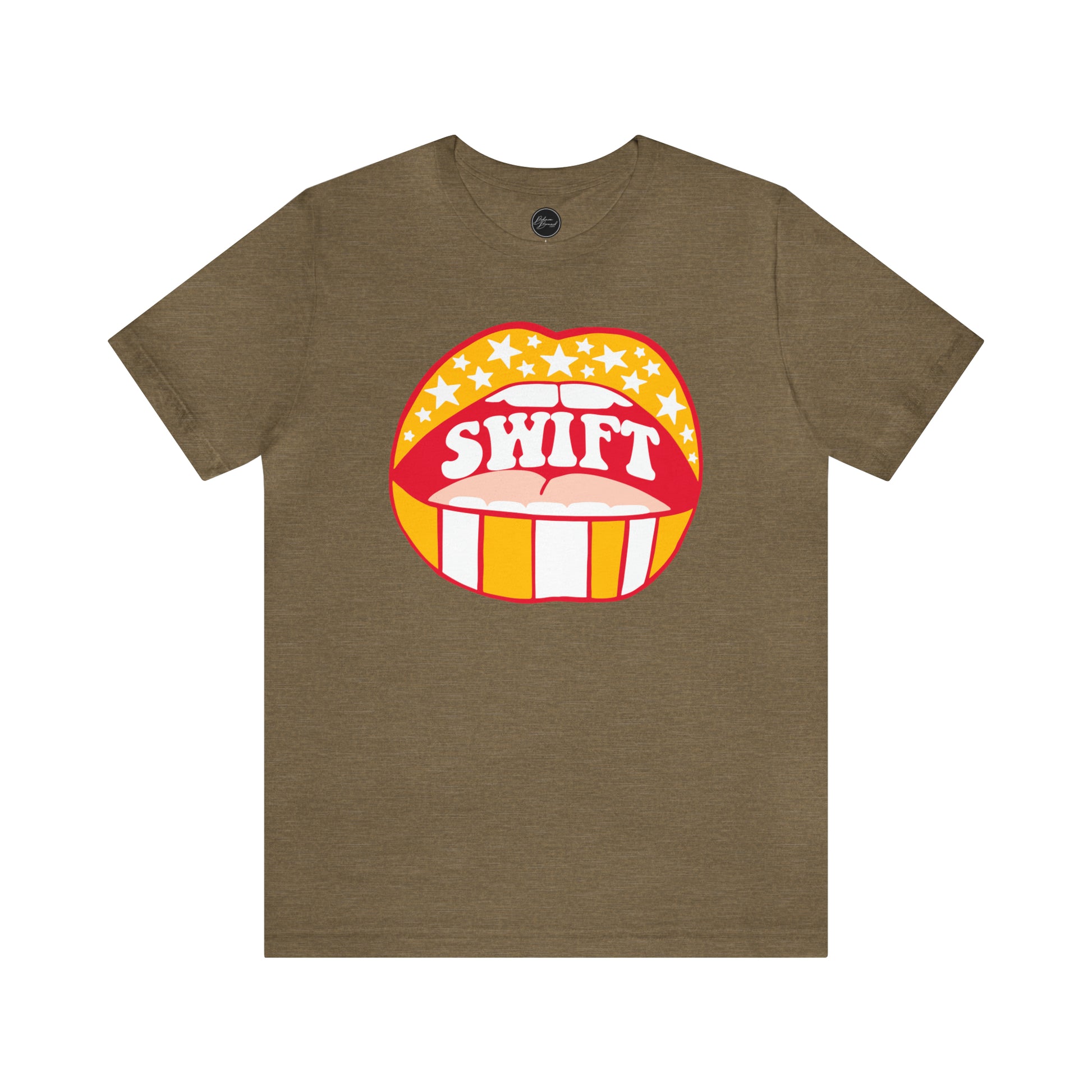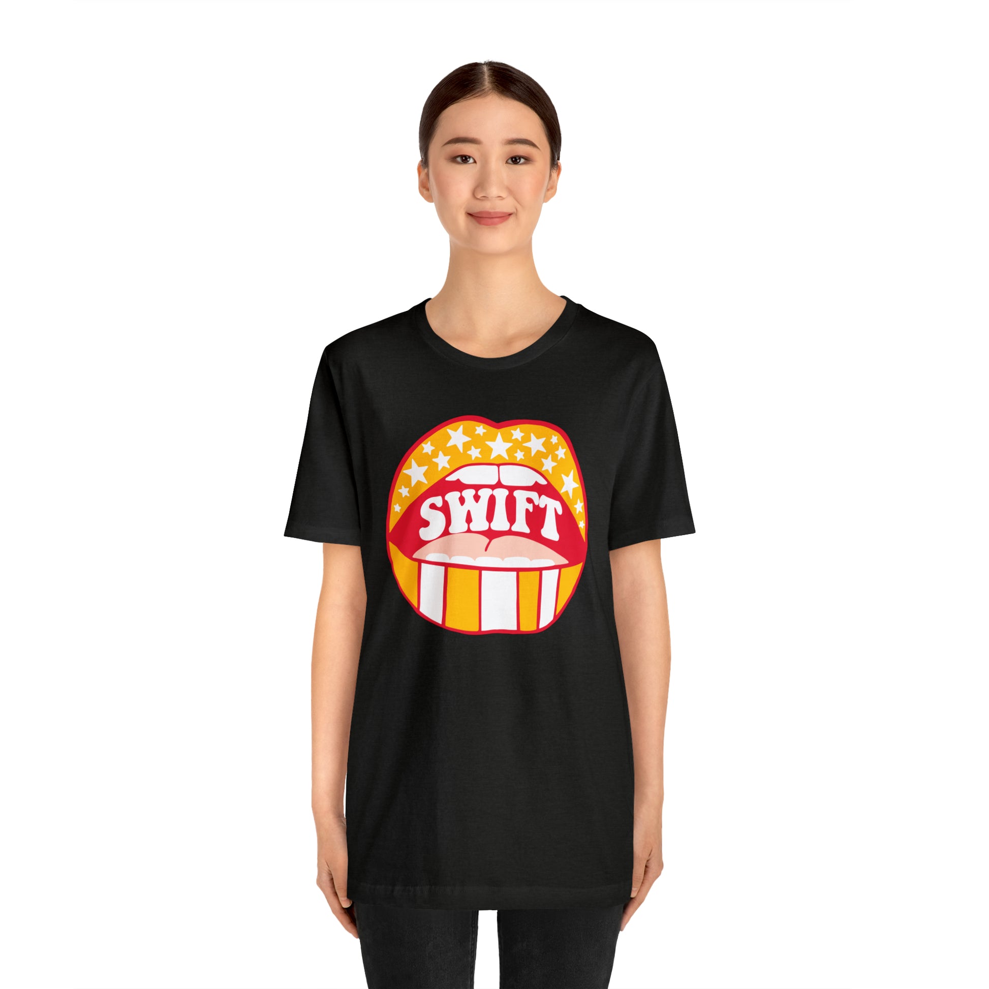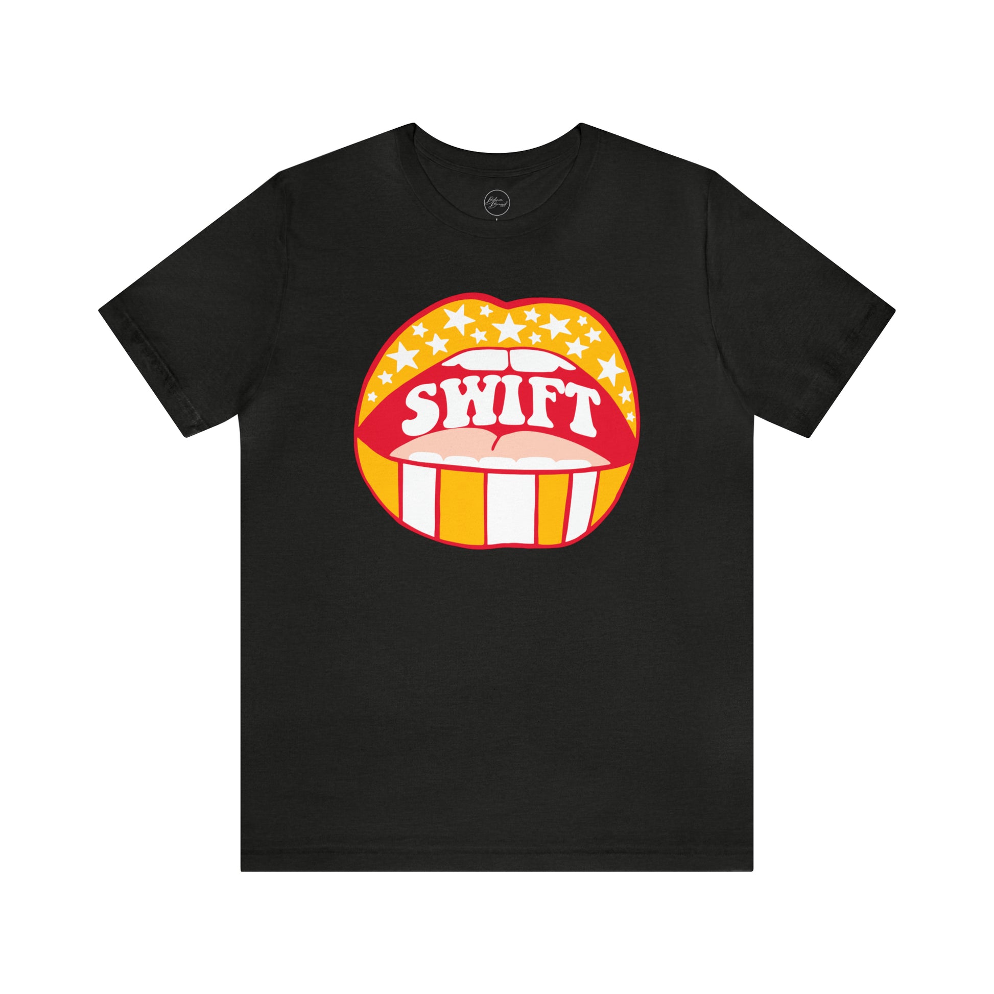 Swift Red, Yellow and White Lips Bella Jersey Short Sleeve Tee (Unisex)