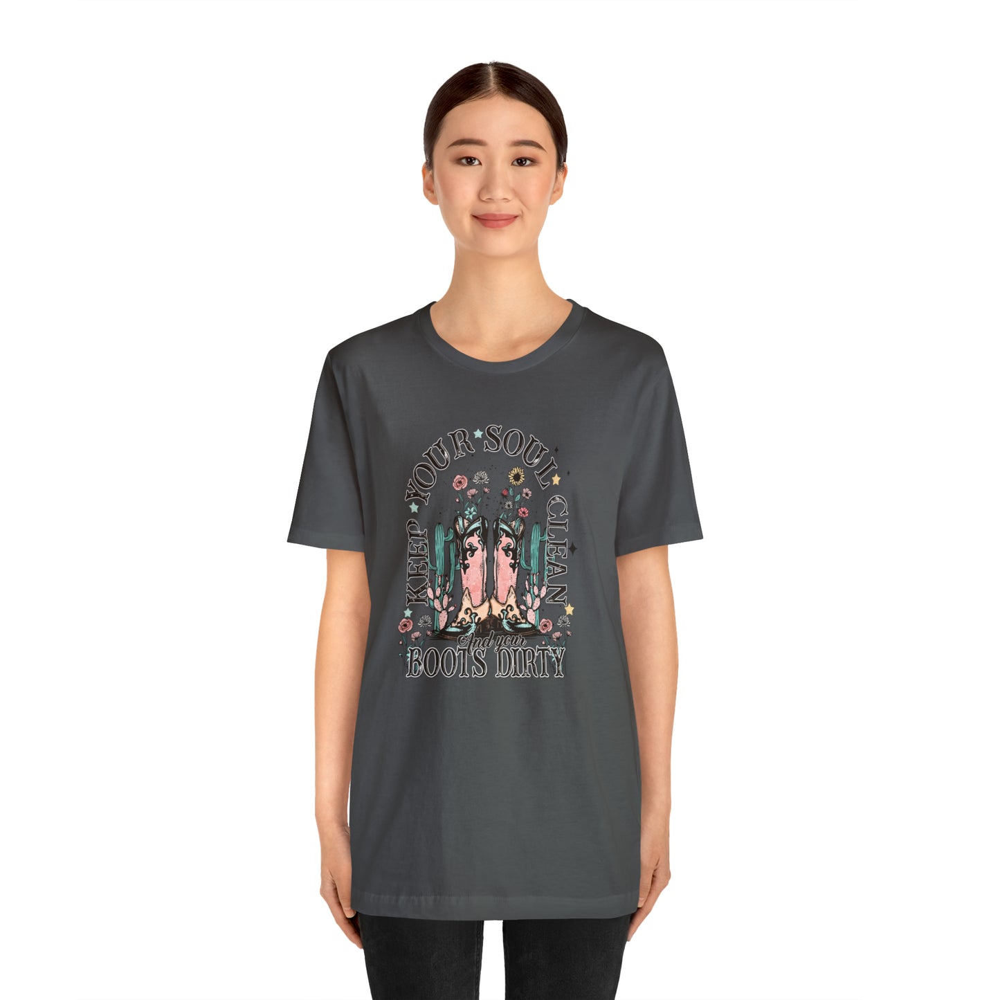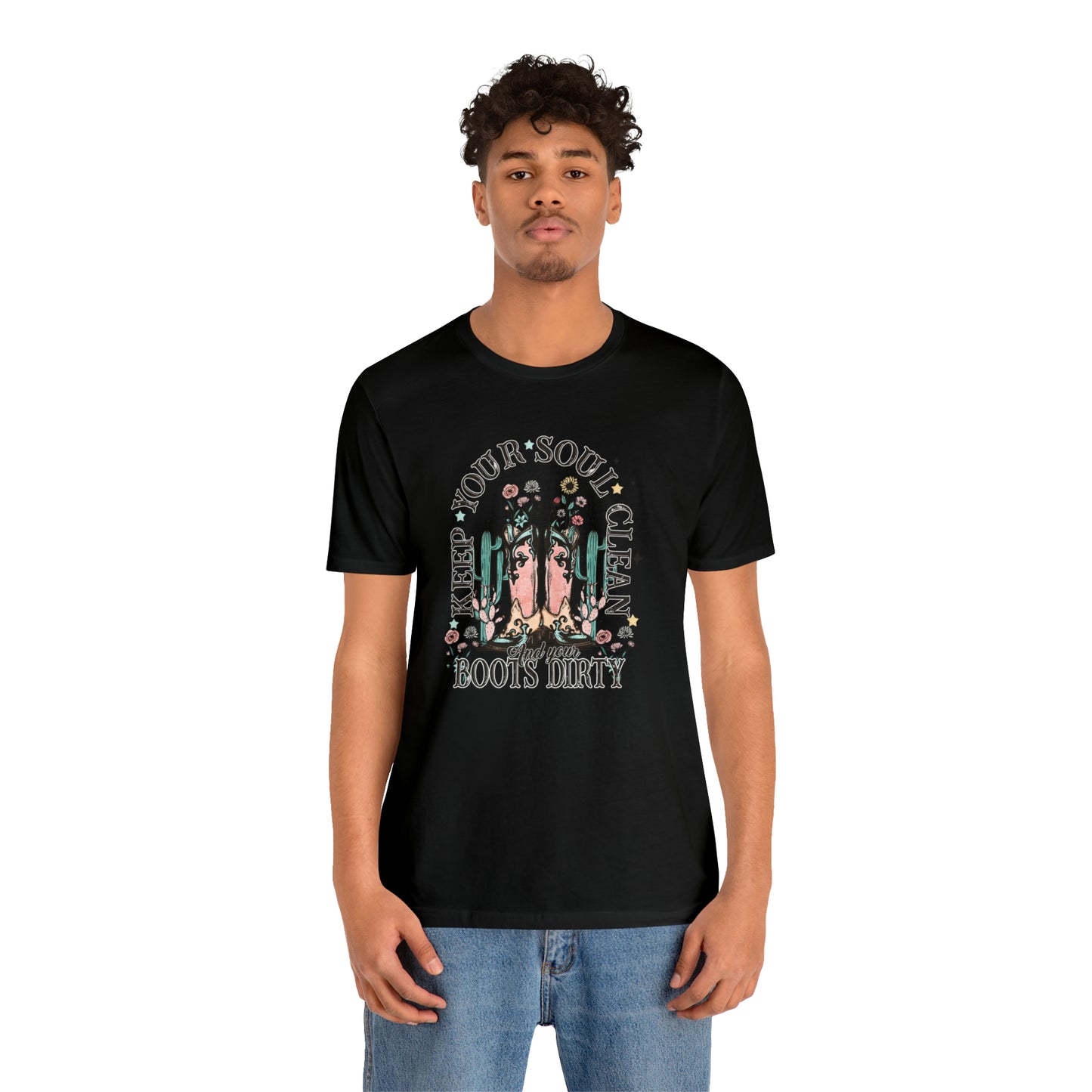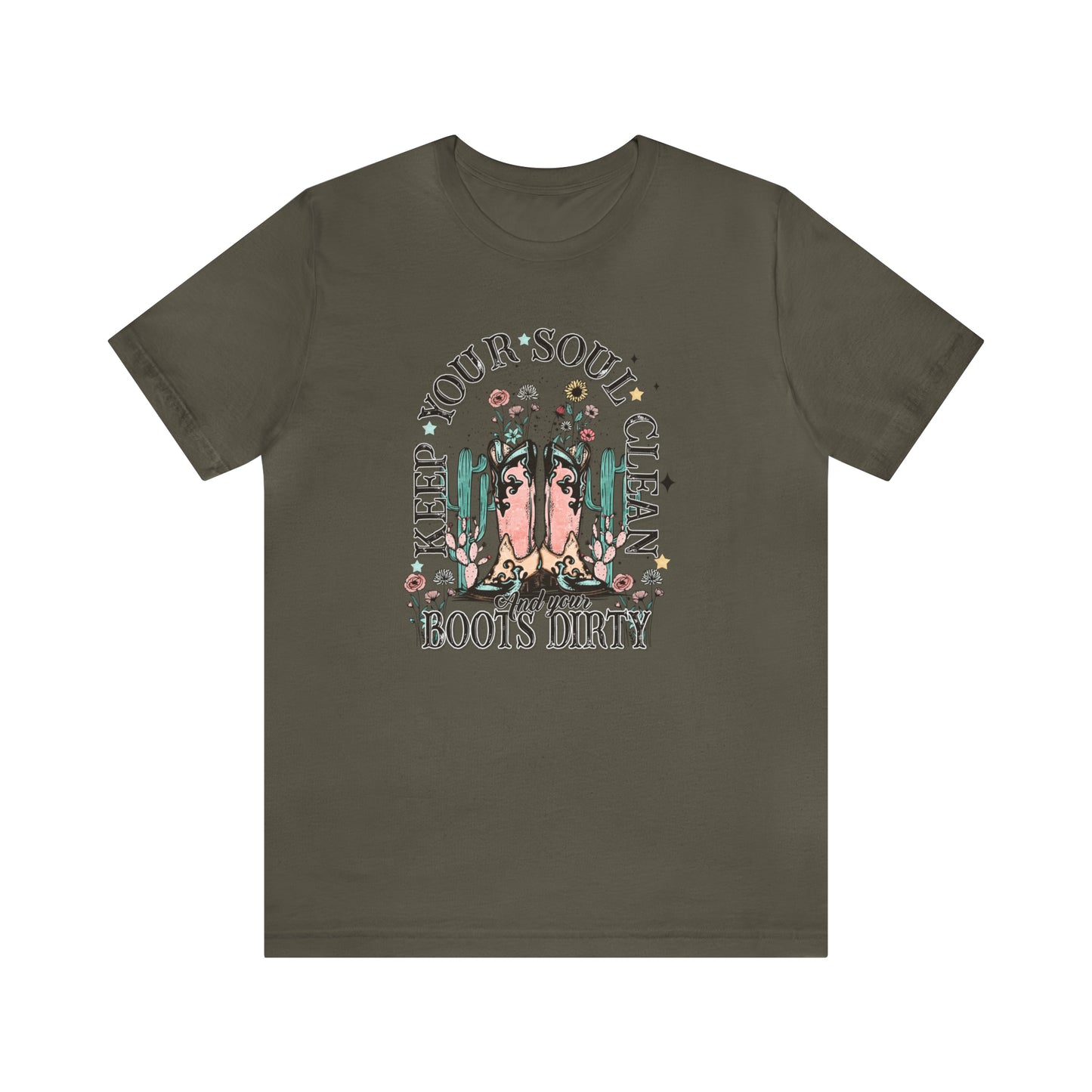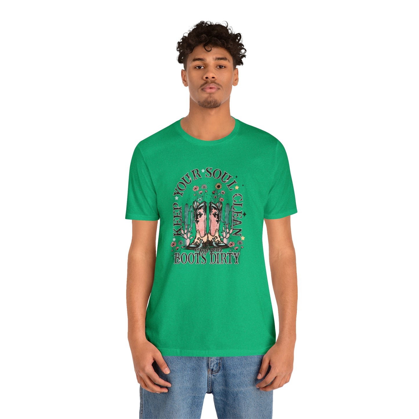 "Keep Your Soul Clean and Your Boots Dirty" Unisex Jersey Short Sleeve Tee