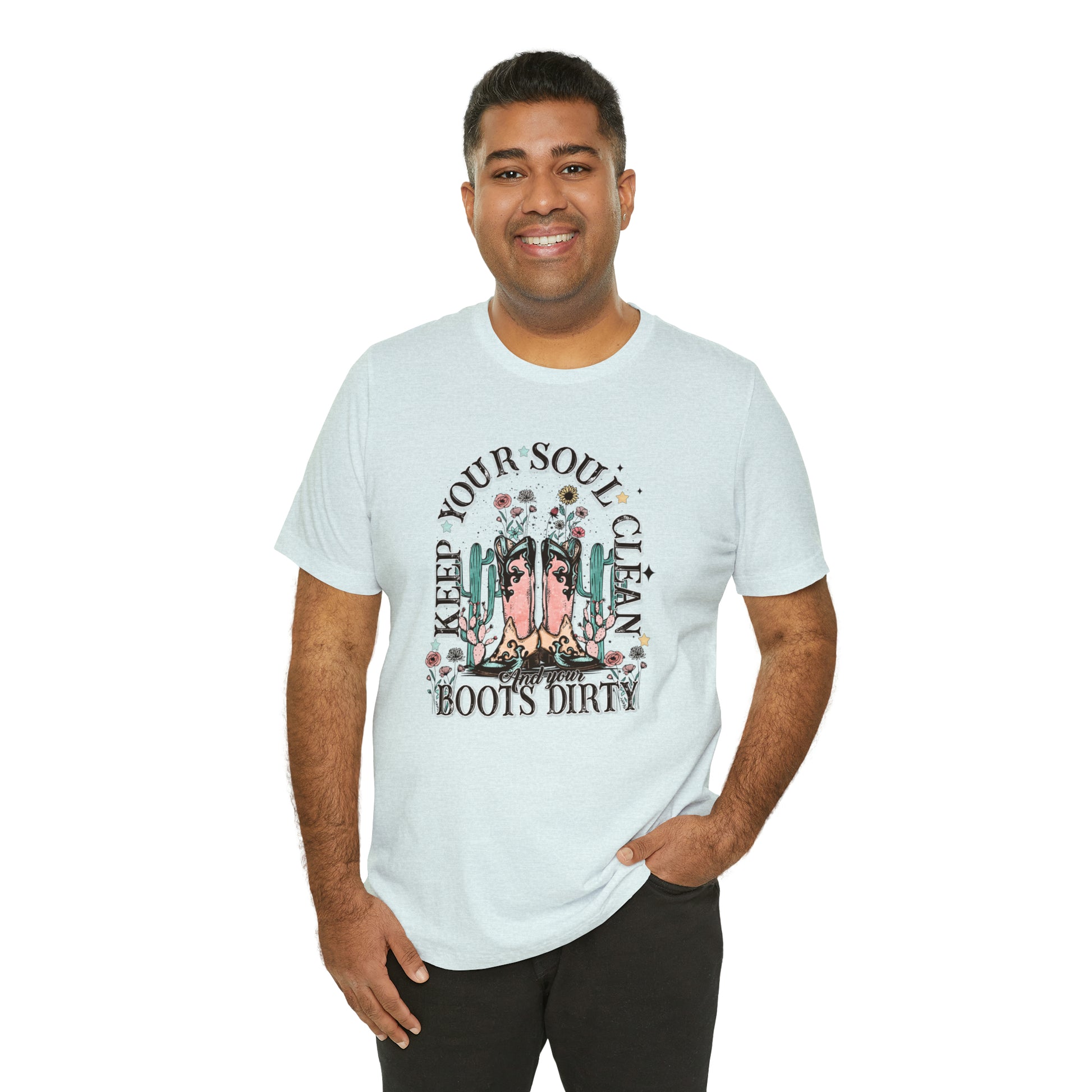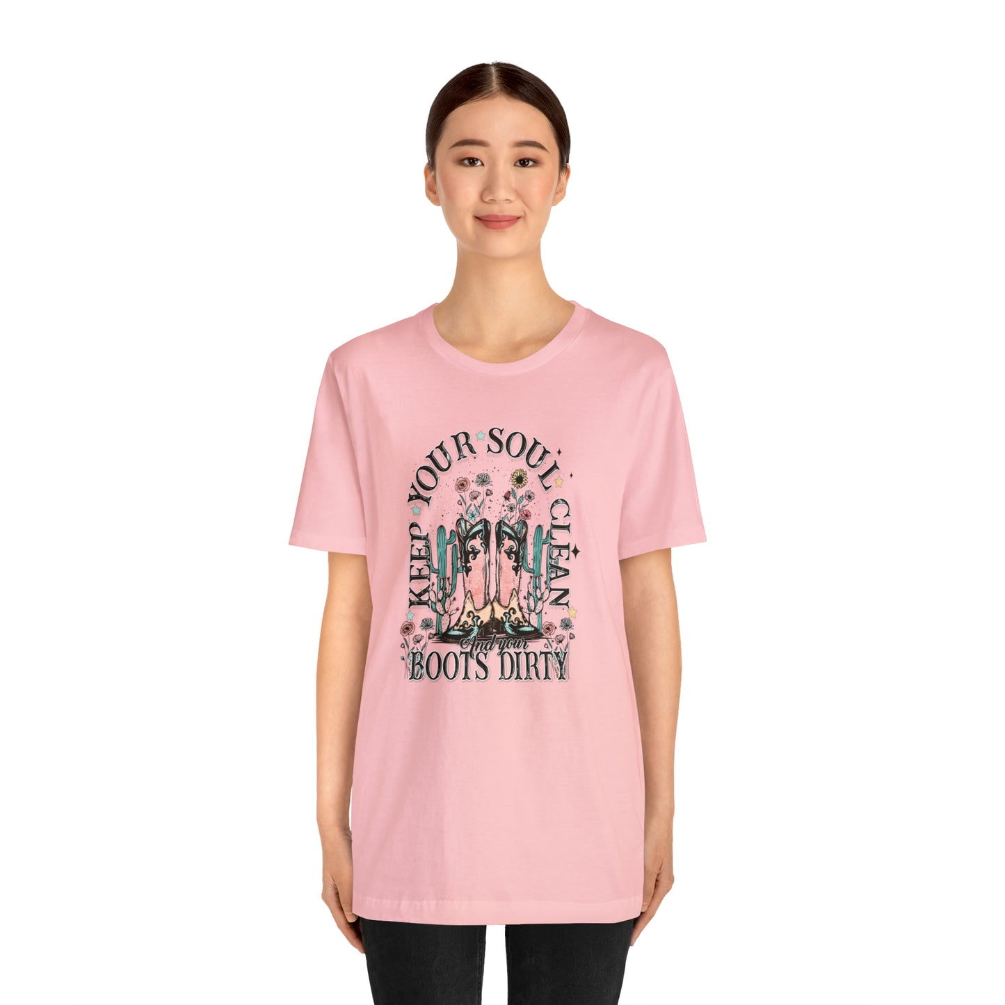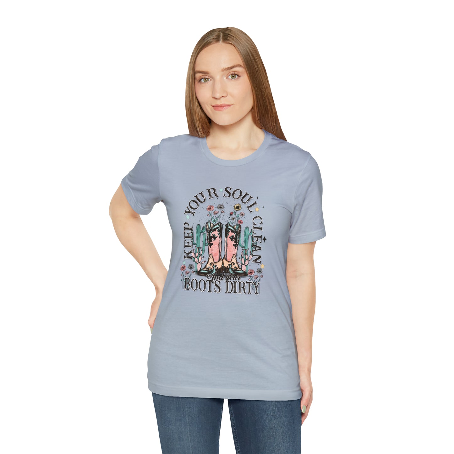 "Keep Your Soul Clean and Your Boots Dirty" Unisex Jersey Short Sleeve Tee